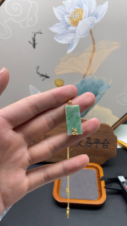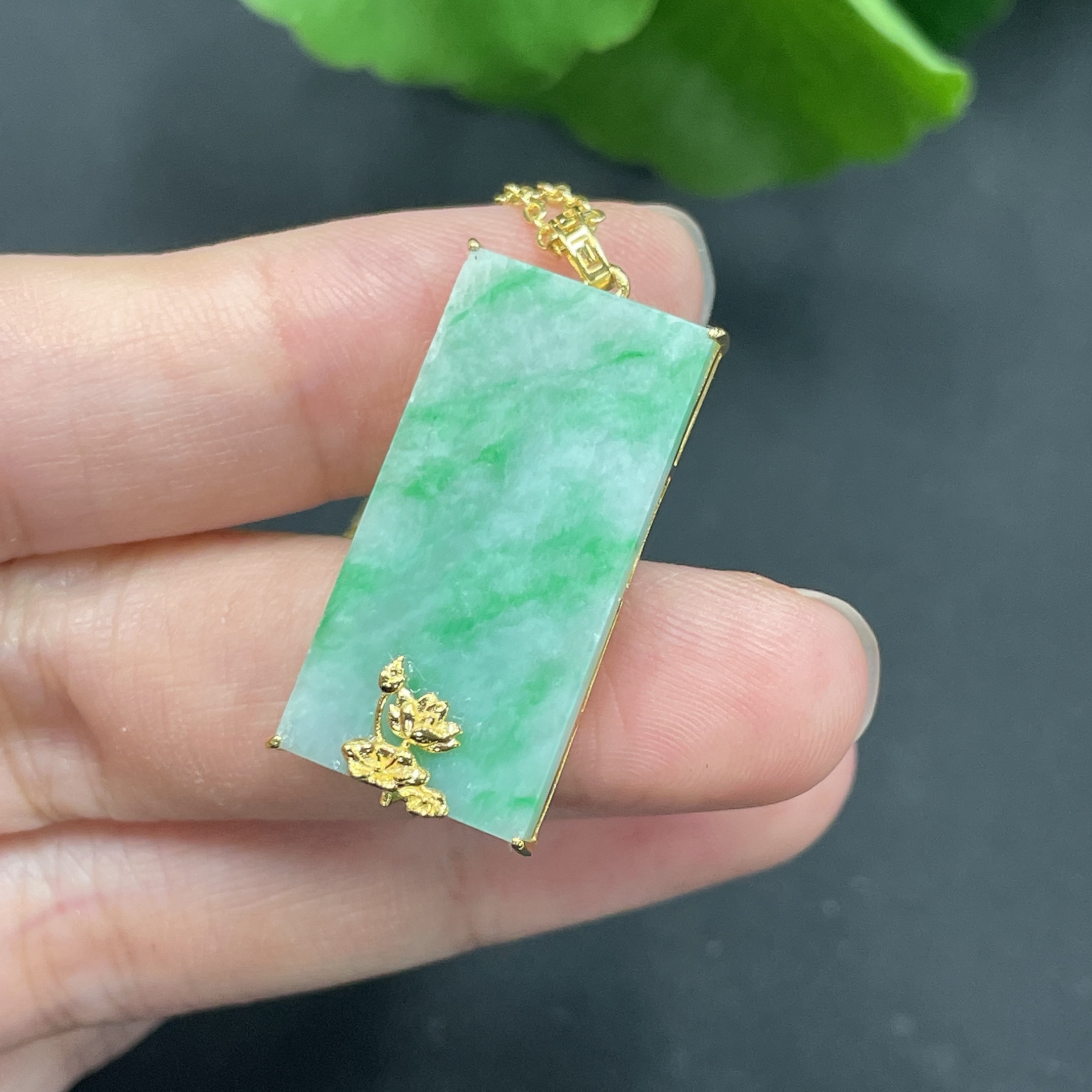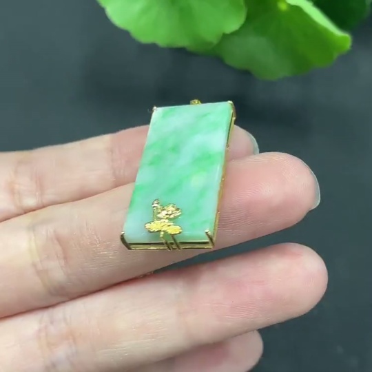 Jadeite Plain Pendant with 18K Gold Setting (Non-Gold Chain) Total Weight 5.18g (Chain Included)
