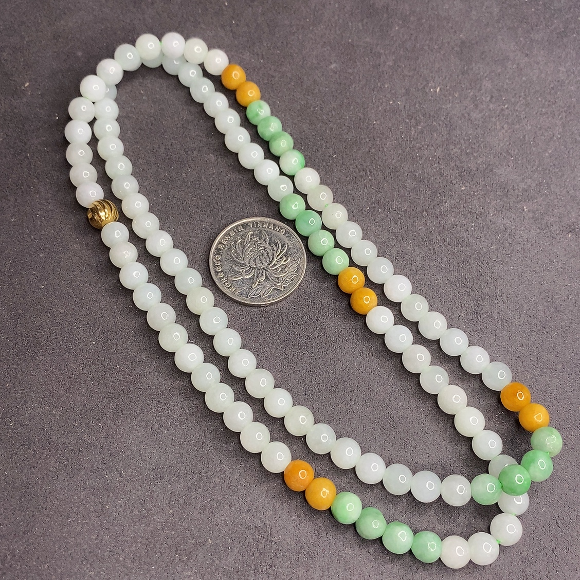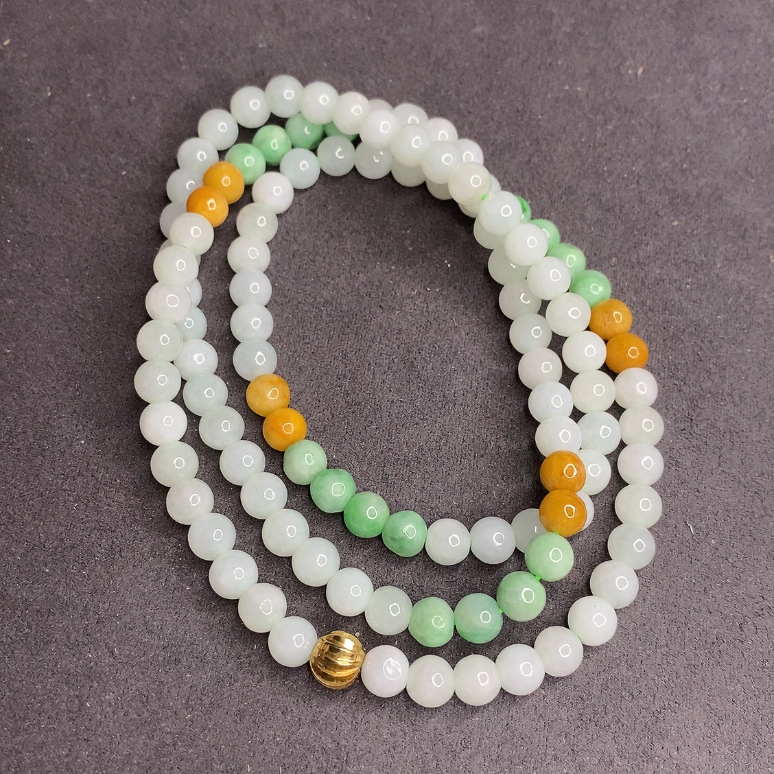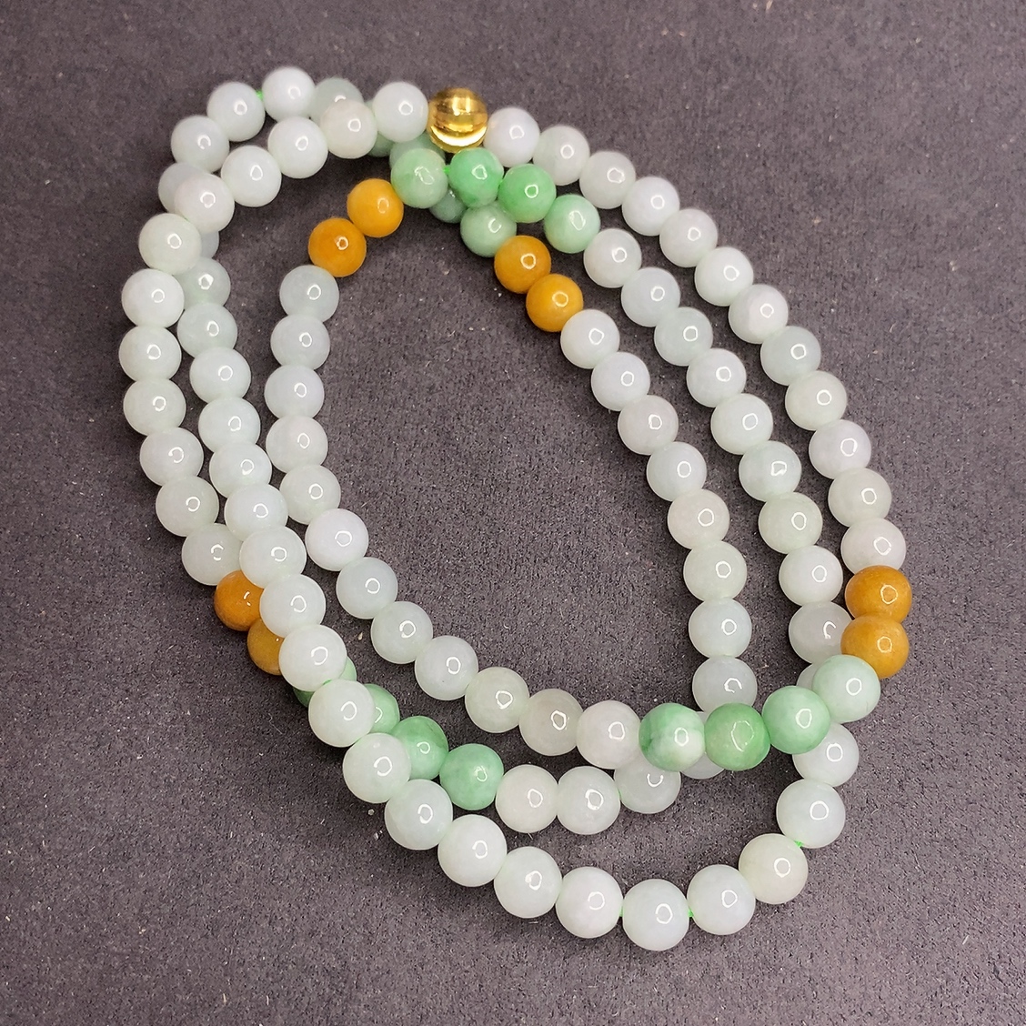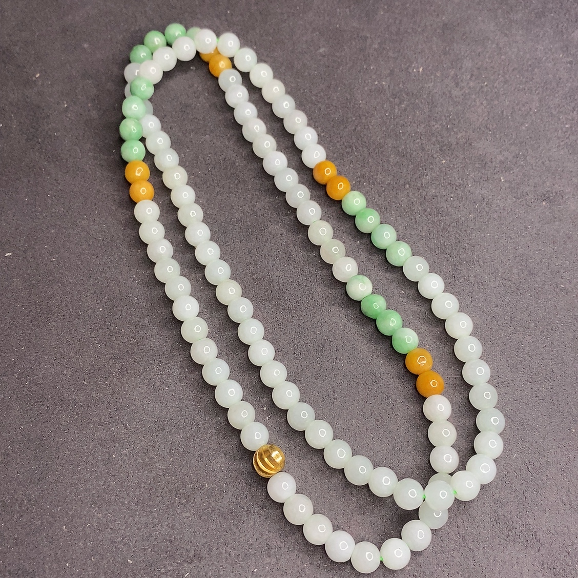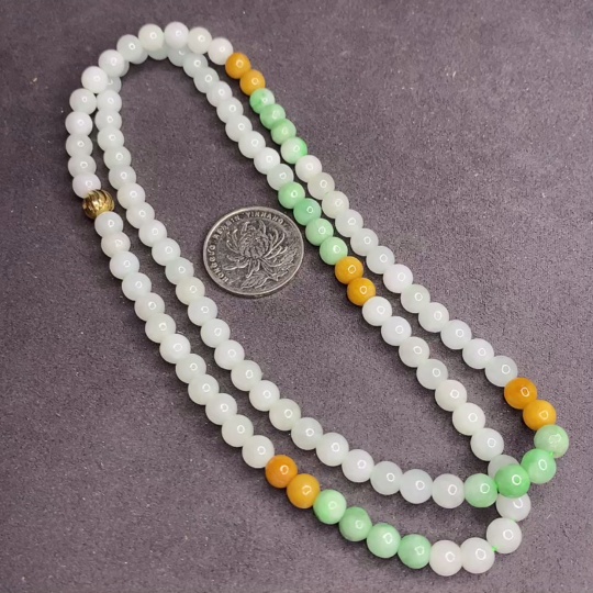 Three-color JadeiteBead Necklace Individual with Lines Size 6.7