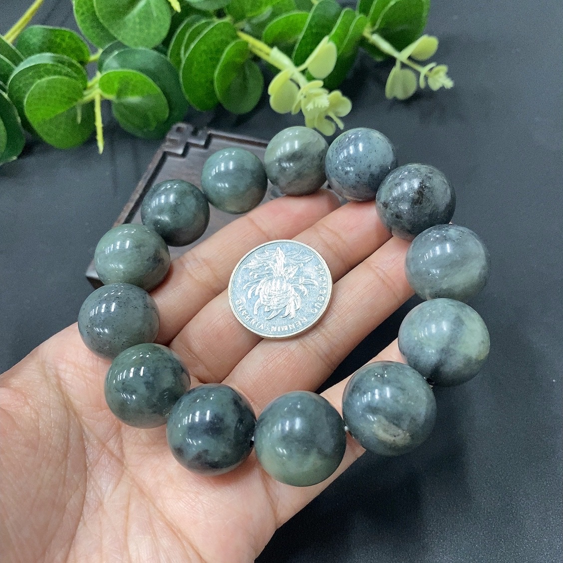 Hetian Jade Bead Necklace, Approx. 17.7mm, Total Weight 115.2g