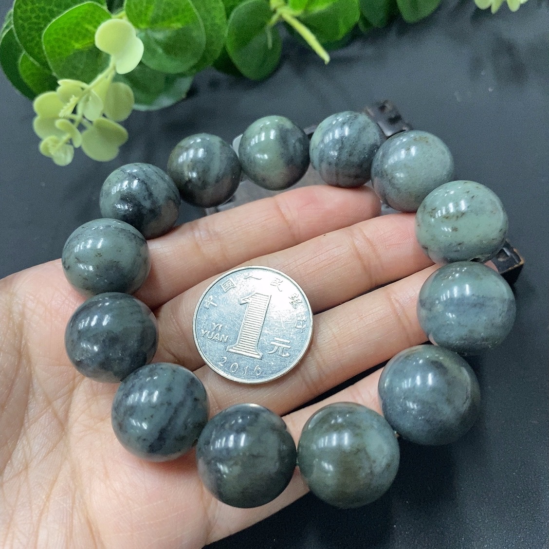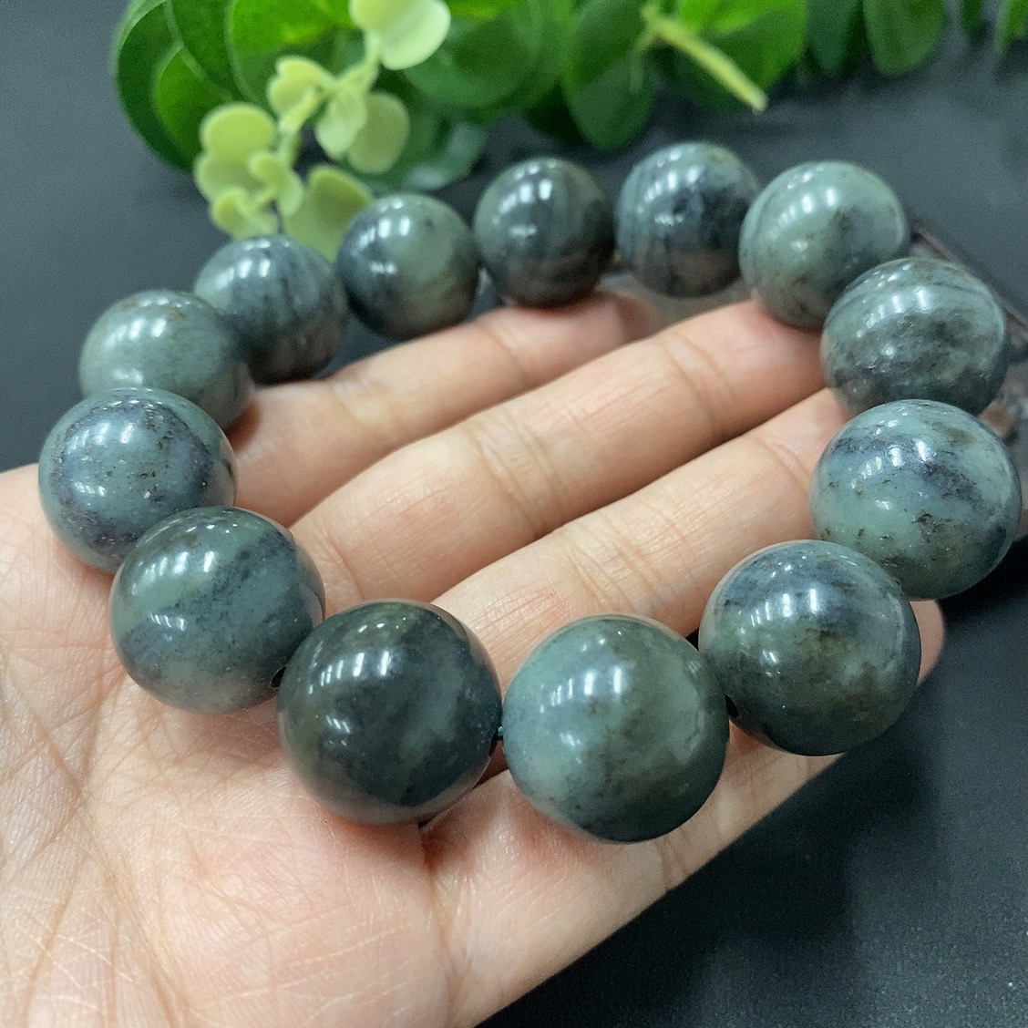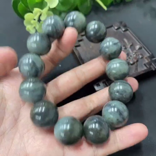 Hetian Jade Bead Necklace, approximately 17.5mm, total weight 112.3g