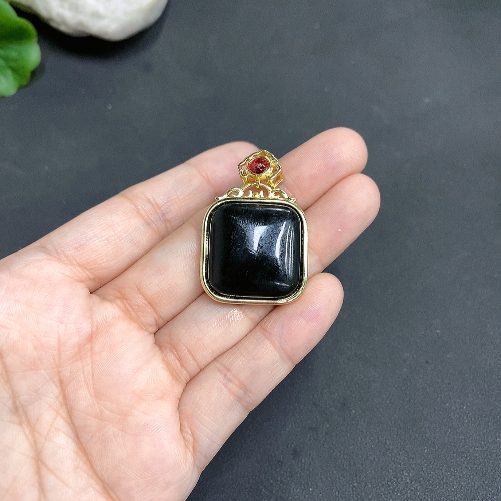 Hetian Jade Inlaid Pendant, Non-Gold Inlaid, Total Weight 9.1g