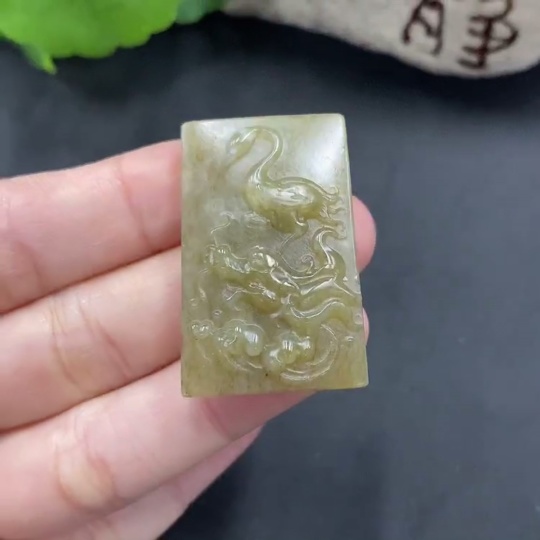 Hetian Jade Pendant - Dragon and Crane, Total Weight: 11.6g