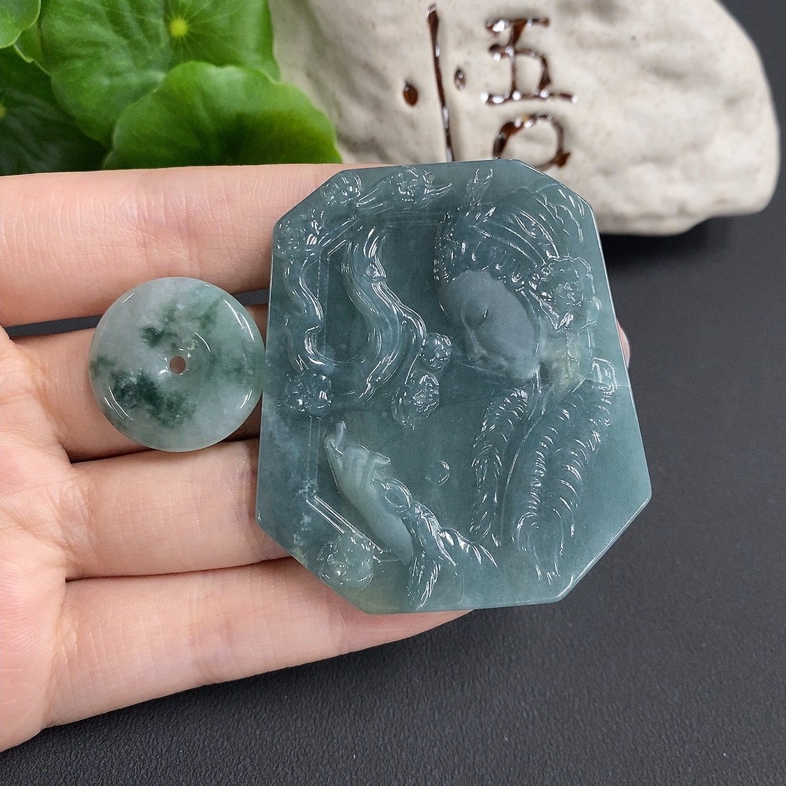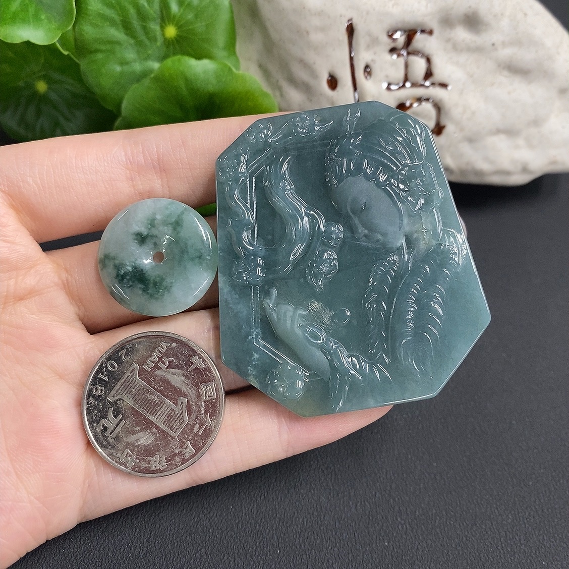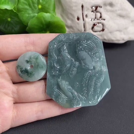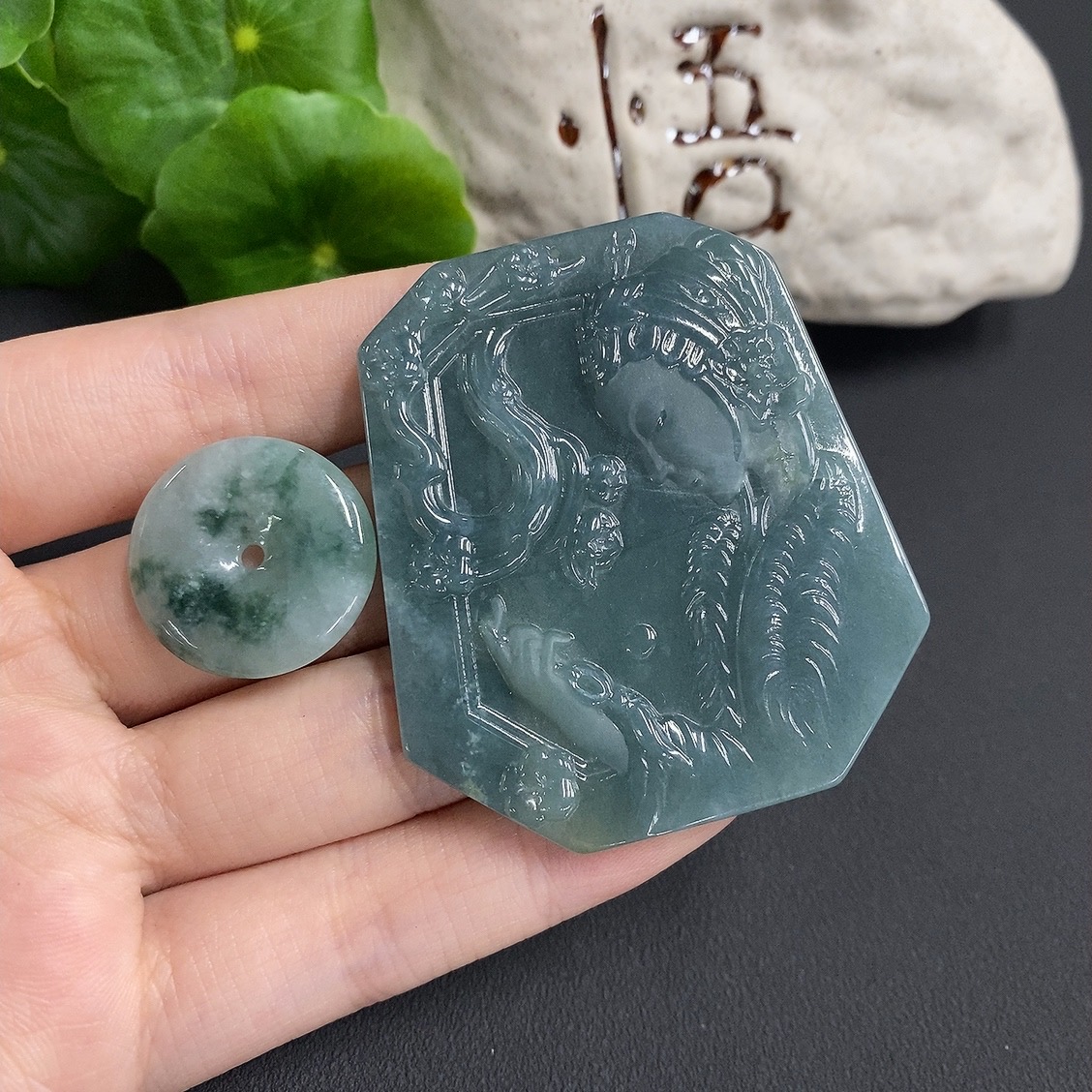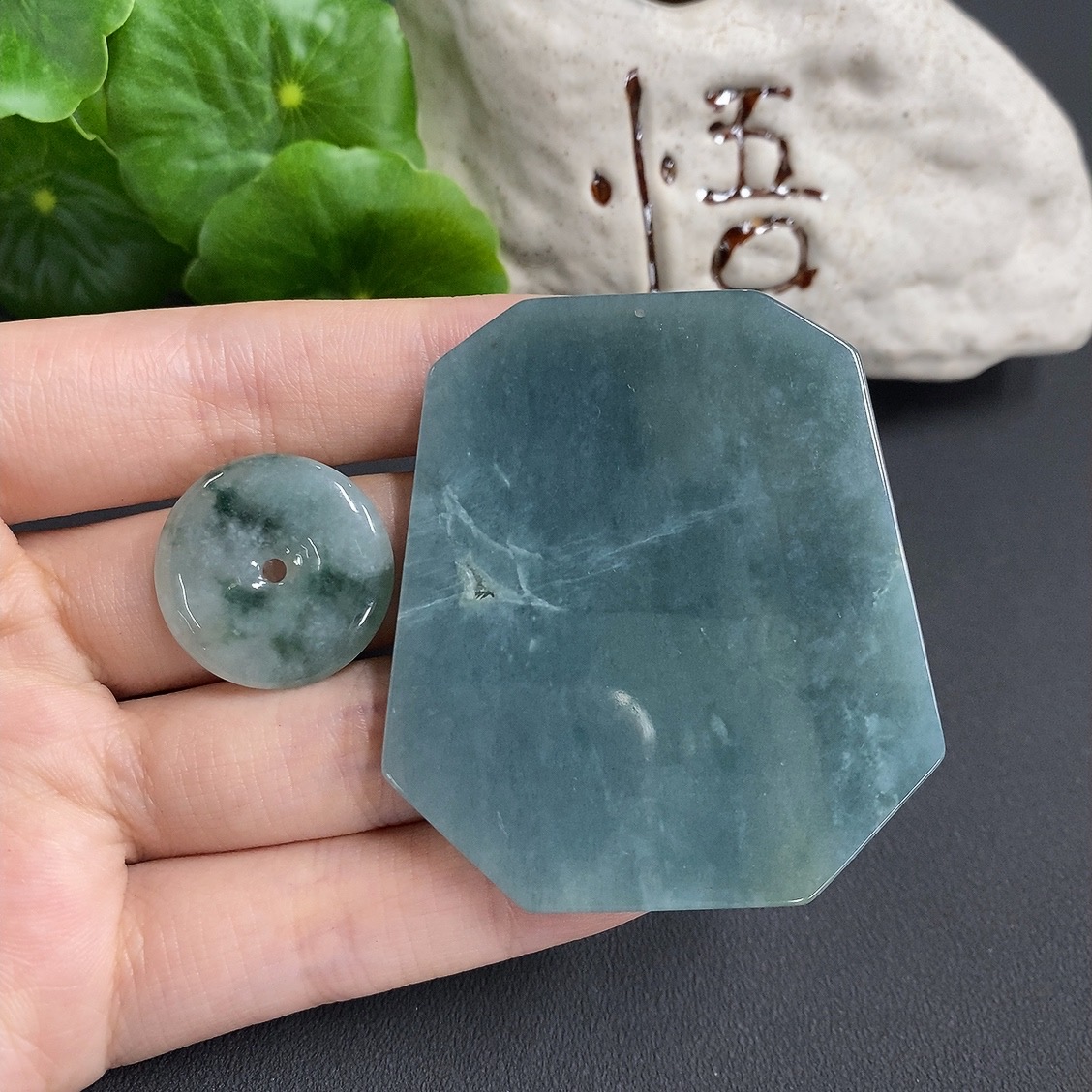 Jadeite Pendant Two Pieces Sold Together with Cracks and Veins