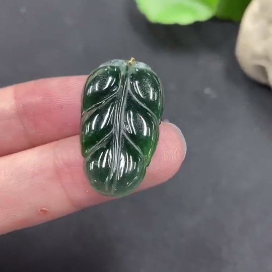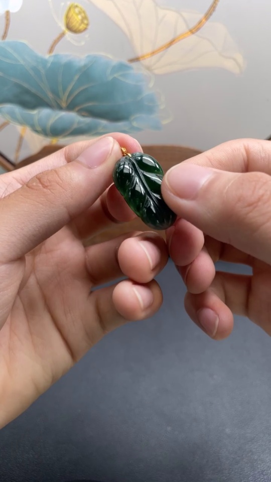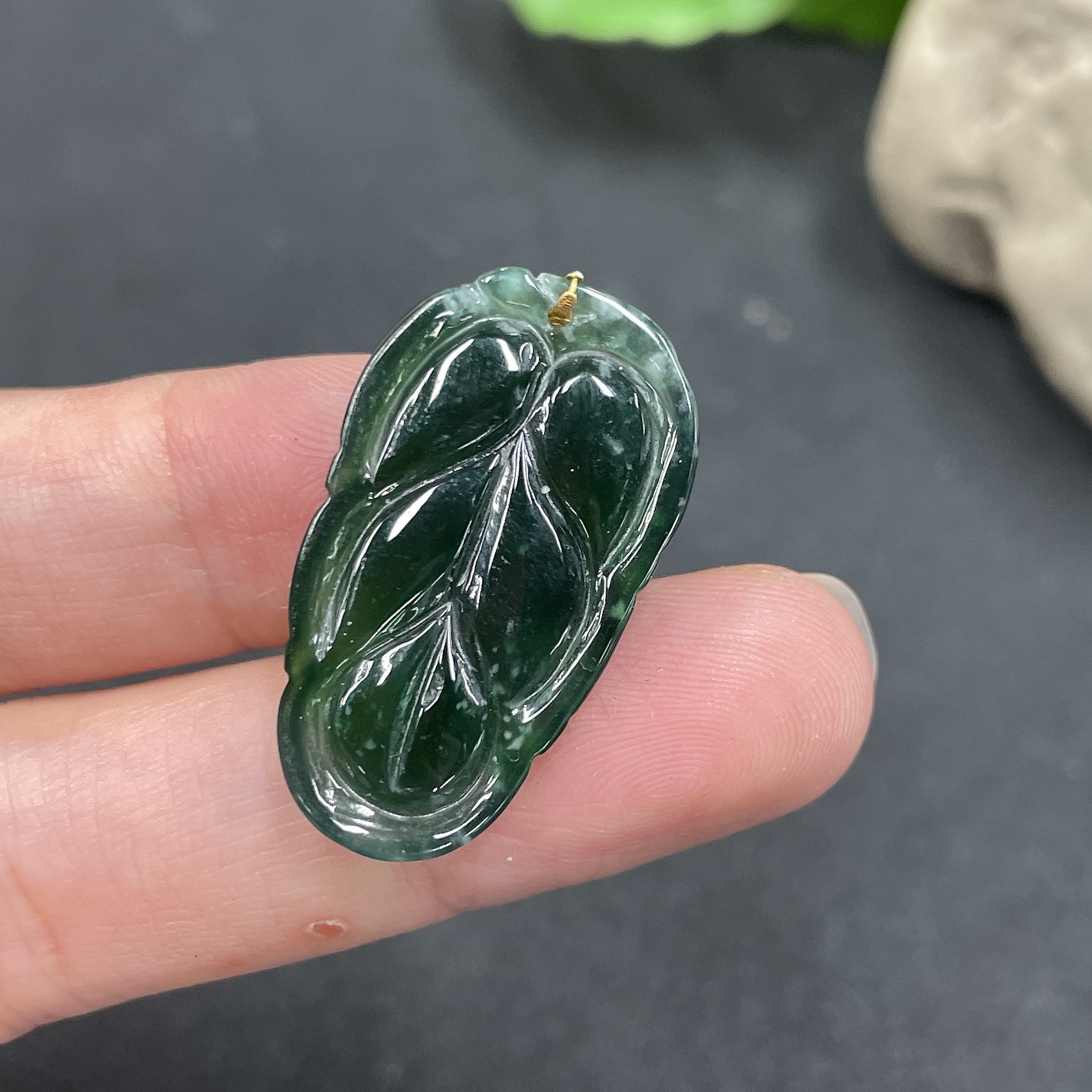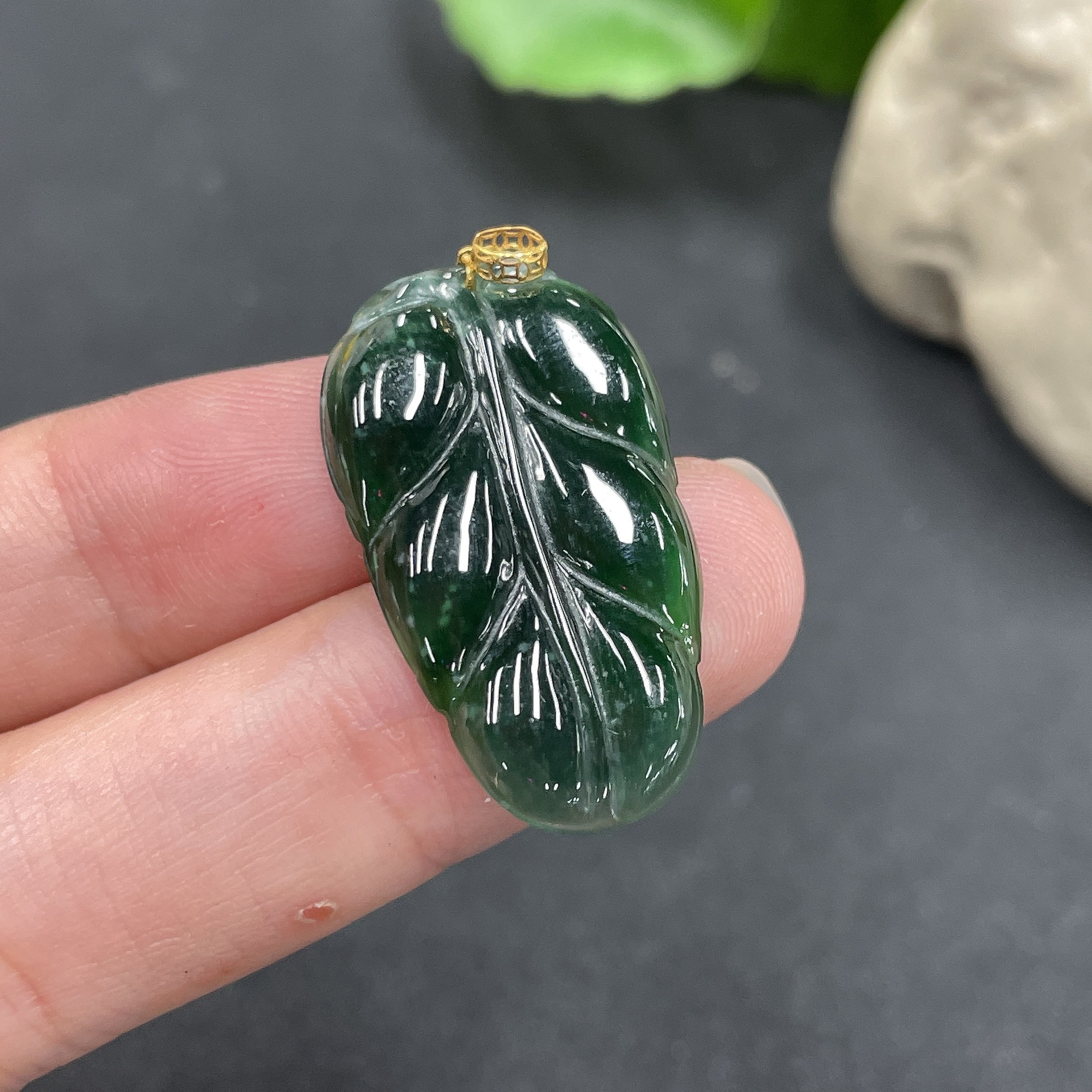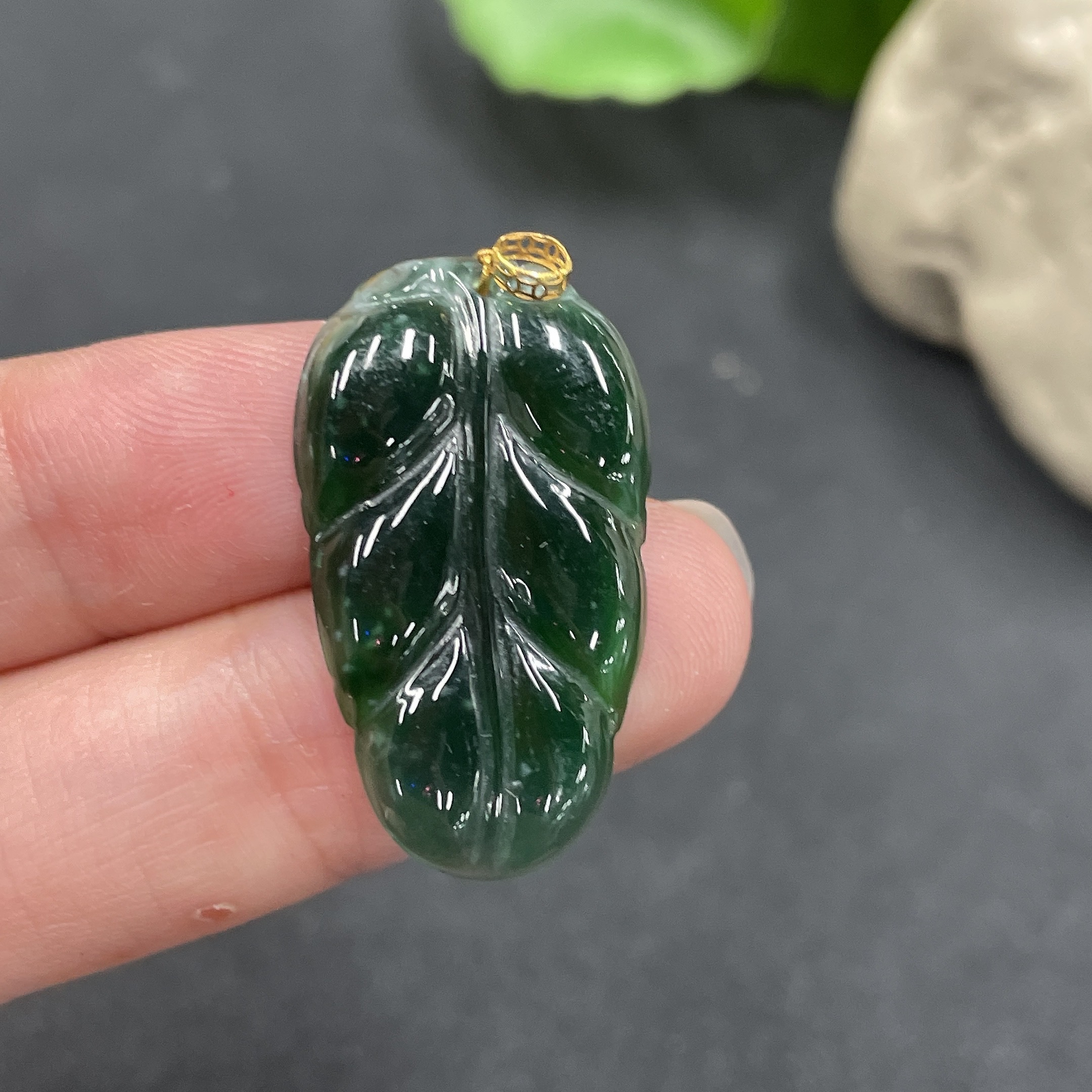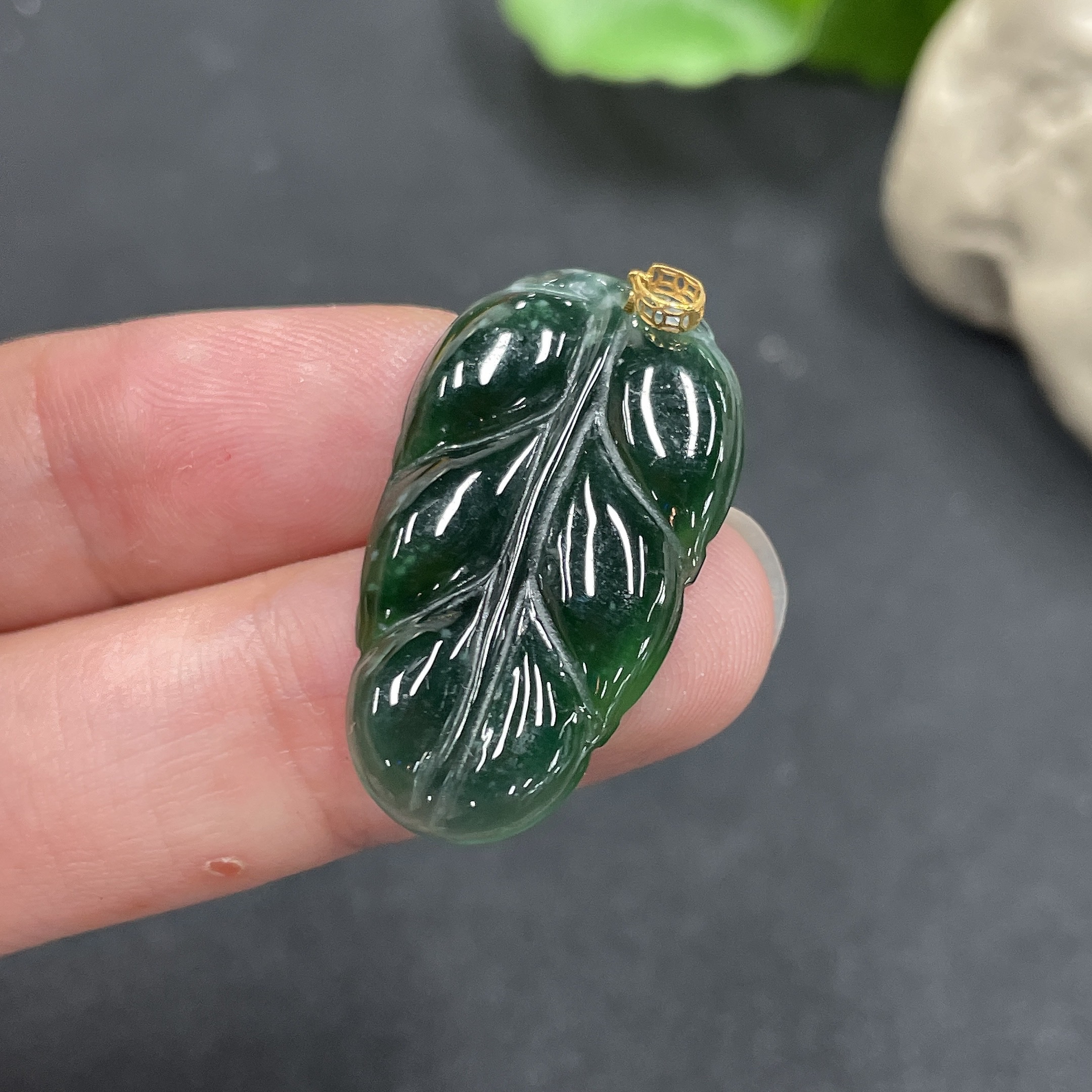 Trezaar - Jadeite Pendant Leaf with 18K Gold Bail