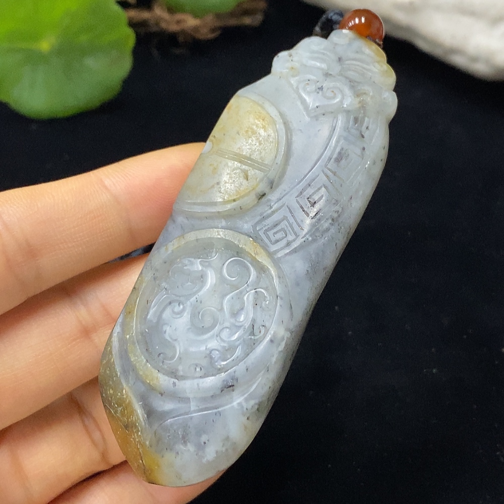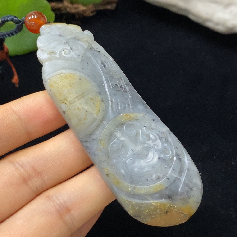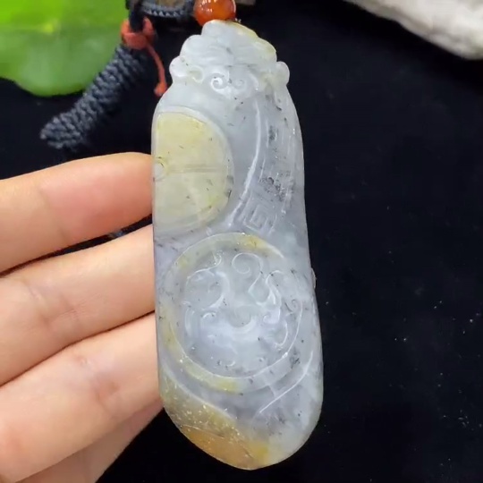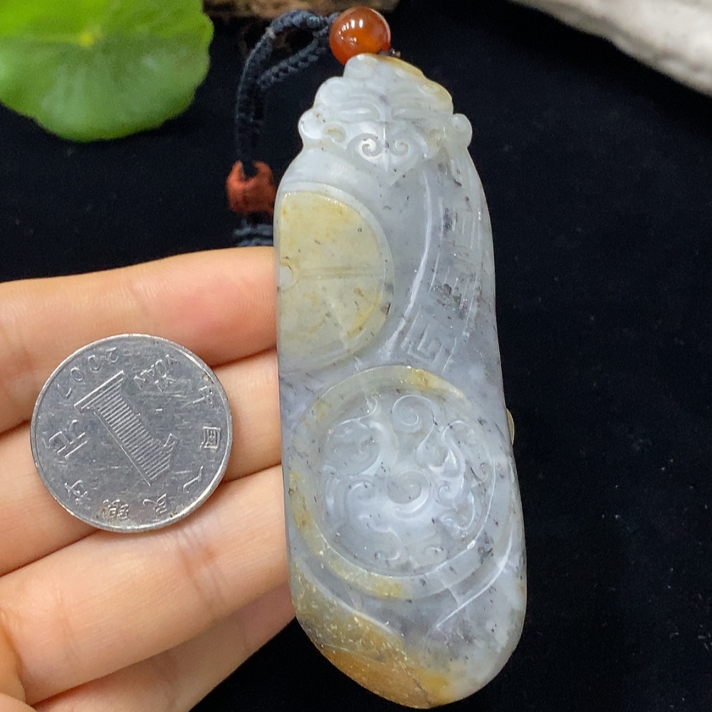 Hetian Jade Pendant with Cord, Total Weight 52.88g, Undetermined Skin Color Origin