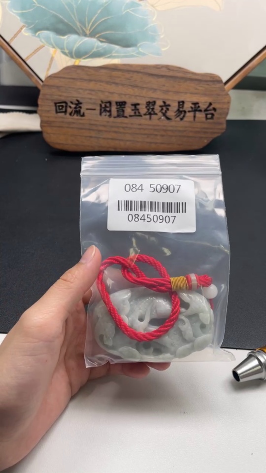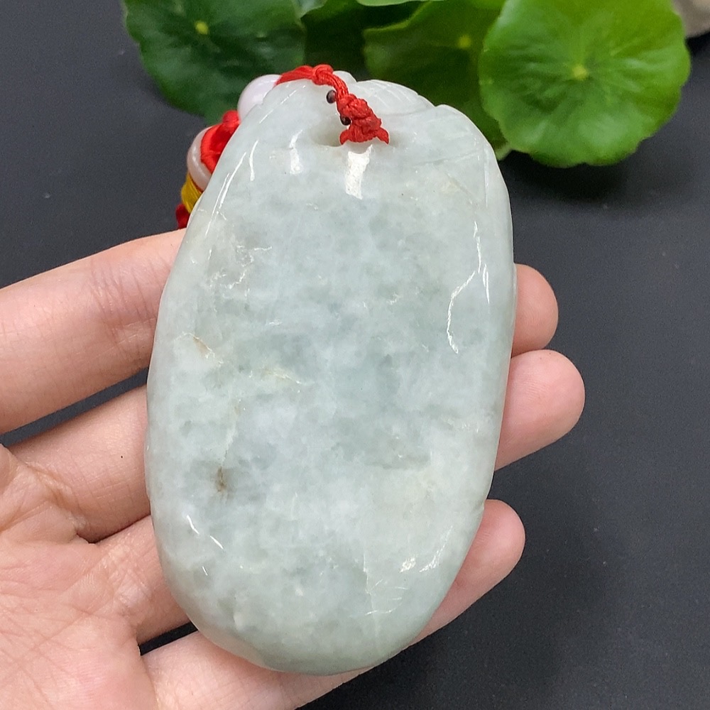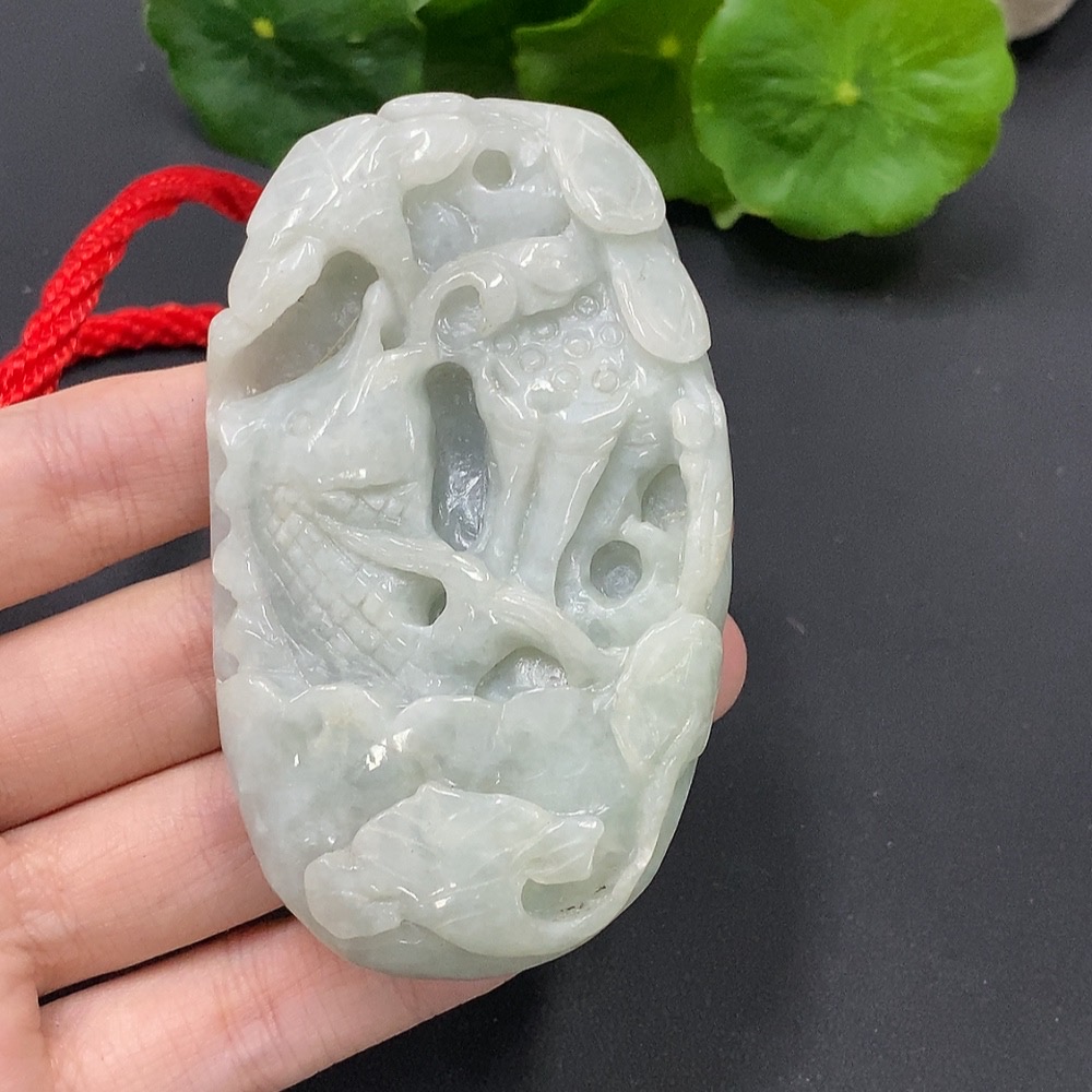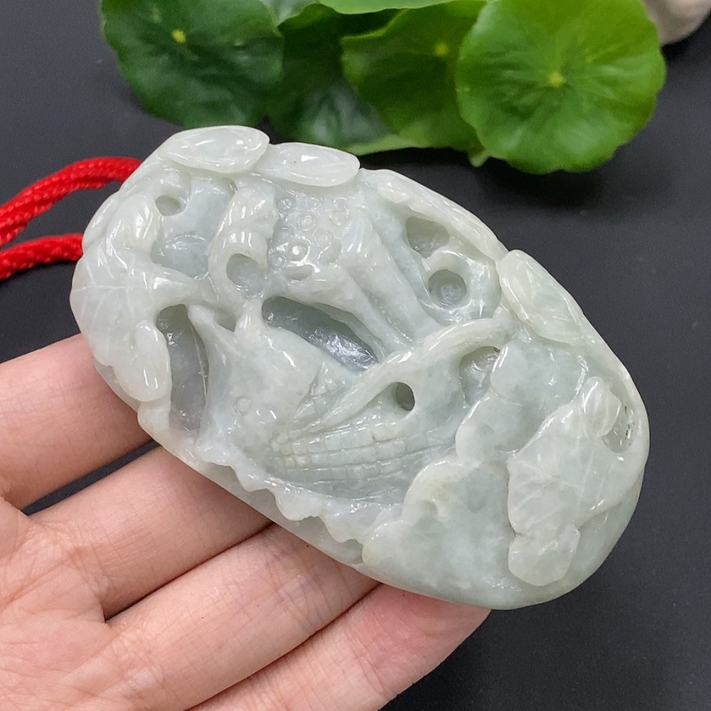 JadeiteLotus Leaf and Fish Pendant