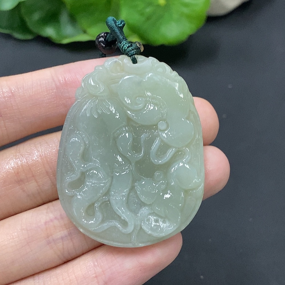 Hetian Jade Pendant with Cord, Total Weight 30.3g