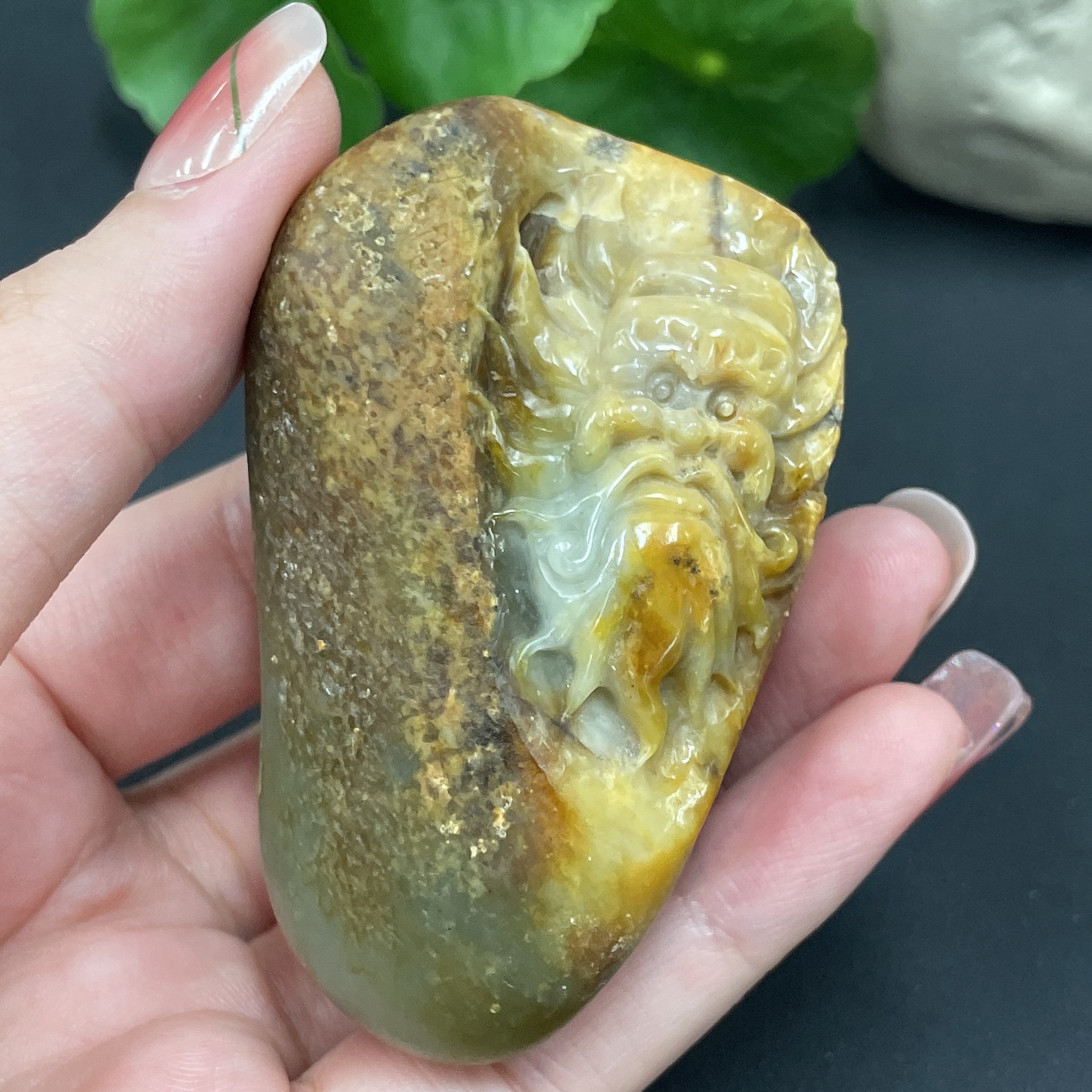 Hetian Jade Seed Material Hand Piece - Zhong Kui, Approx. 106.01g (Undetermined skin color origin)