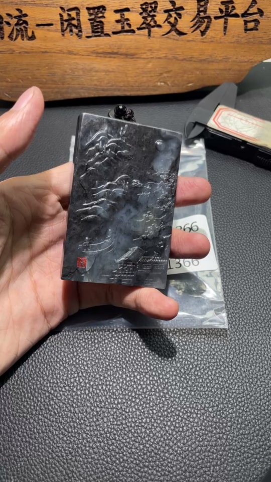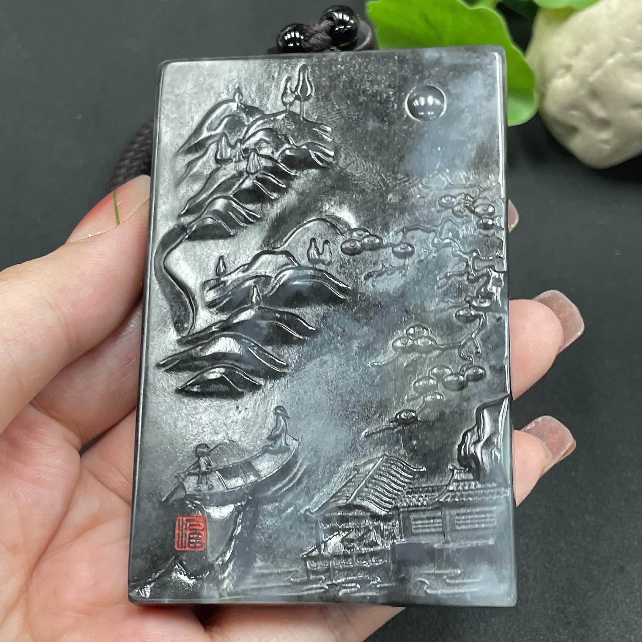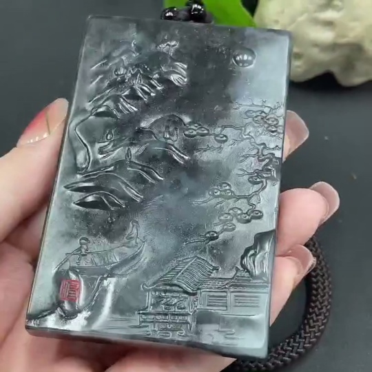 Hetian Jade Handheld Piece - Landscape, Approx. 158.25g (including rope)