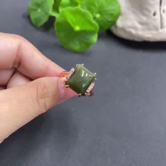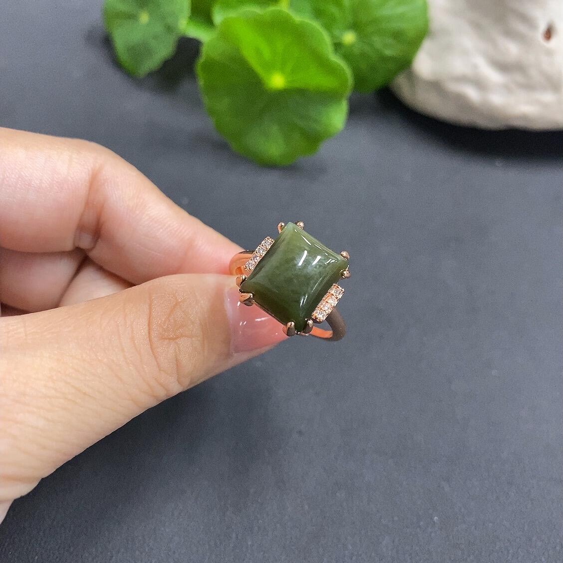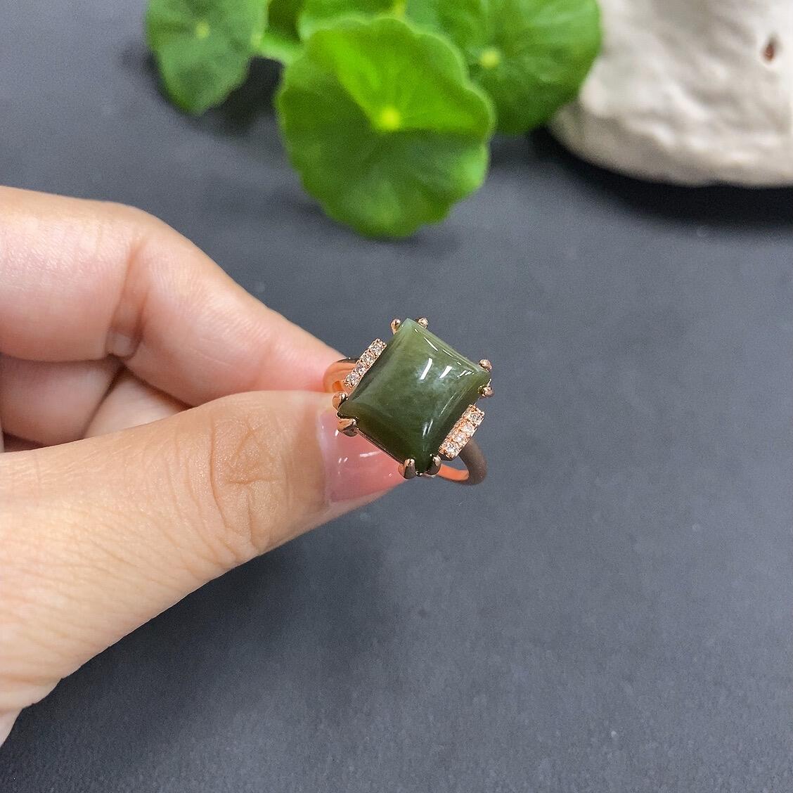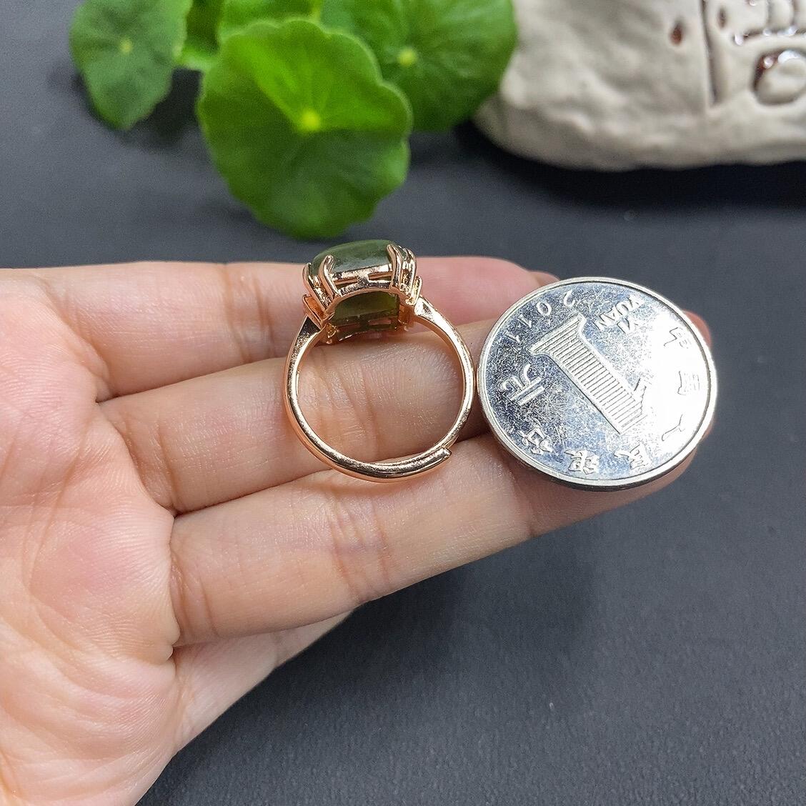 Hetian Jade Cabochon Ring with Cracks, Unidentified Setting Material, Total Weight 3.6g