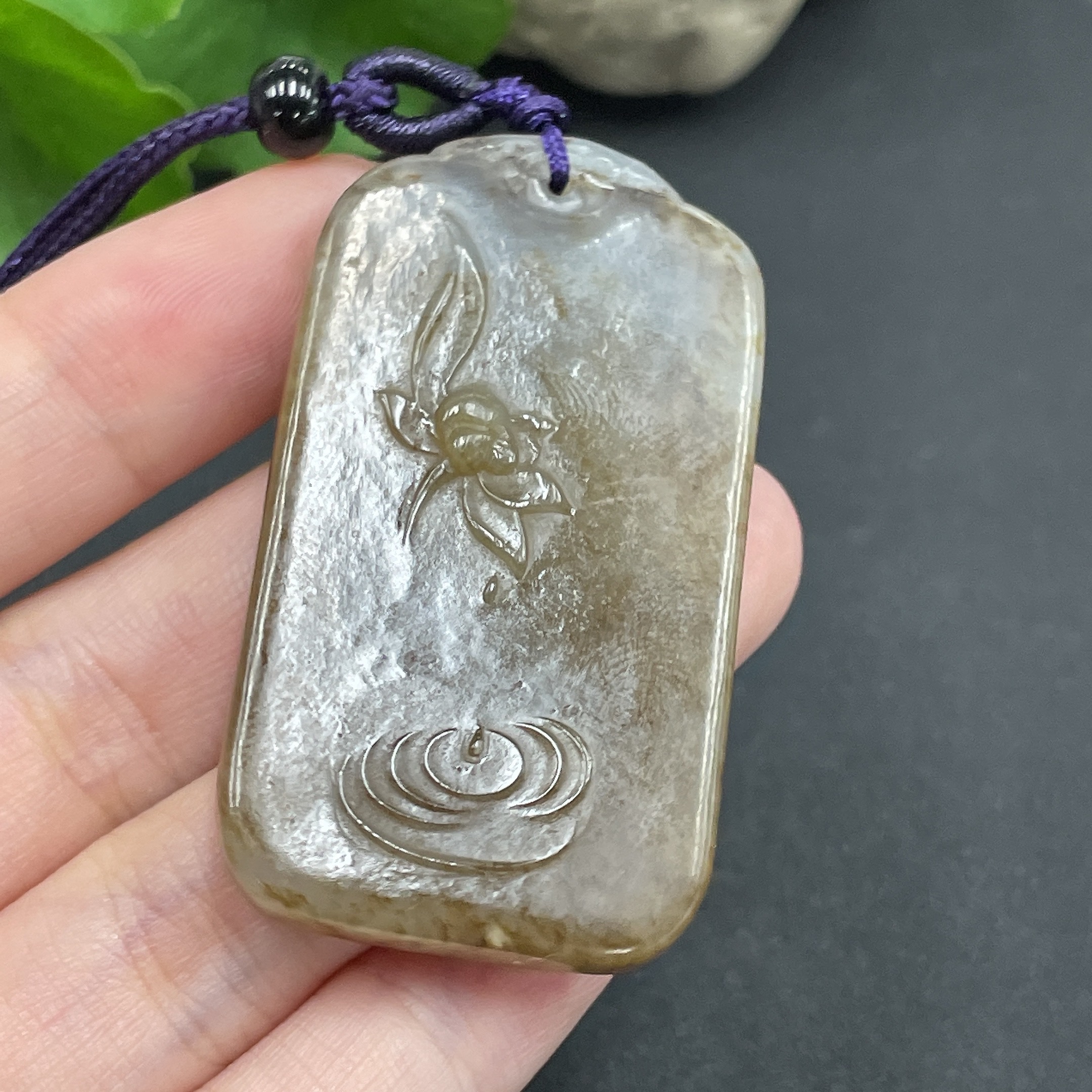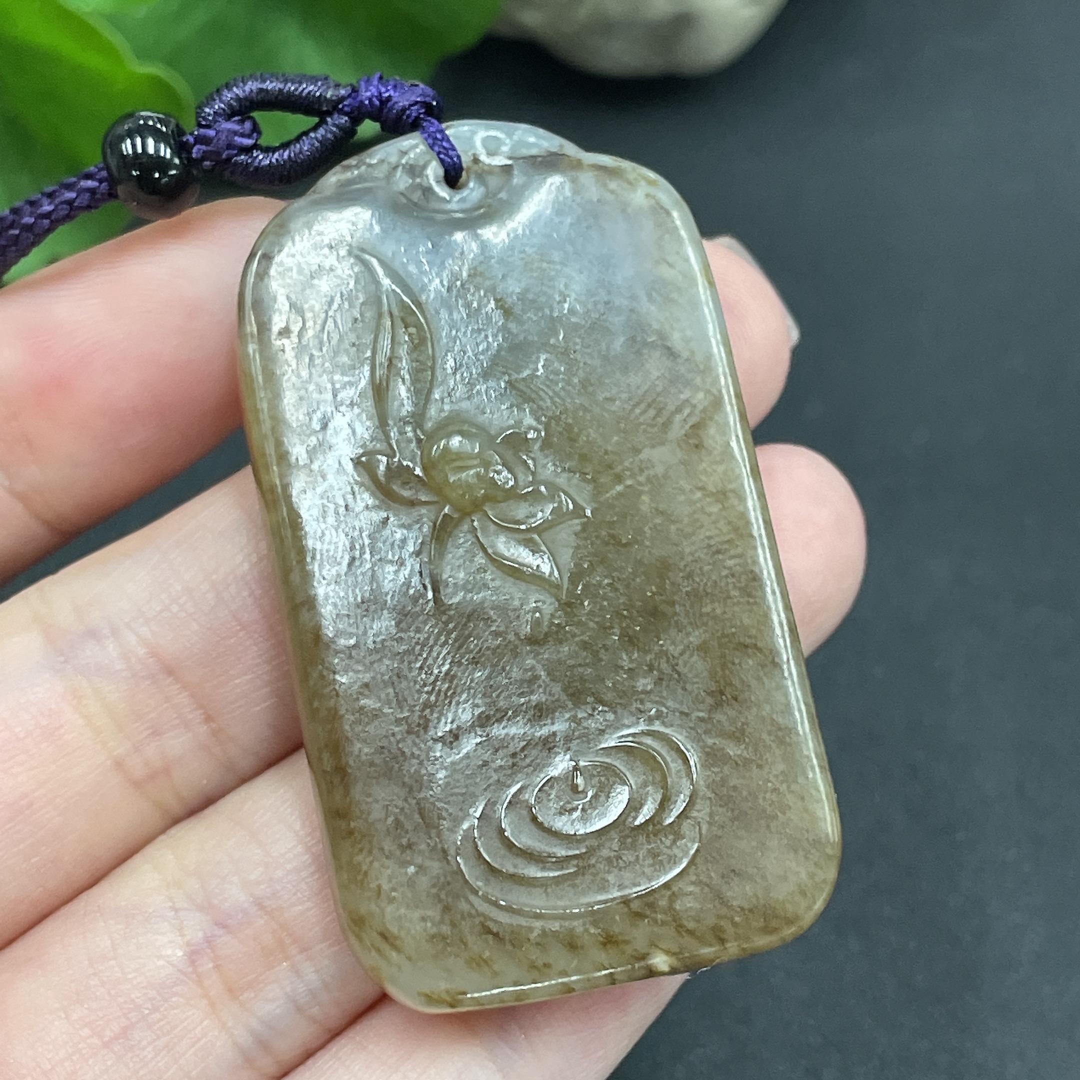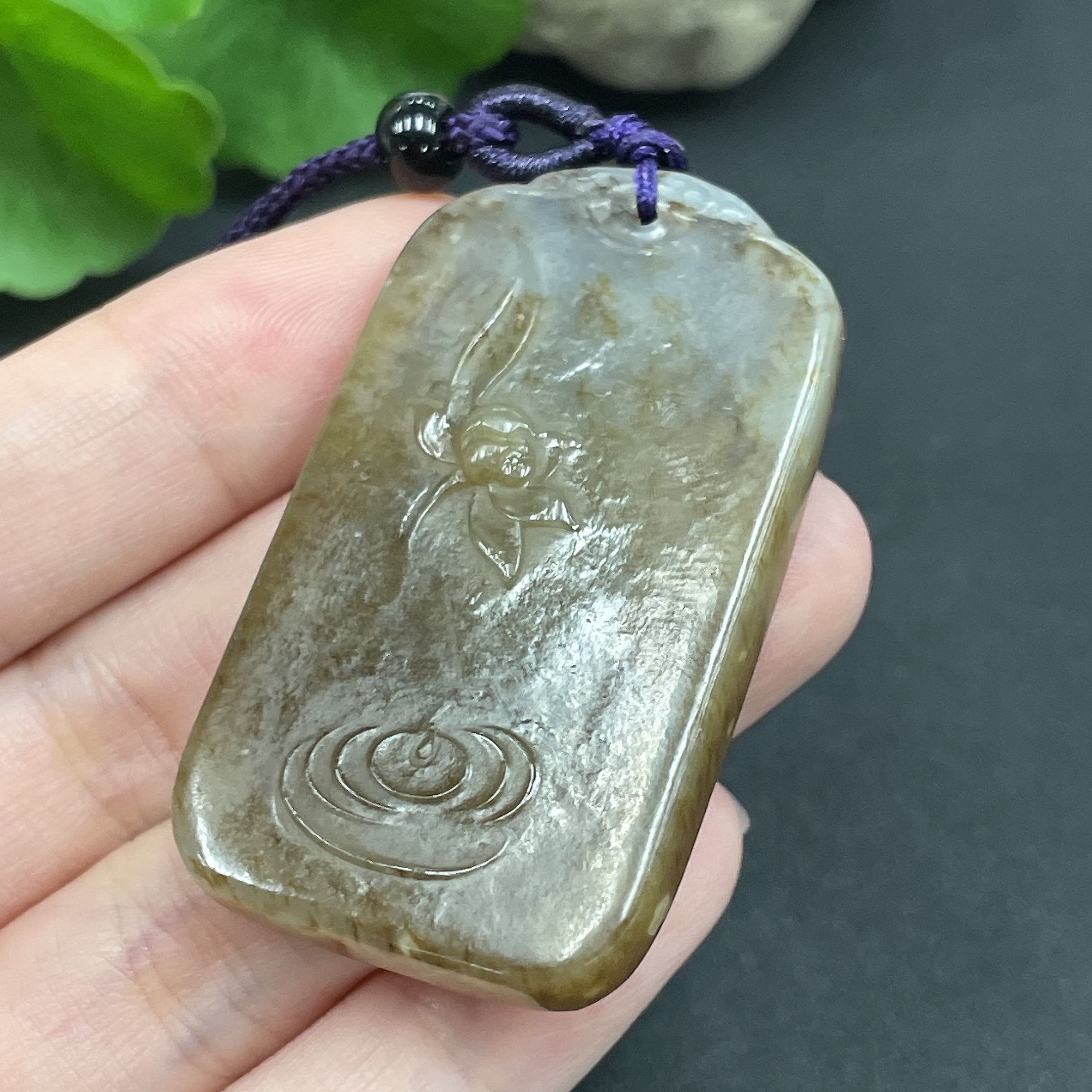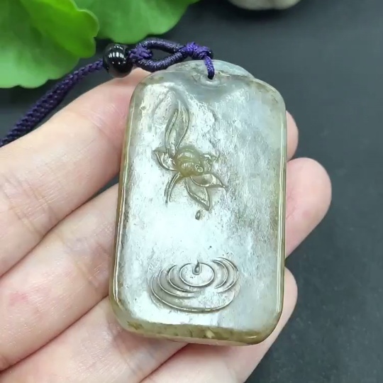Hetian Jade Pendant Flower Approximately 23.63g (including rope)