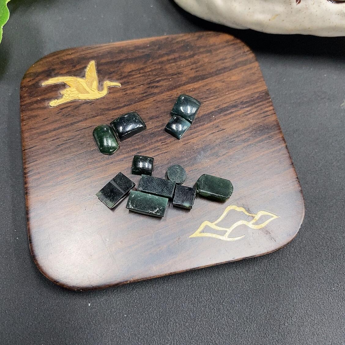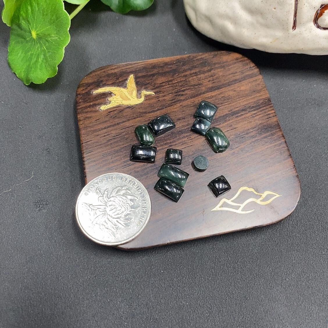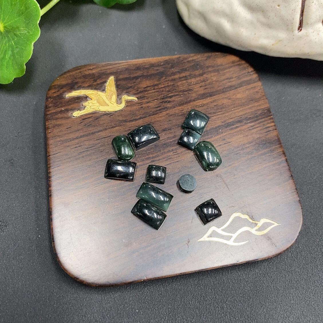 A batch of jadeite cabochons for sale, some with natural veins and cracks