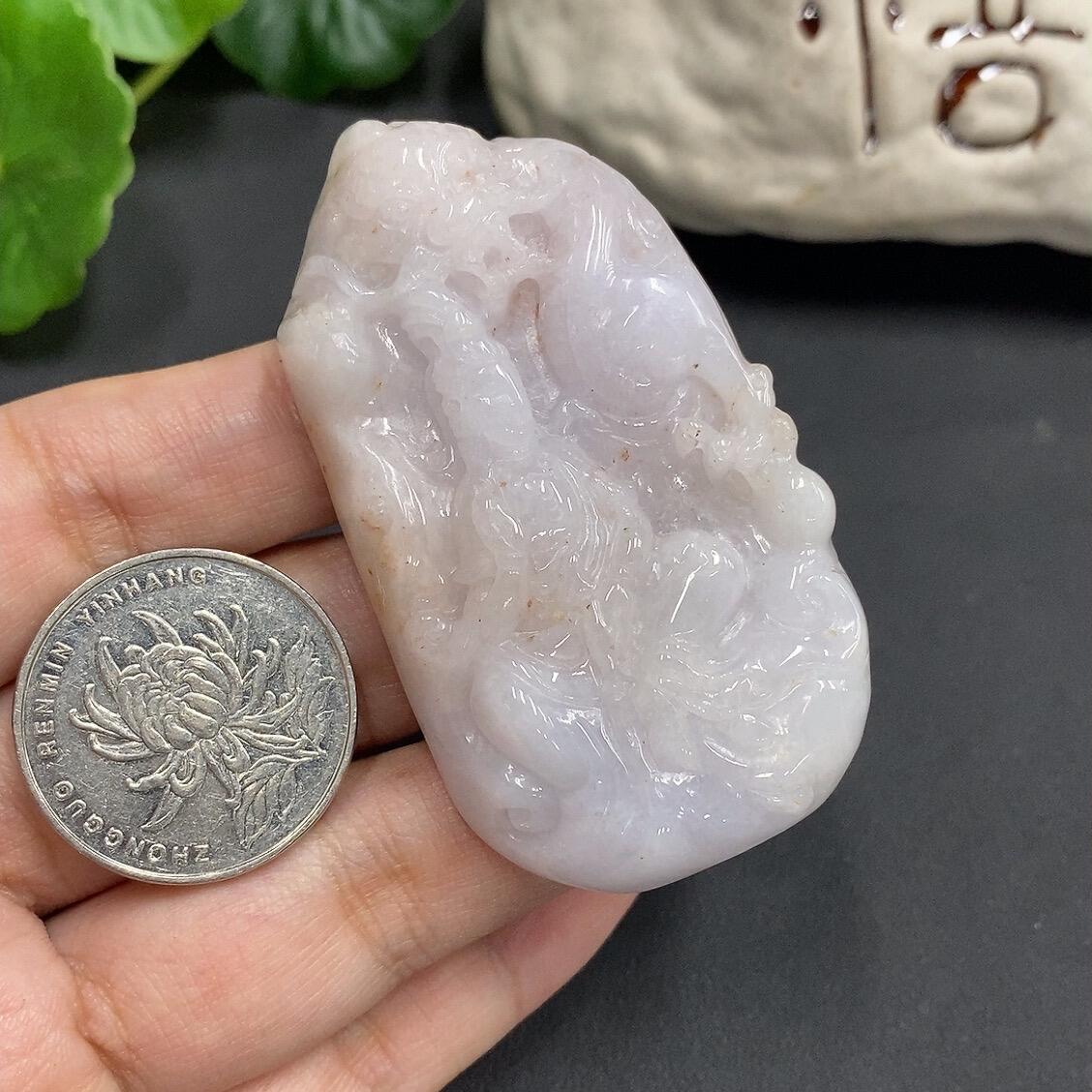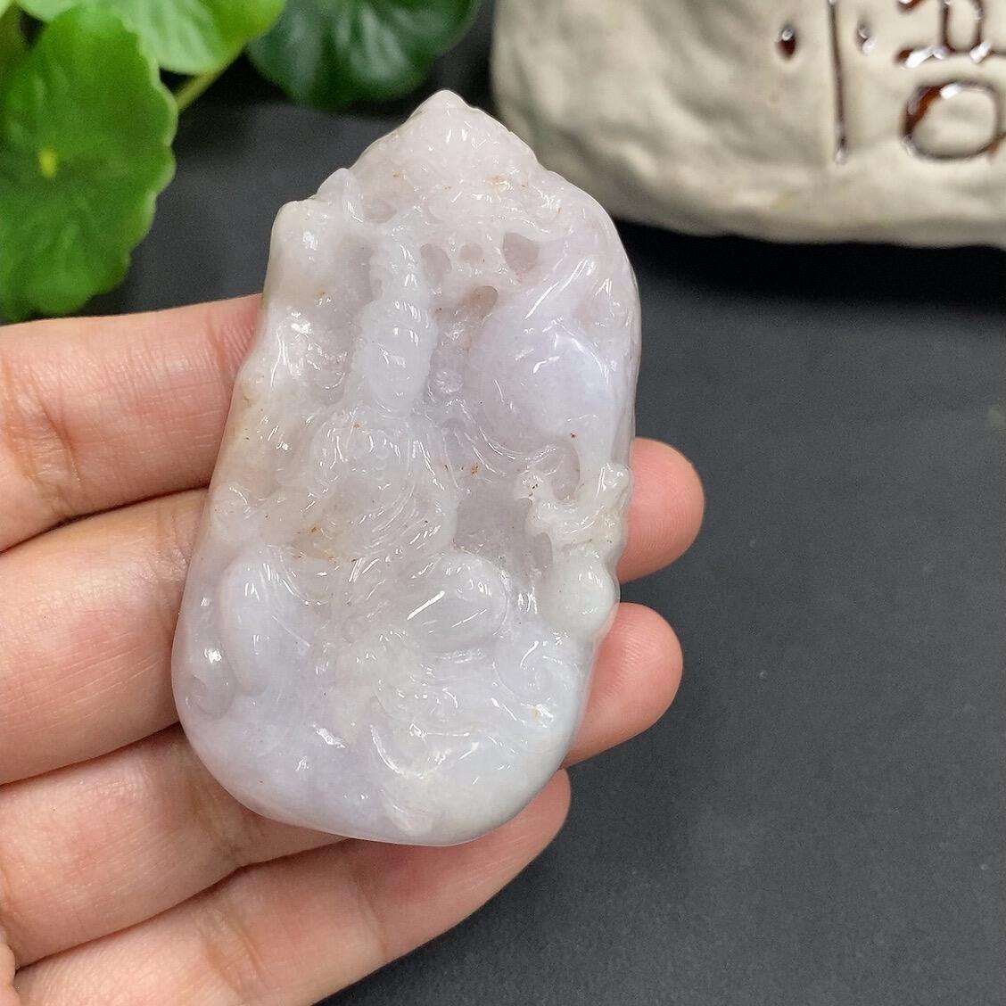Jadeite Imperial Dragon Guanyin Pendant with Veins