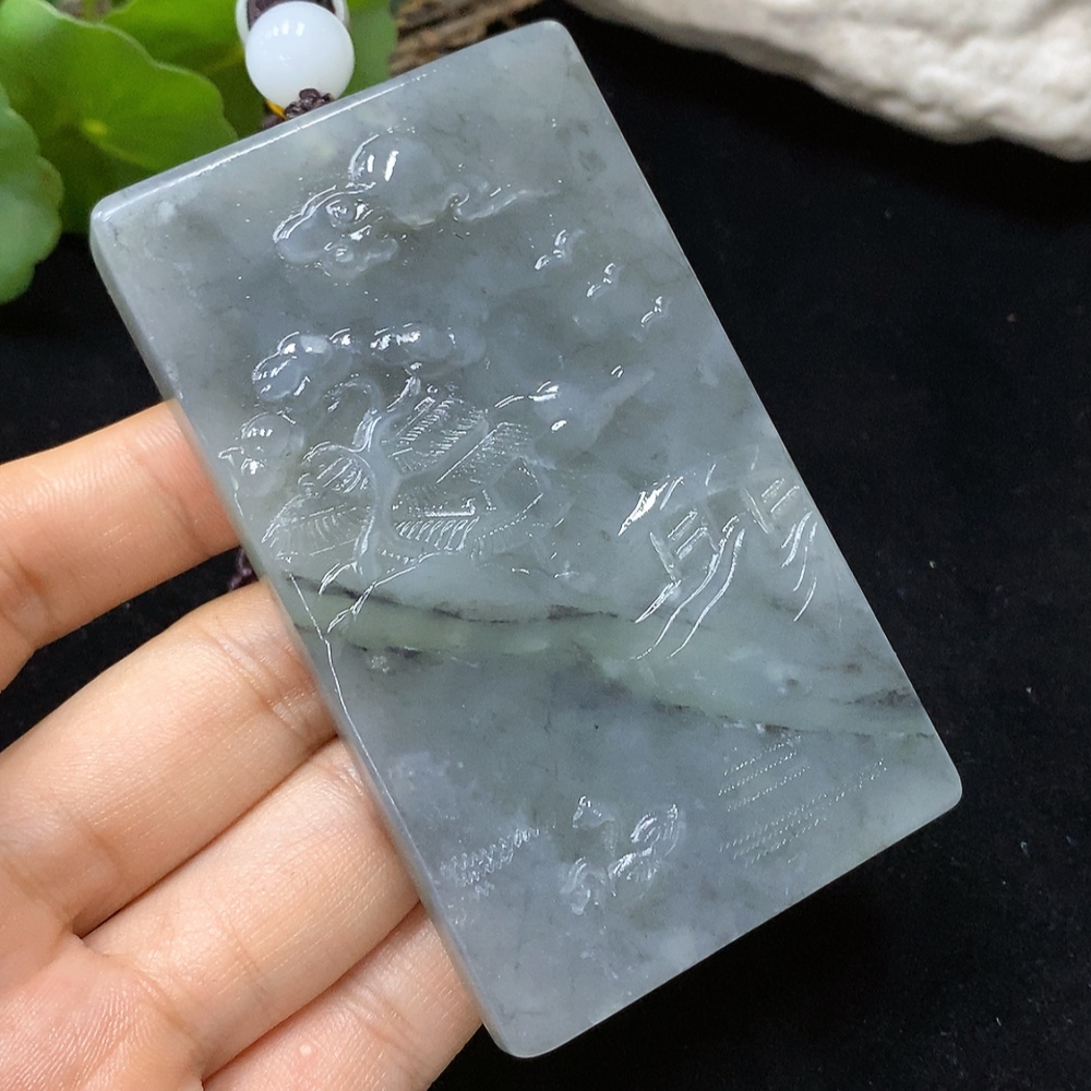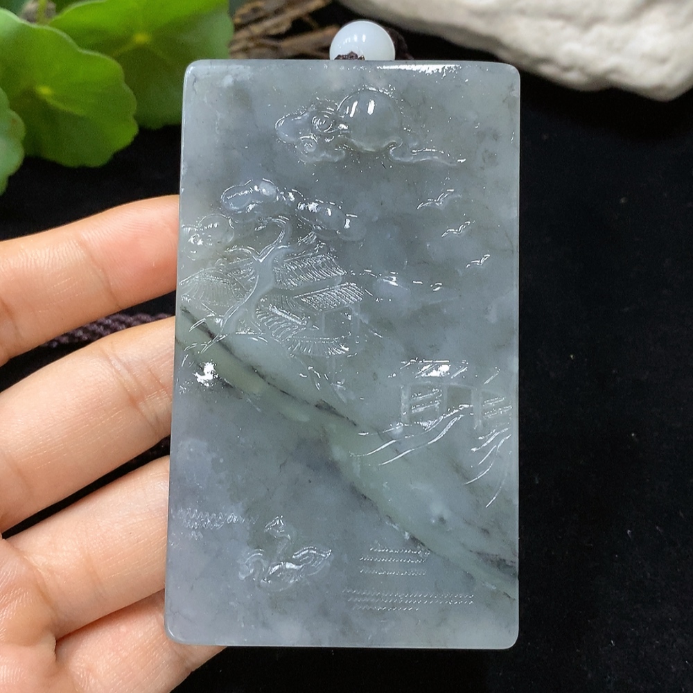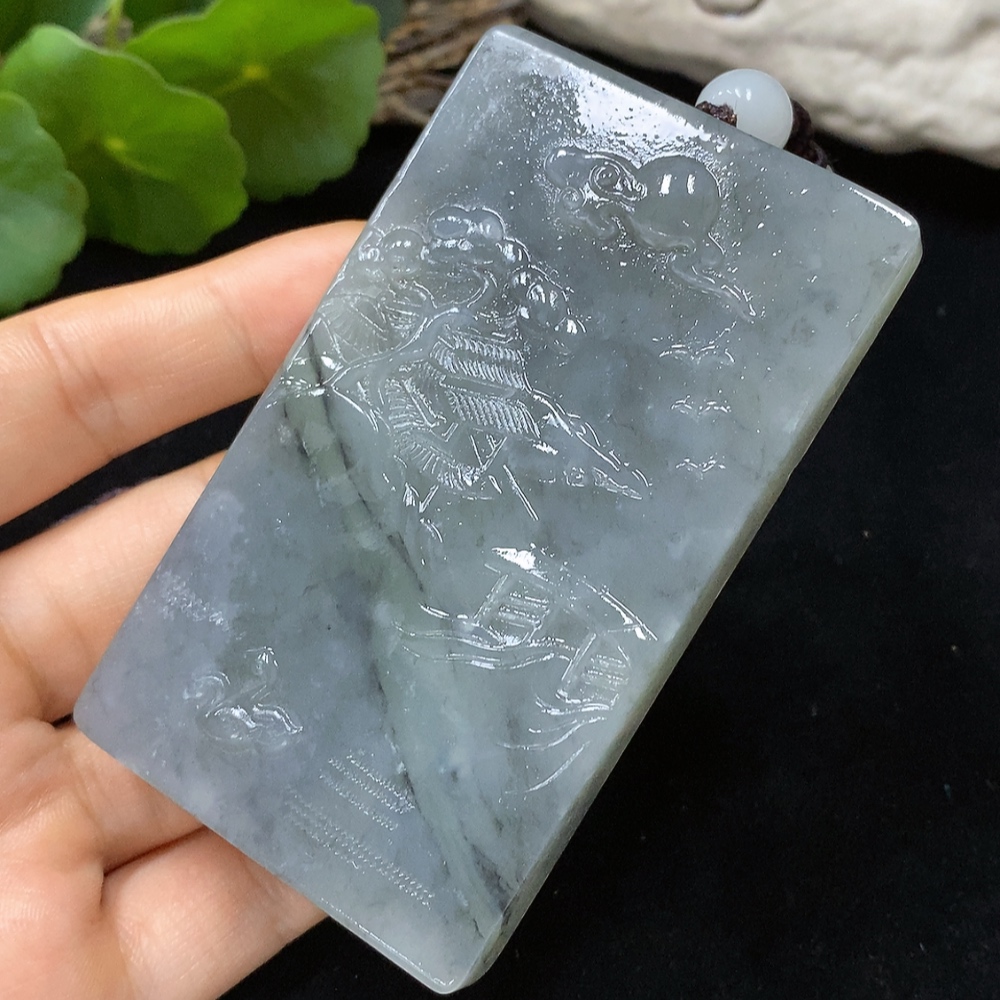Hetian Jade Landscape Pendant with Cord, Total Weight 123.27g