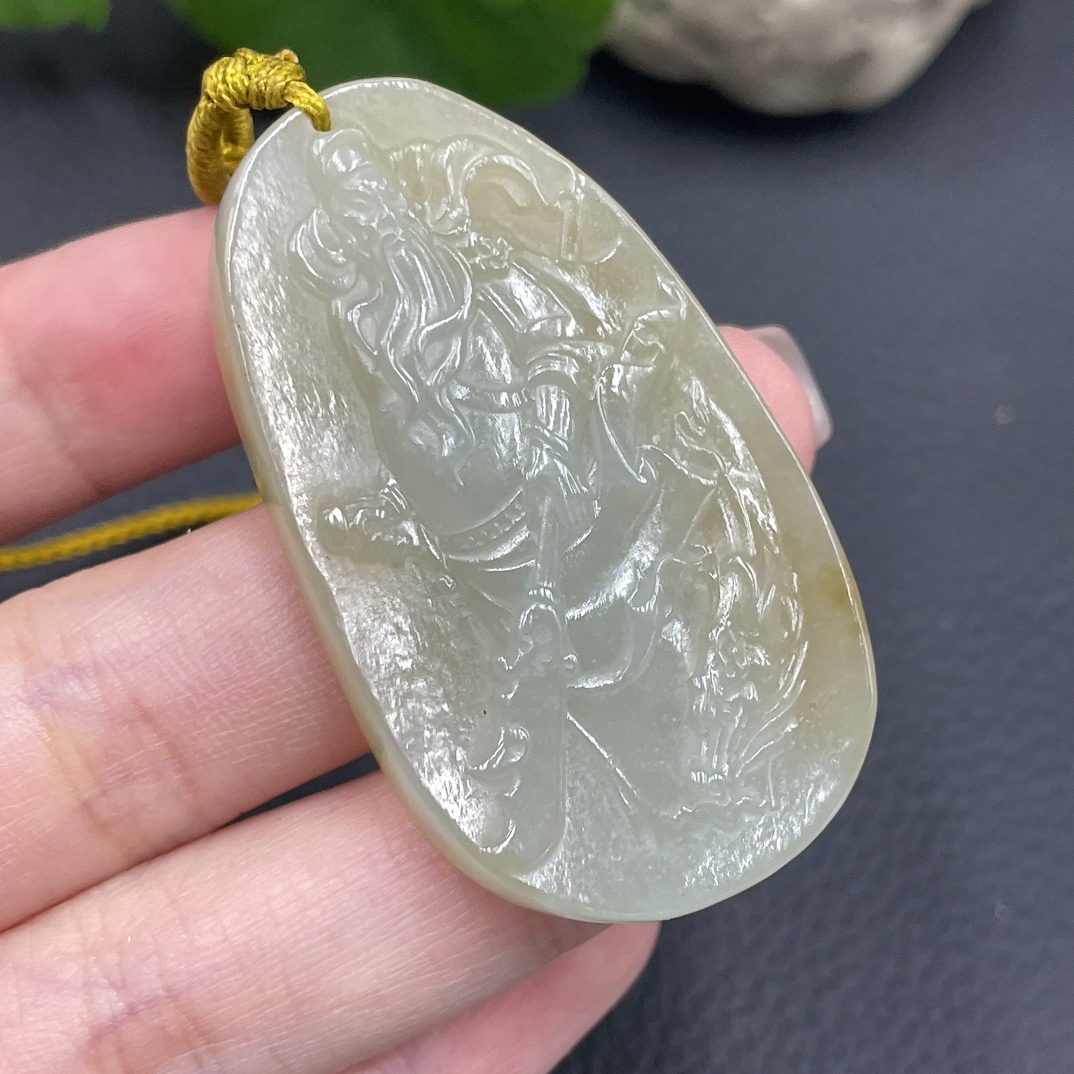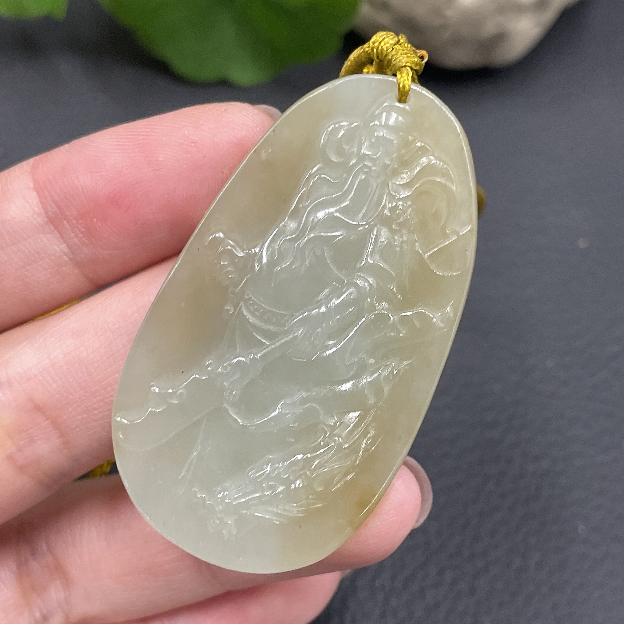 Hetian Jade Pendant "Loyalty and Righteousness" approx. 21.6g (with cord)