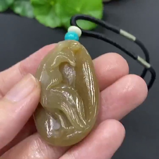 Hetian Jade Pendant, Total Weight with Rope 17.2g