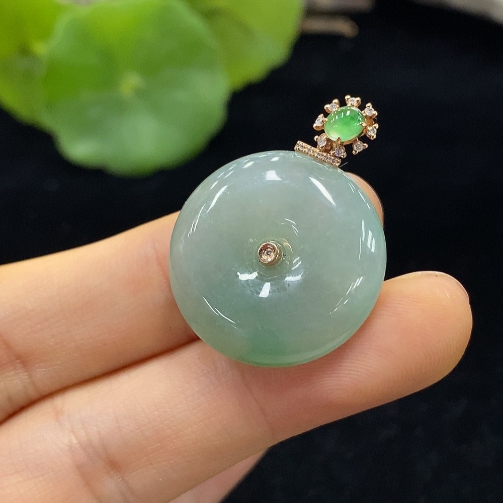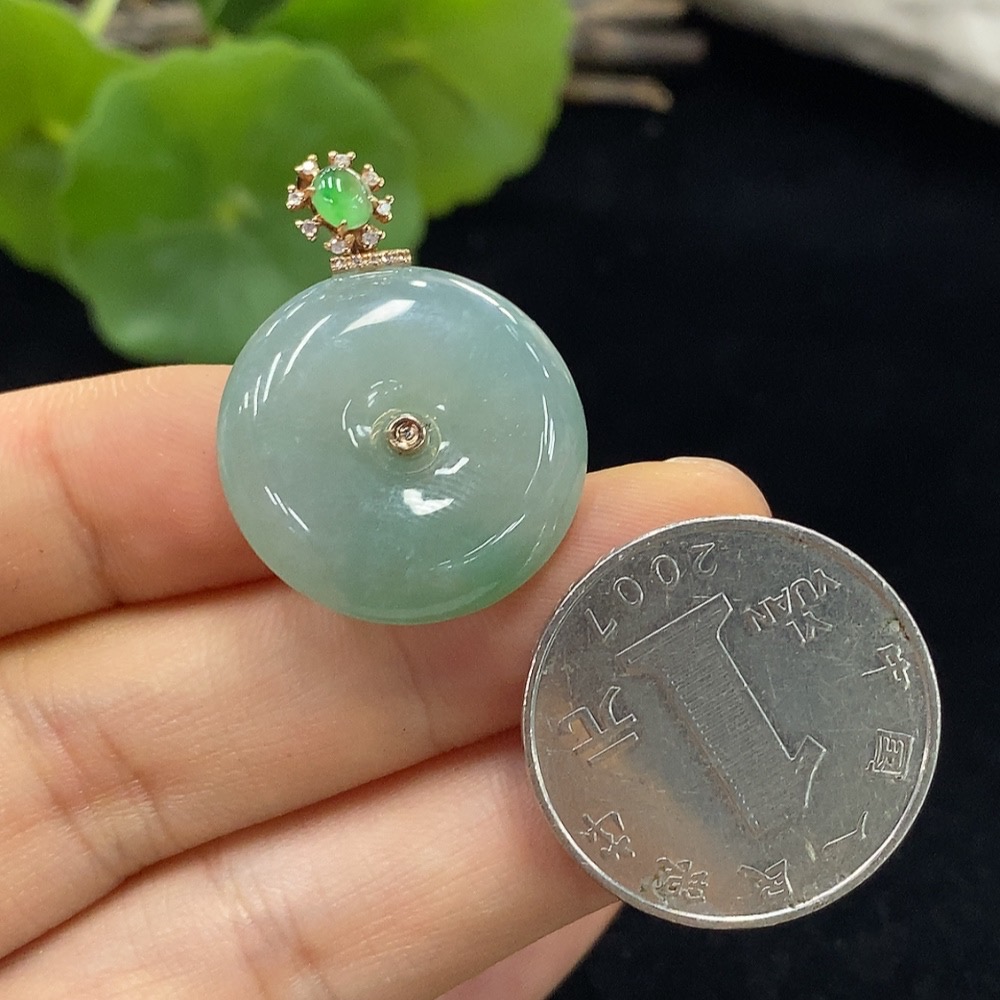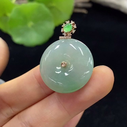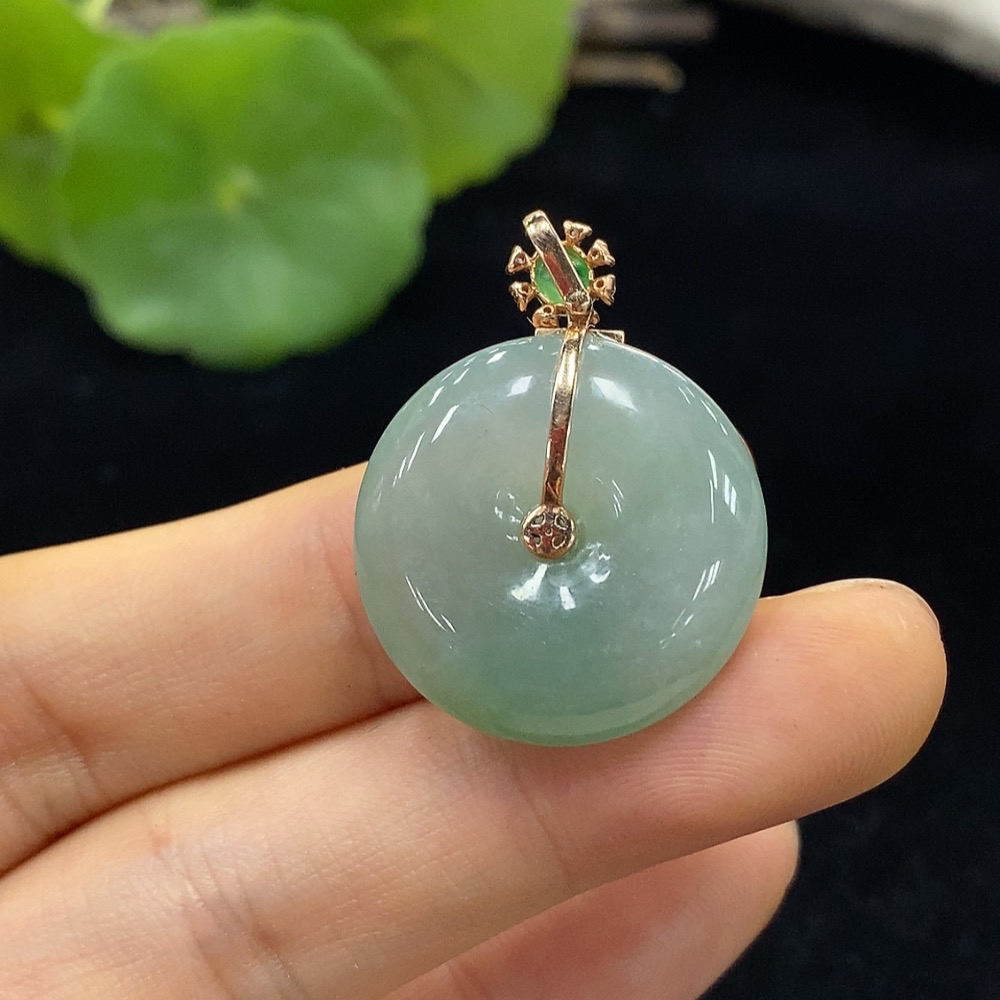 Jadeite Safety Pendant Set in 18K Gold, Approximately 6.82g
