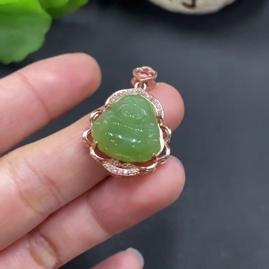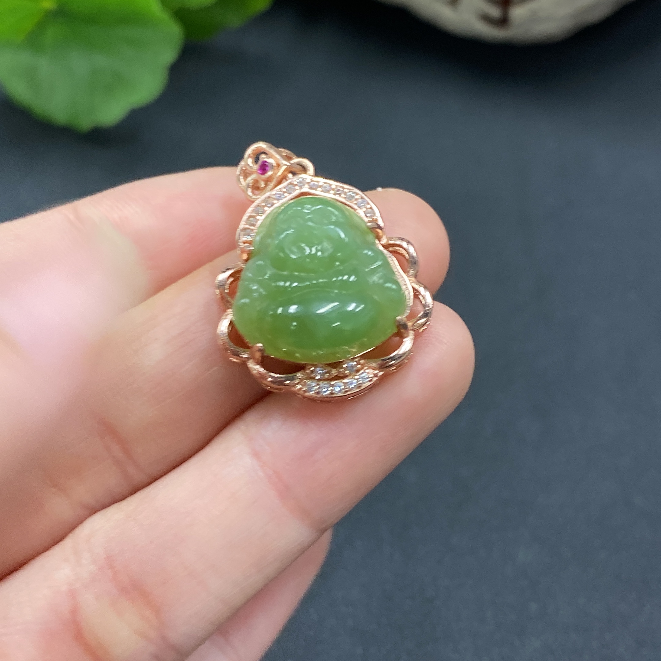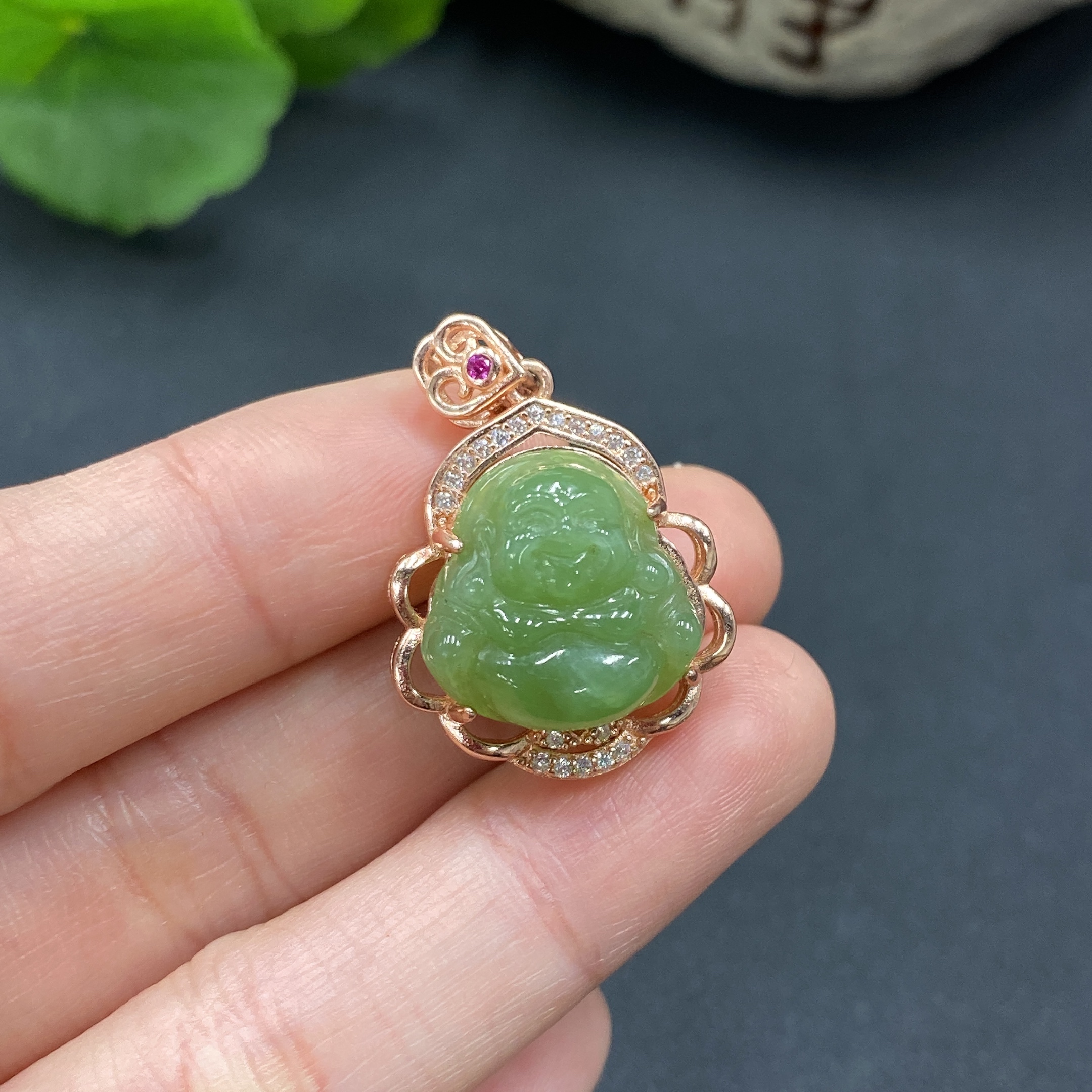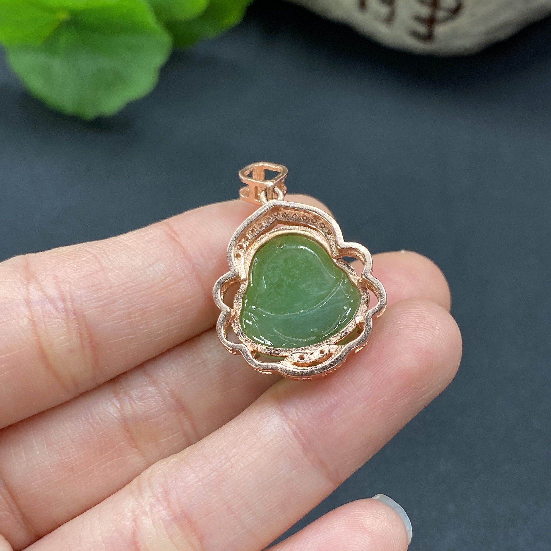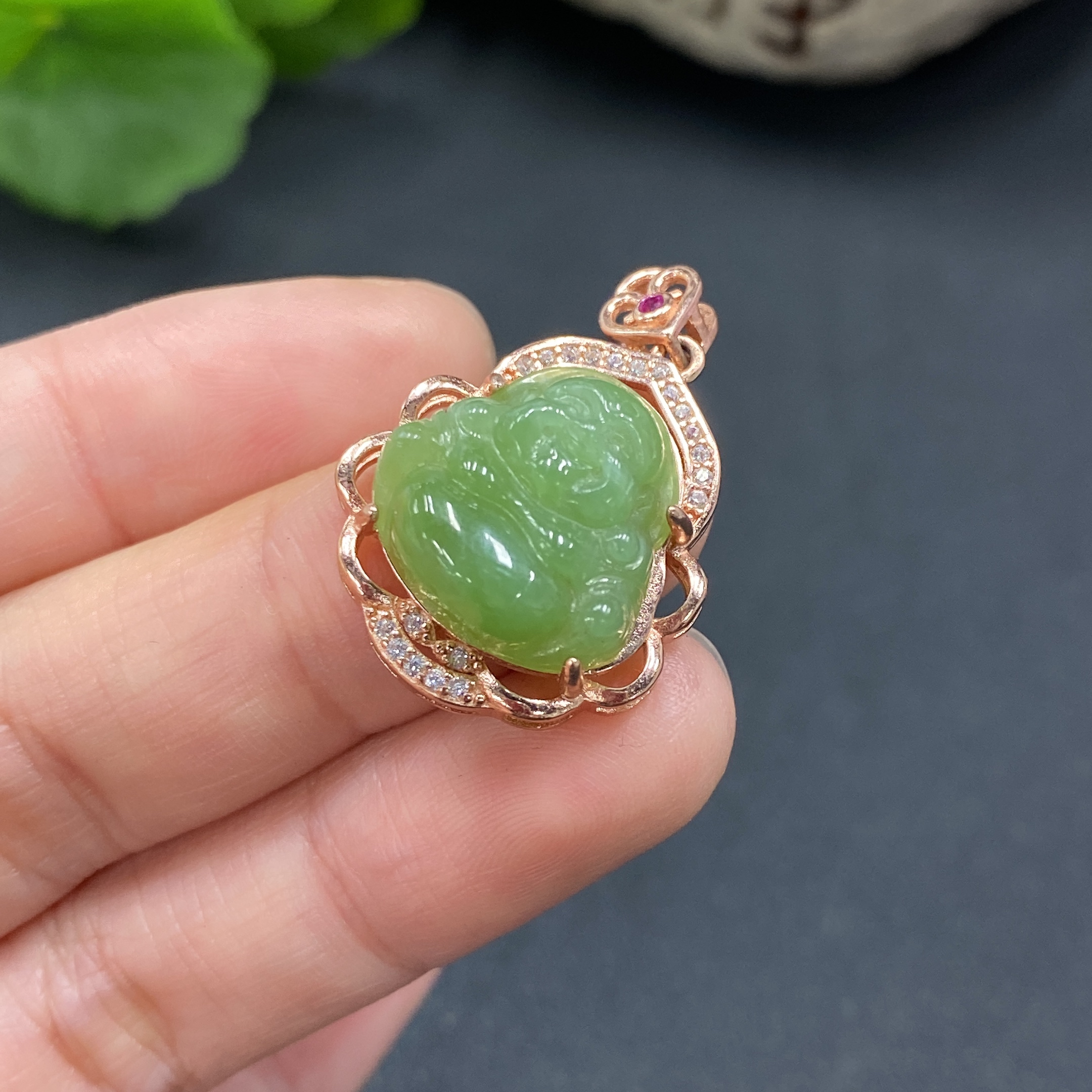 Hetian Jade Inlaid Buddha Non-Gold Inlaid Total Weight 3.7g