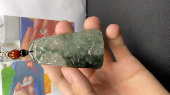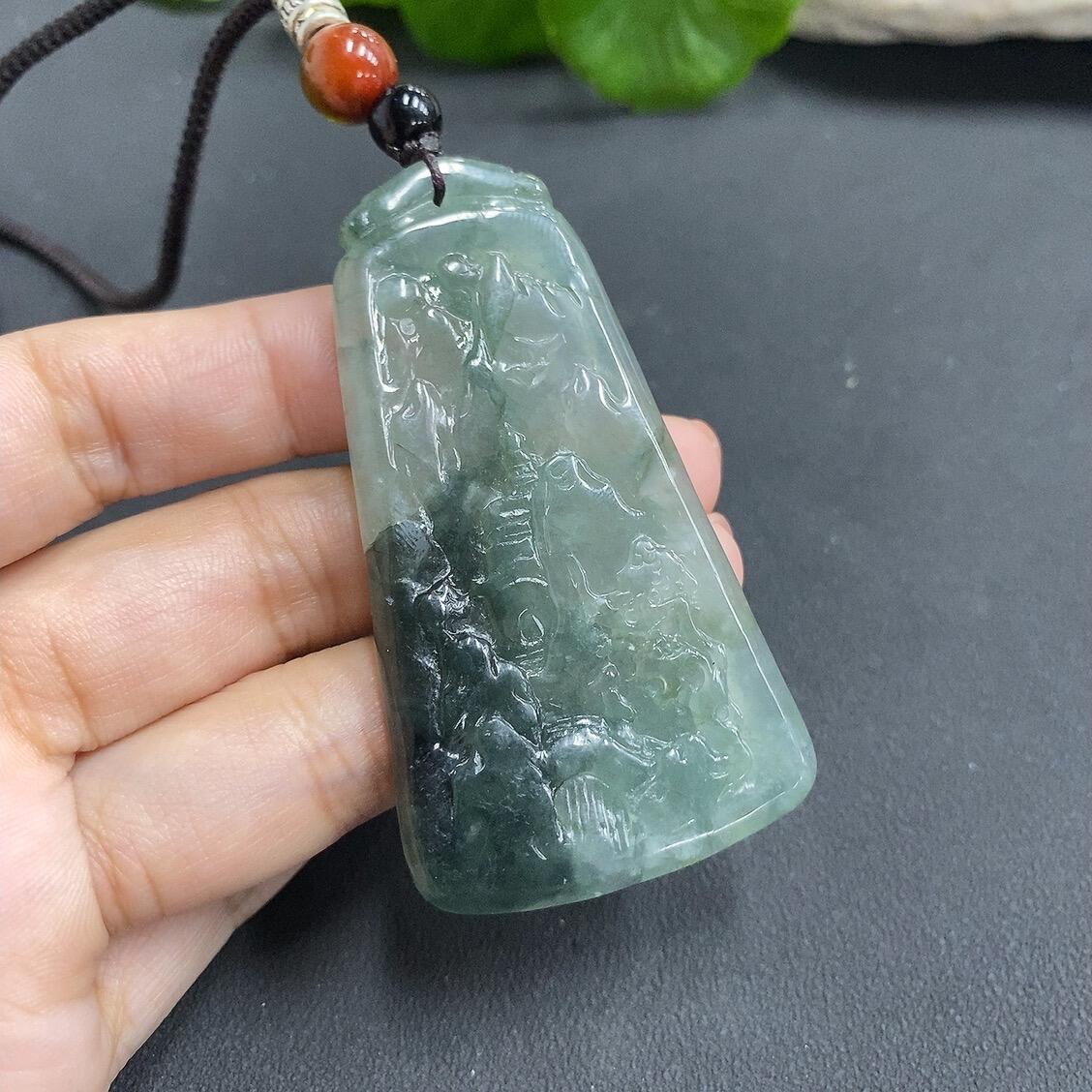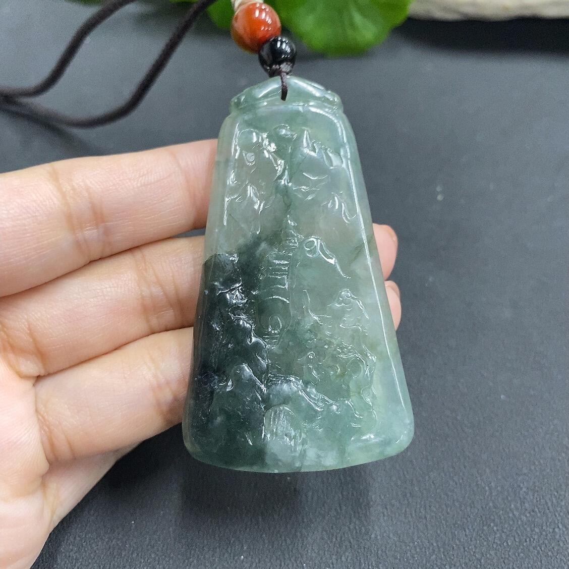 Jadeite Landscape Pendant with Cracks