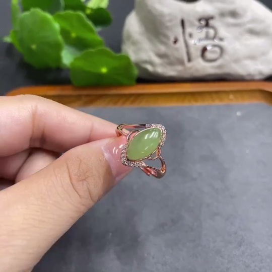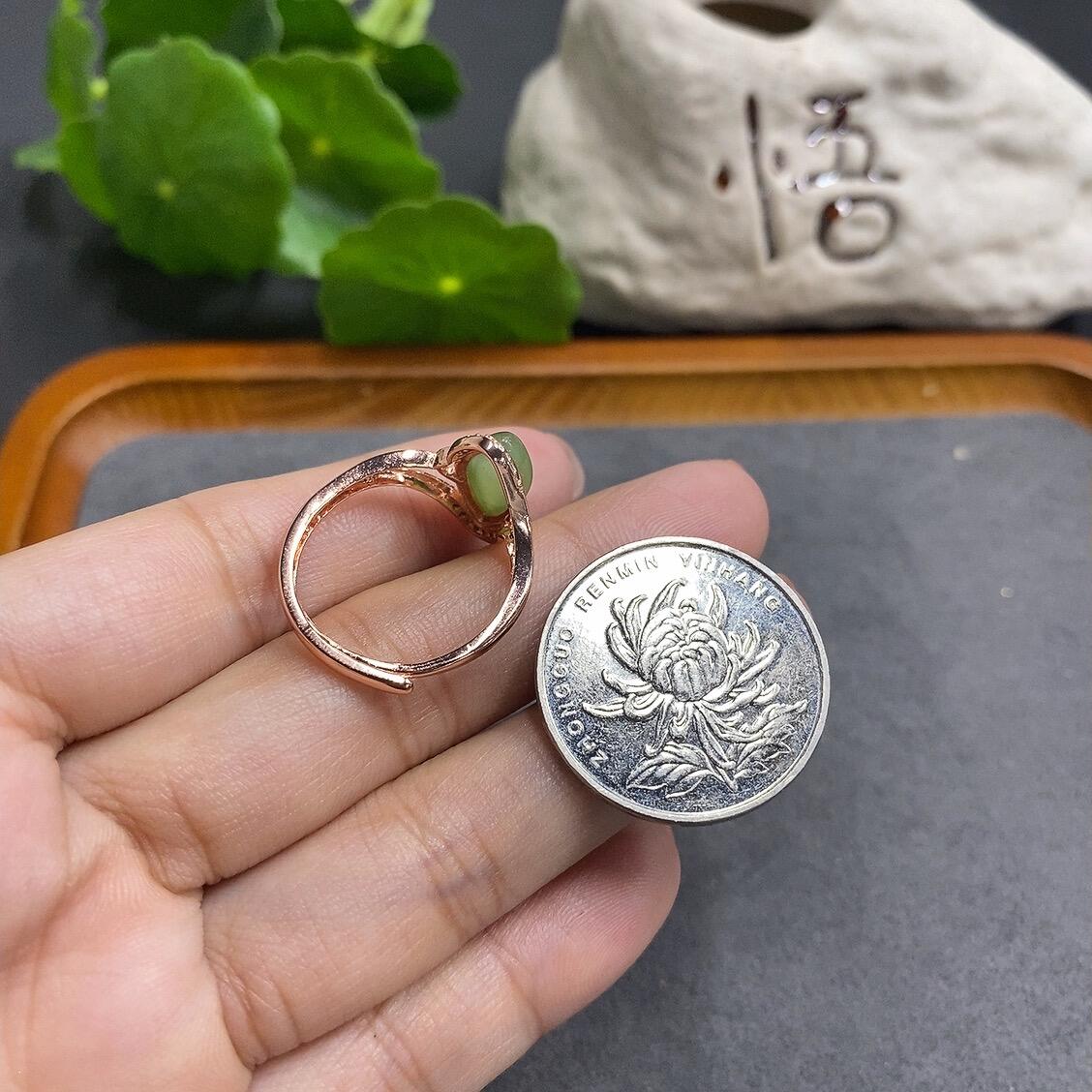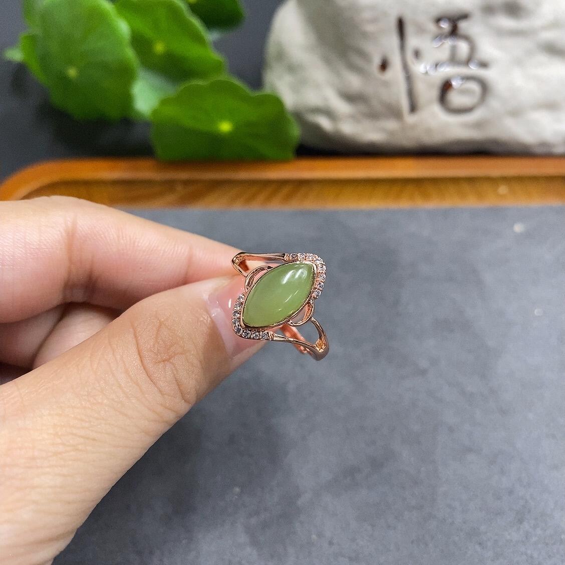 Hetian Jade Cabochon Ring (Adjustable, Total Weight 1.8g, With Veins/Cracks)