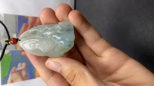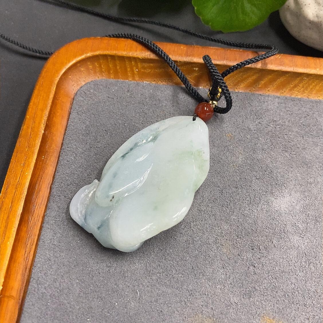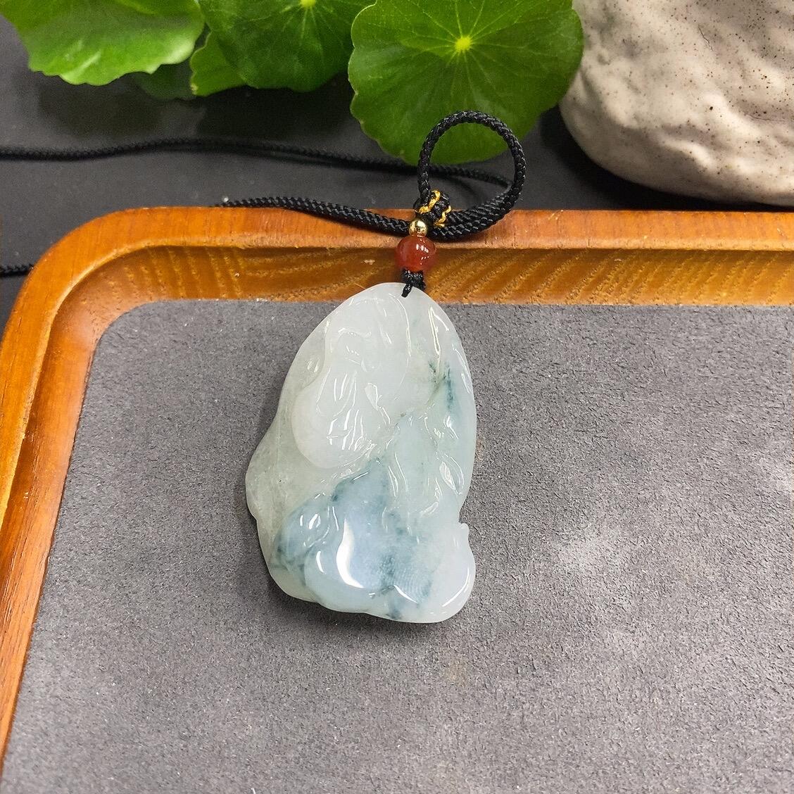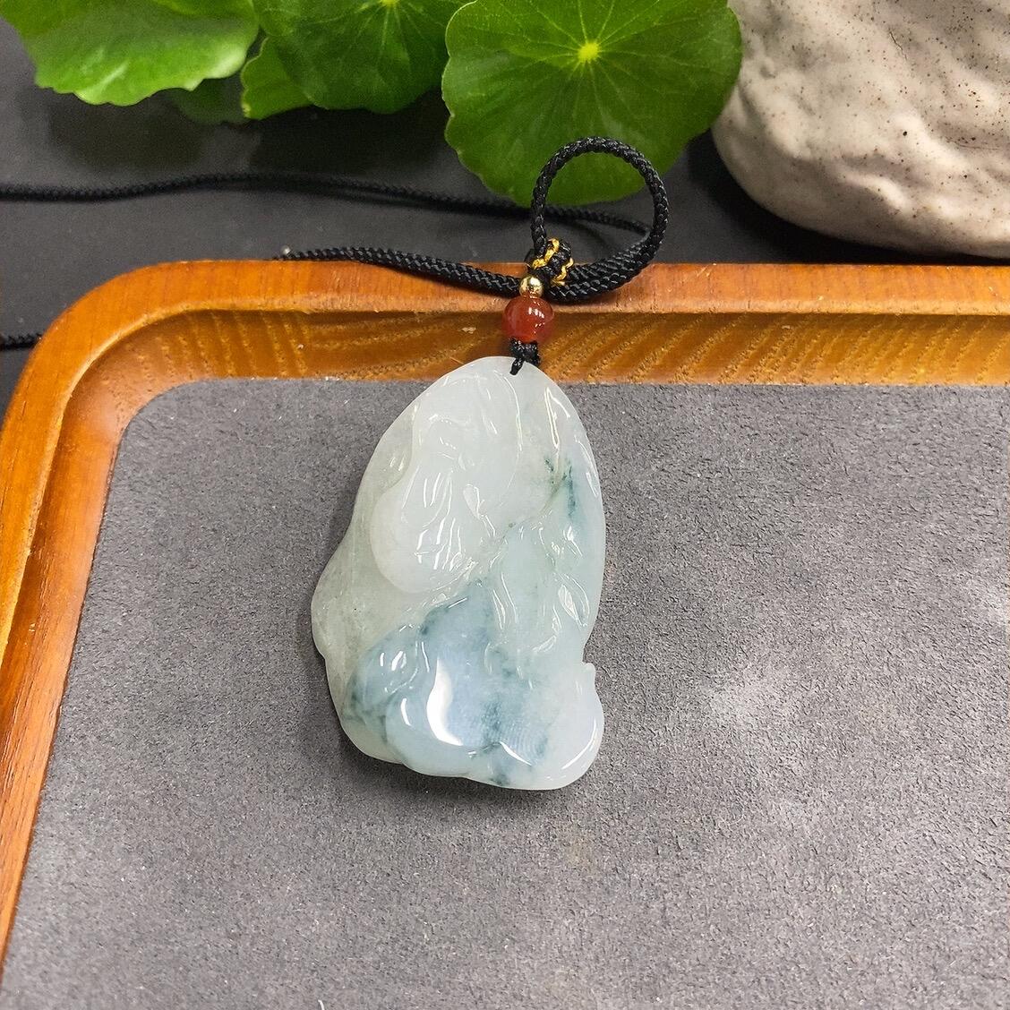 Jadeite Pendant with Floating Flowers and Natural Veins
