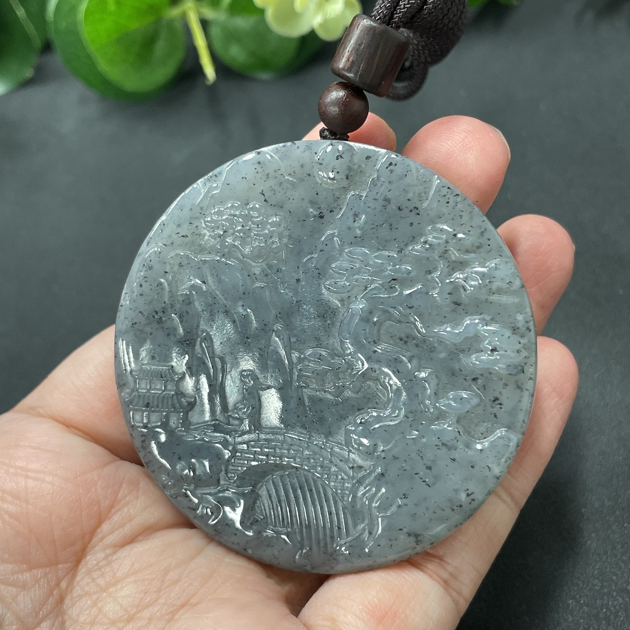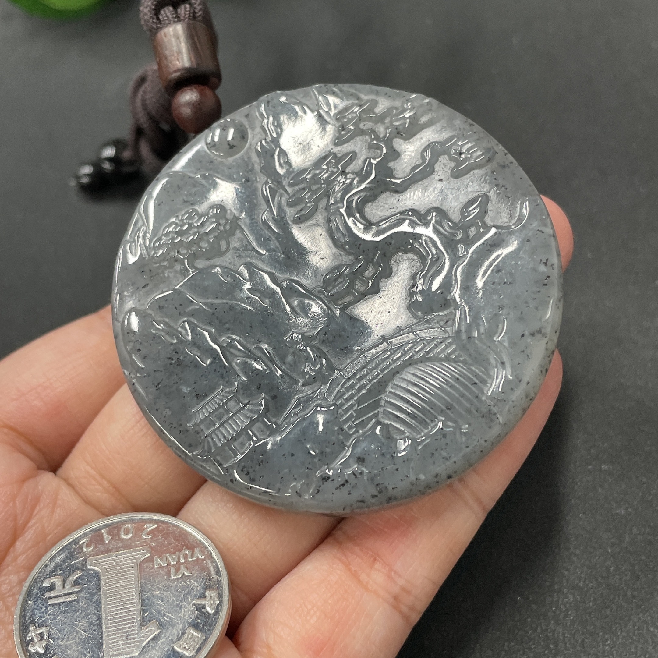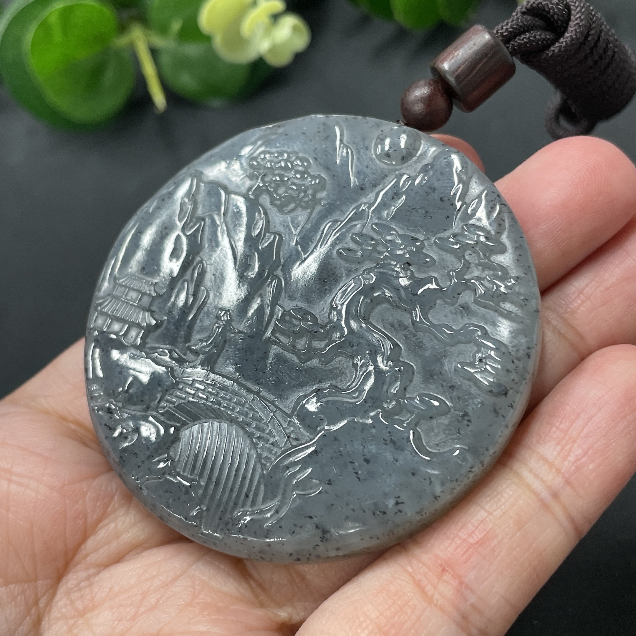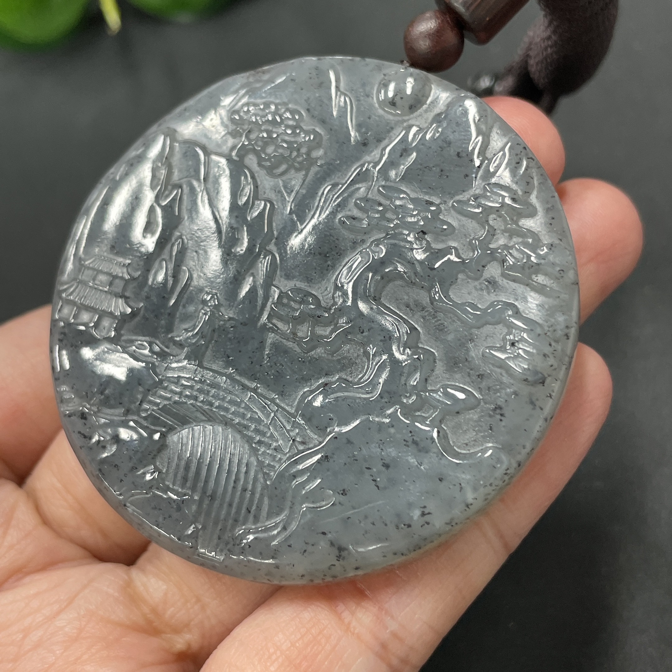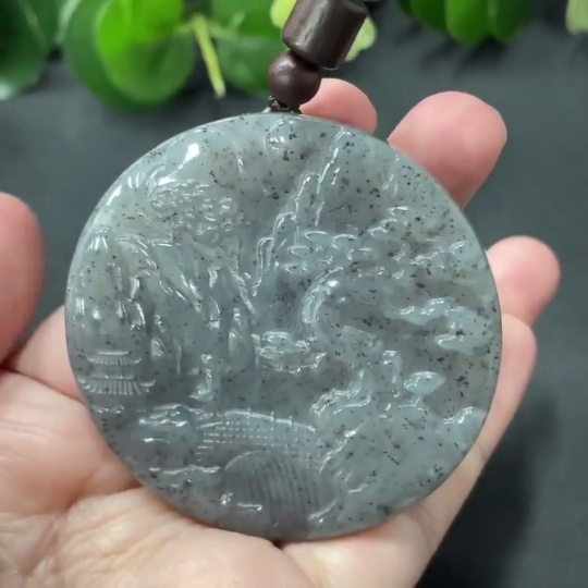 Hetian Jade Landscape Pendant, Total Weight 51.4g (including rope weight)