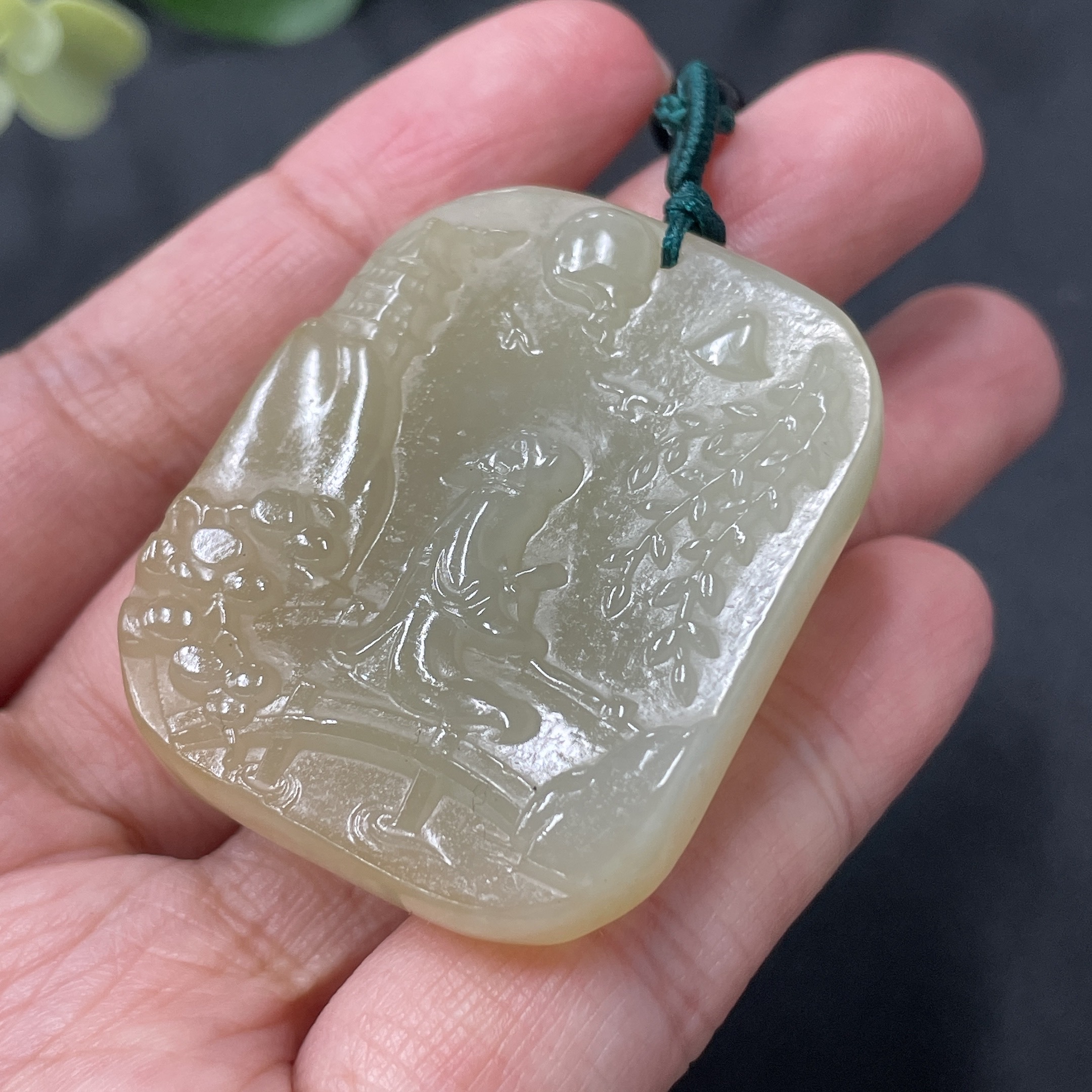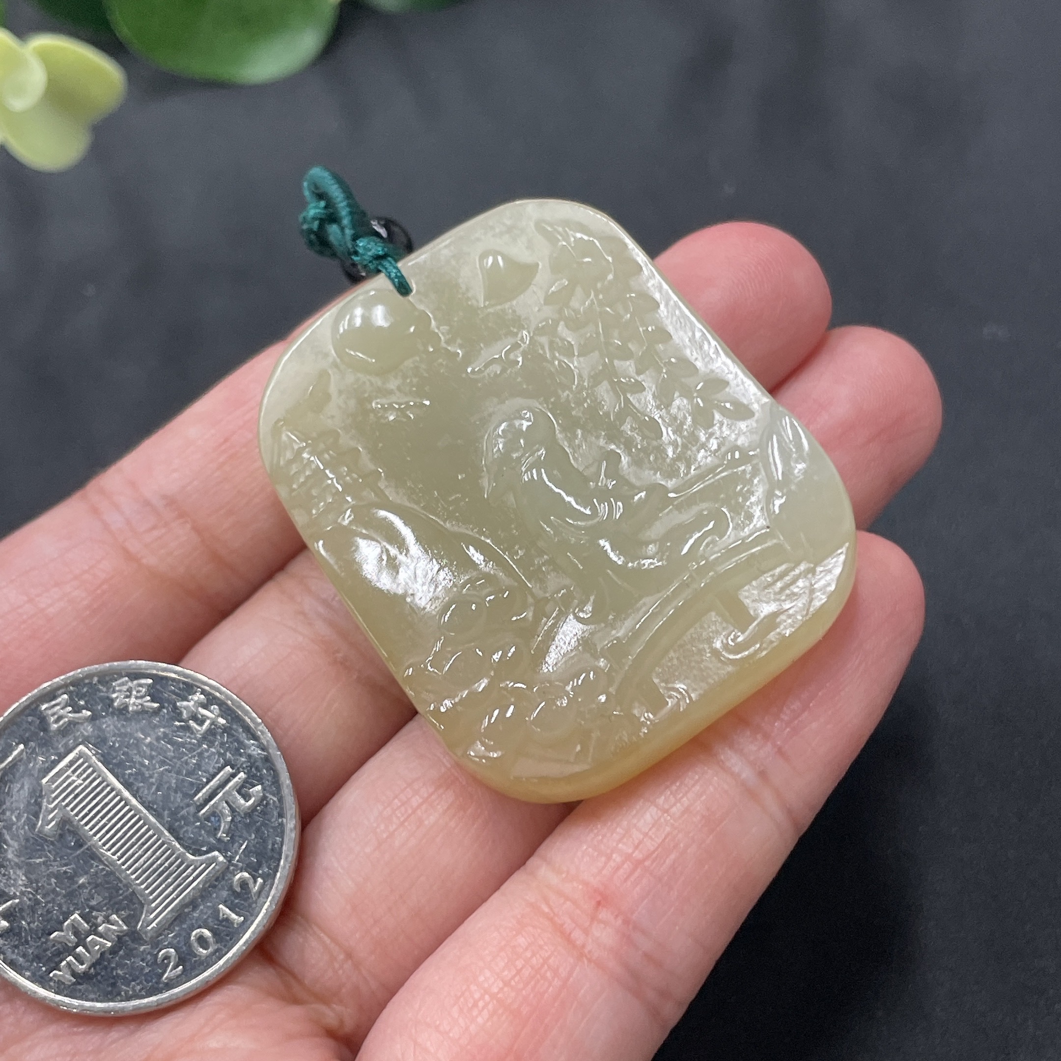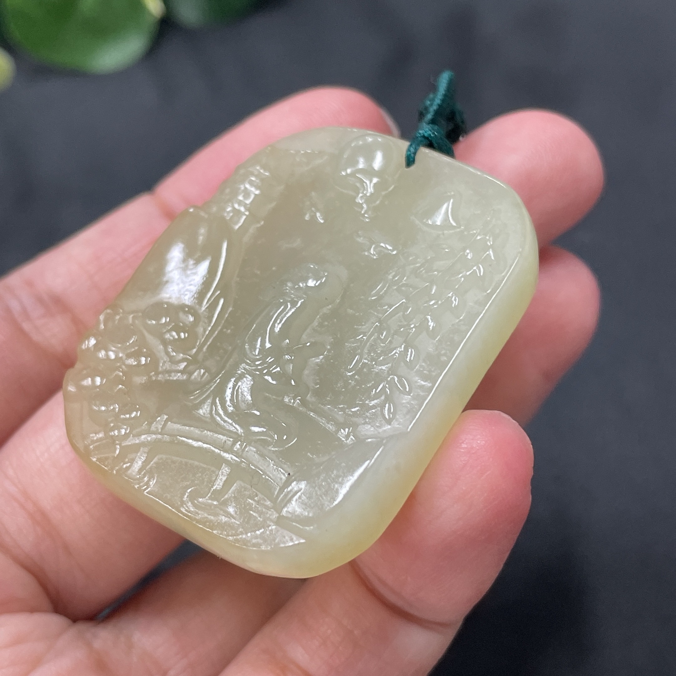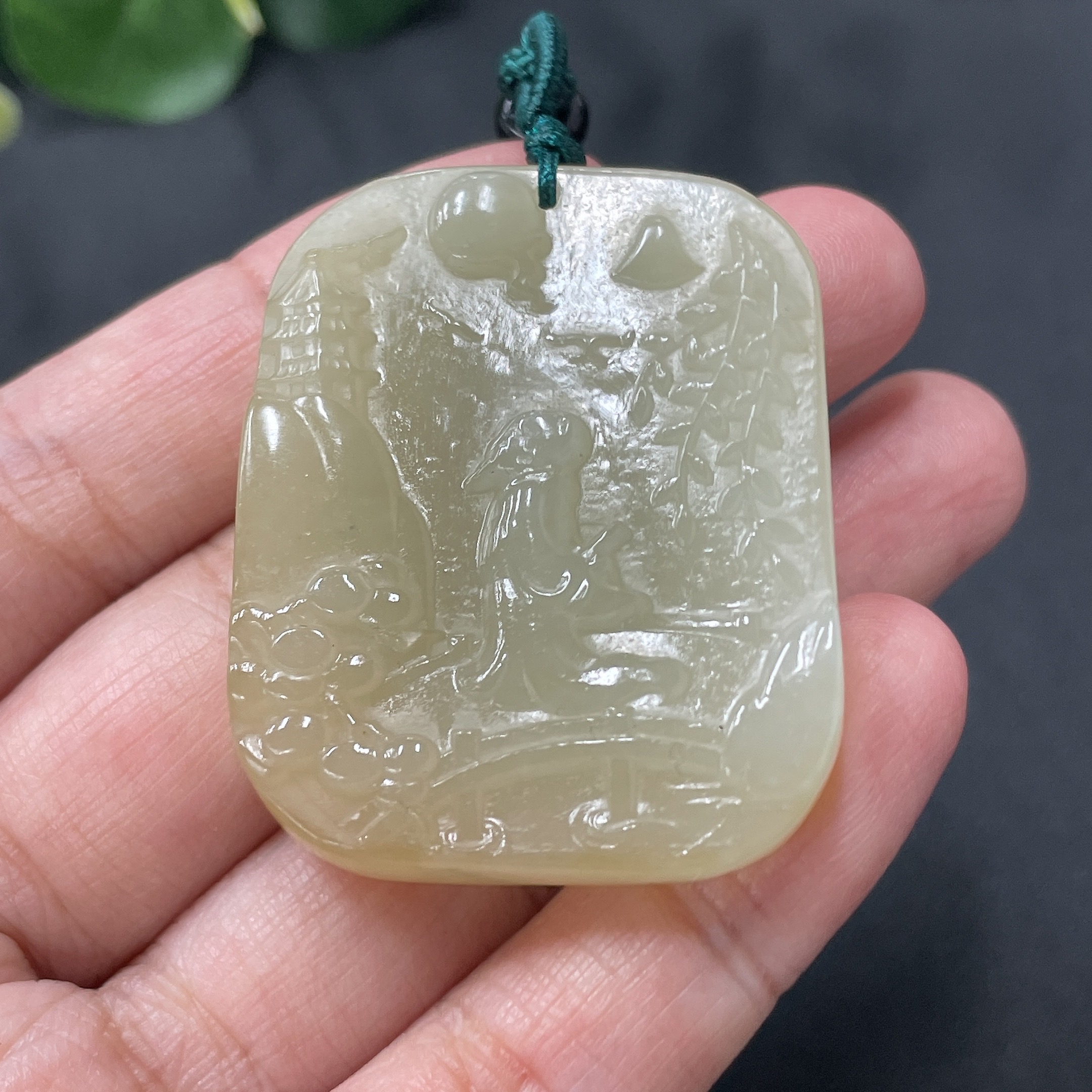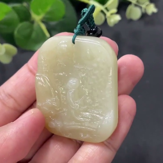 Hetian Jade Landscape Pendant, Total Weight 26.4g (including string weight)