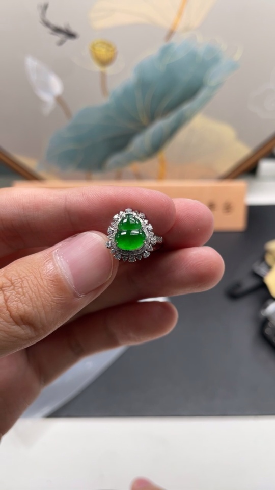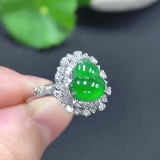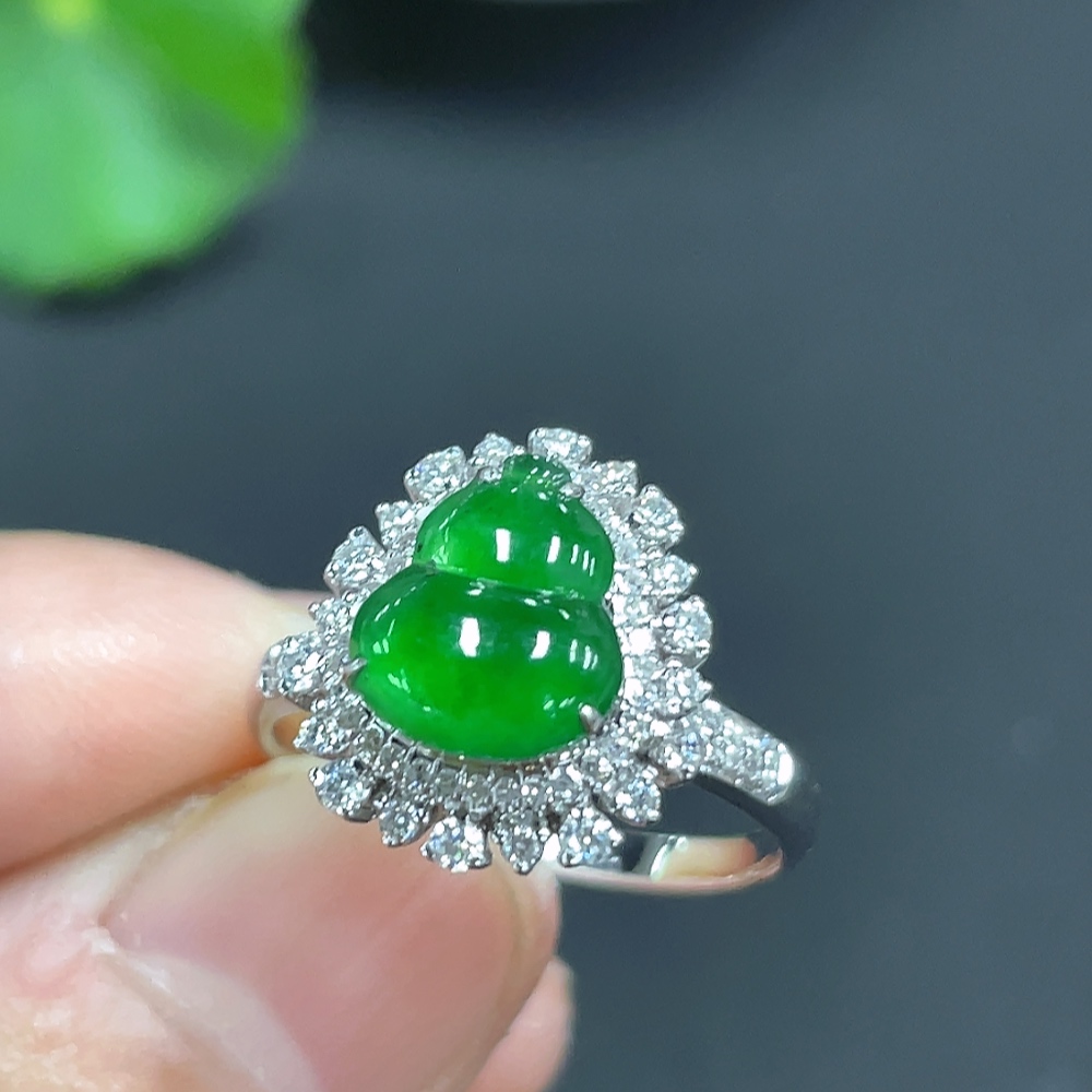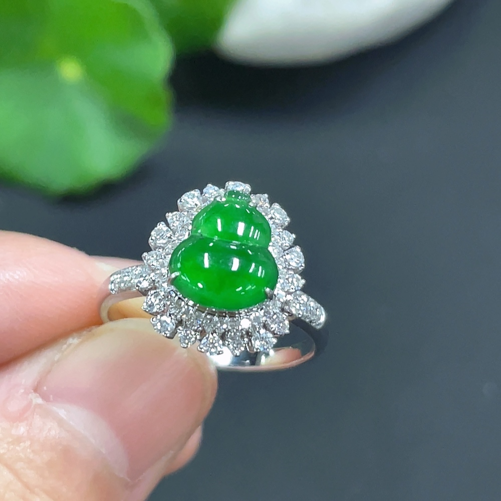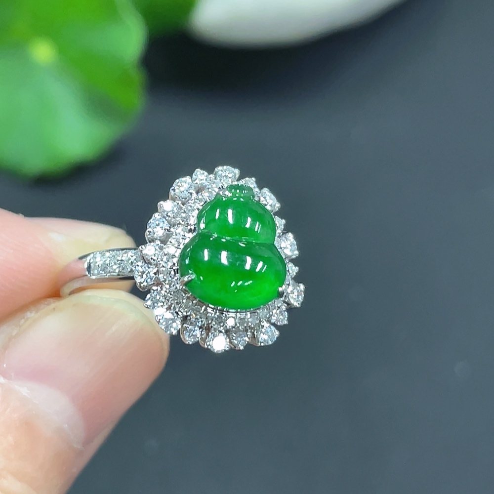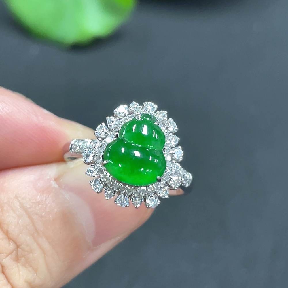 Jadeite Gourd Inlaid Ring 18k Gold Size 14 Total Weight 3.2g