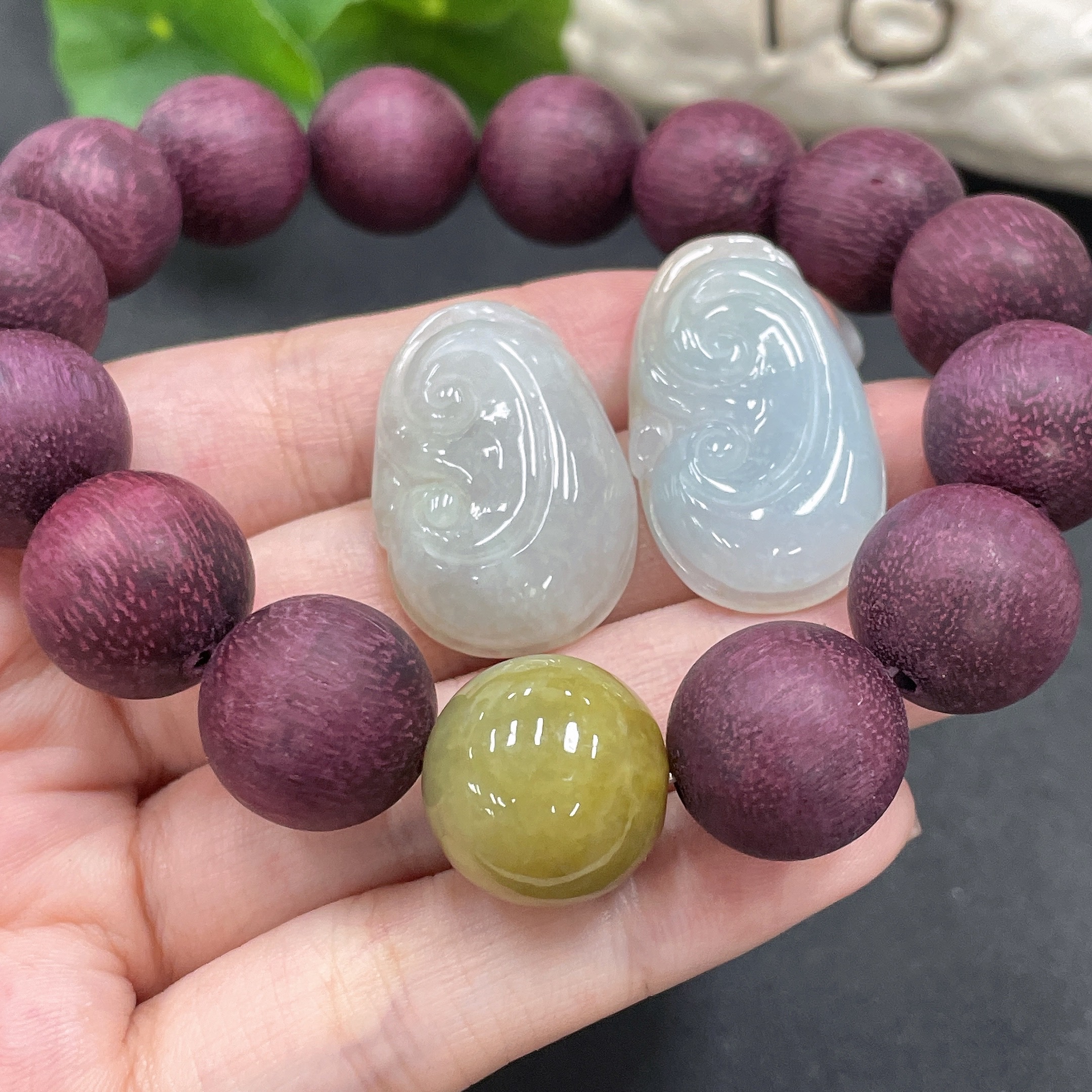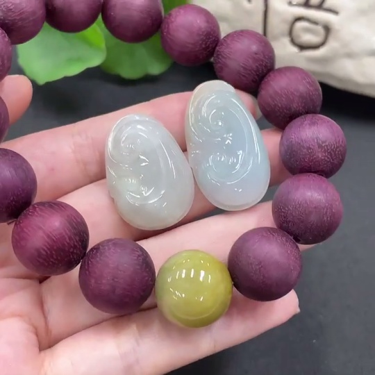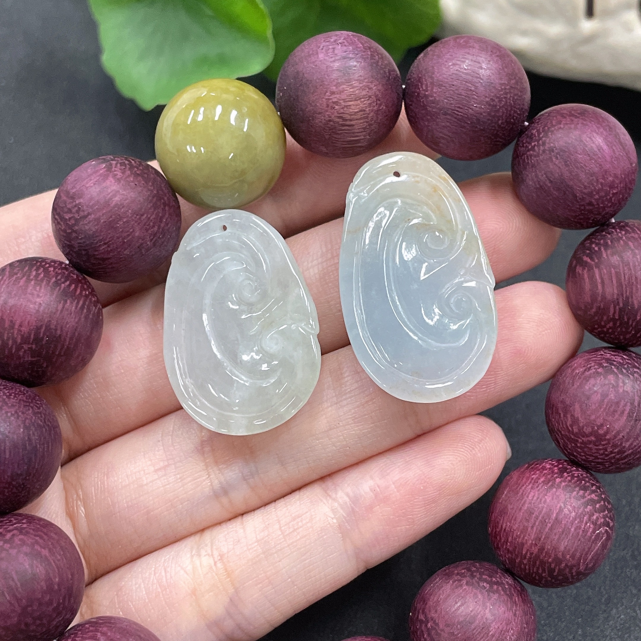 Jadeite Pendant + Bead Bracelet Set, Approx. 16mm