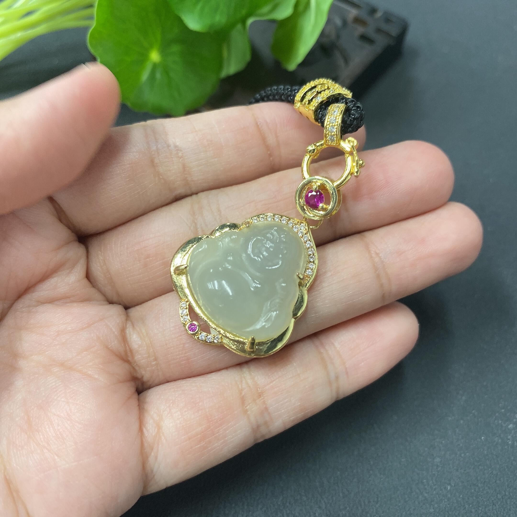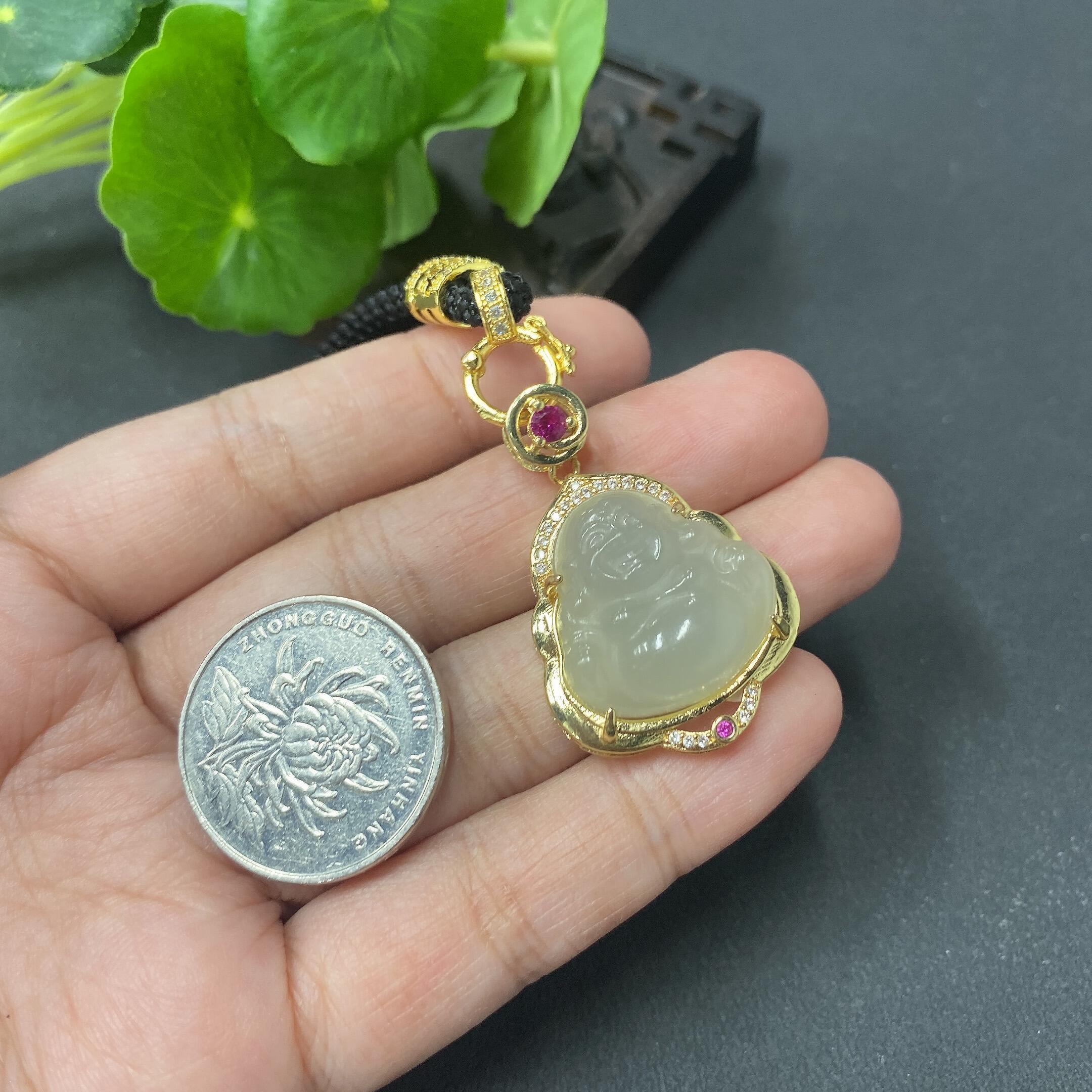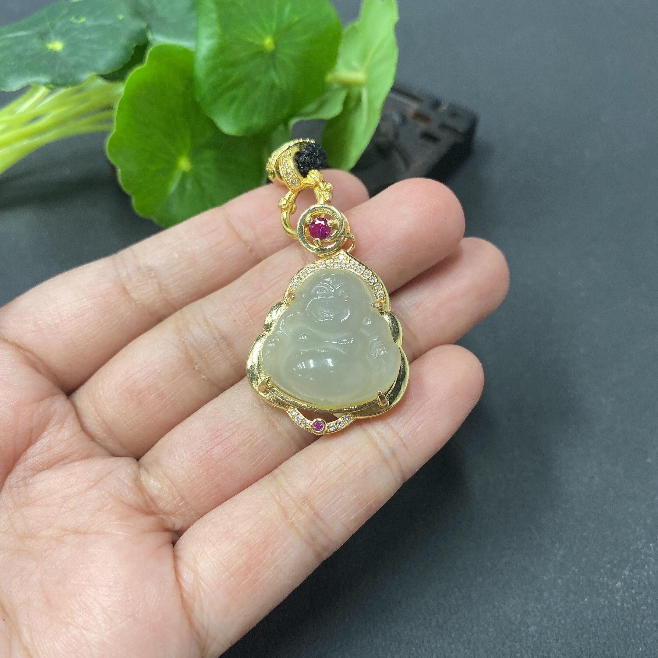 Hetian Jade Buddha Pendant, Total Weight 8.3g, with Cracks, Inlay Material Unknown
