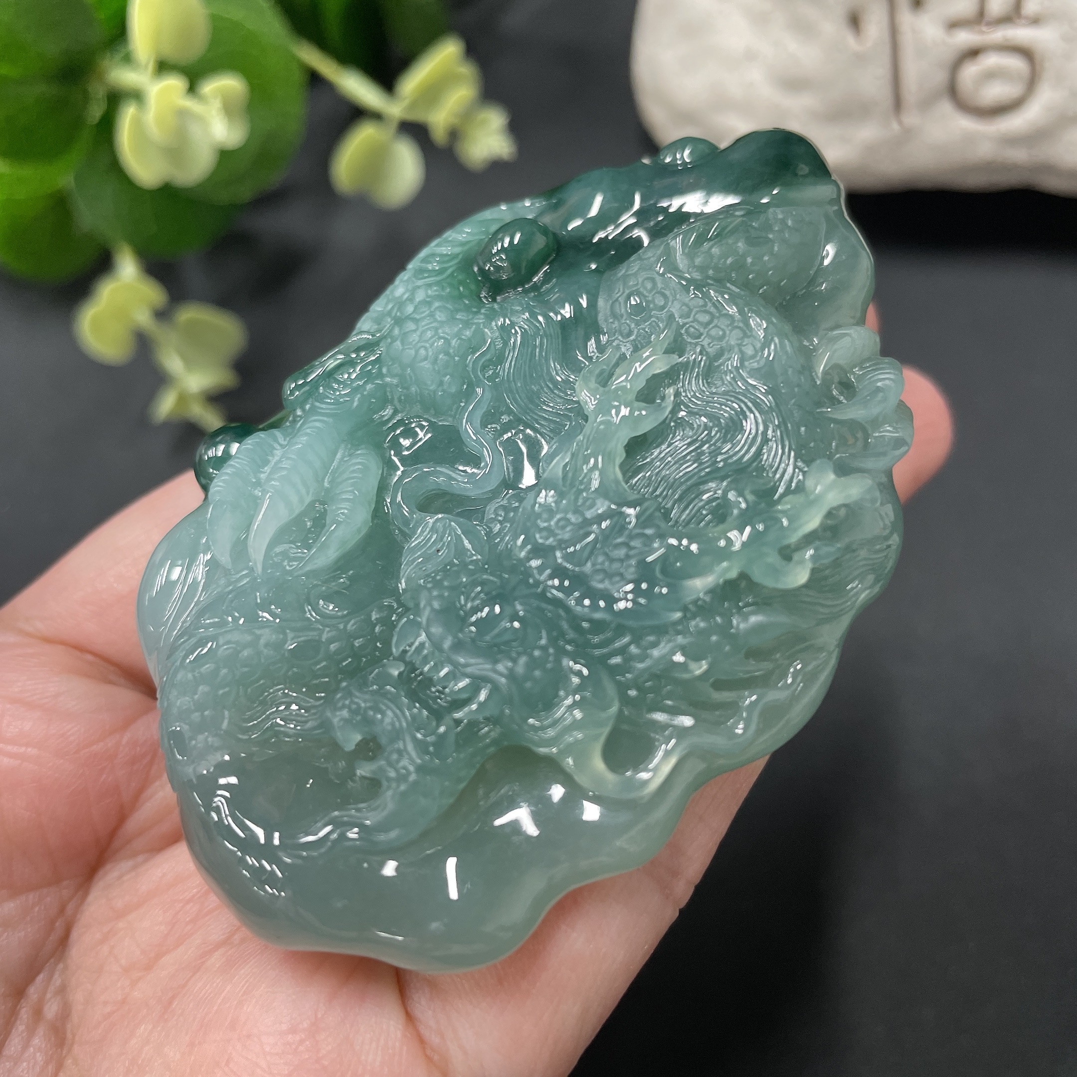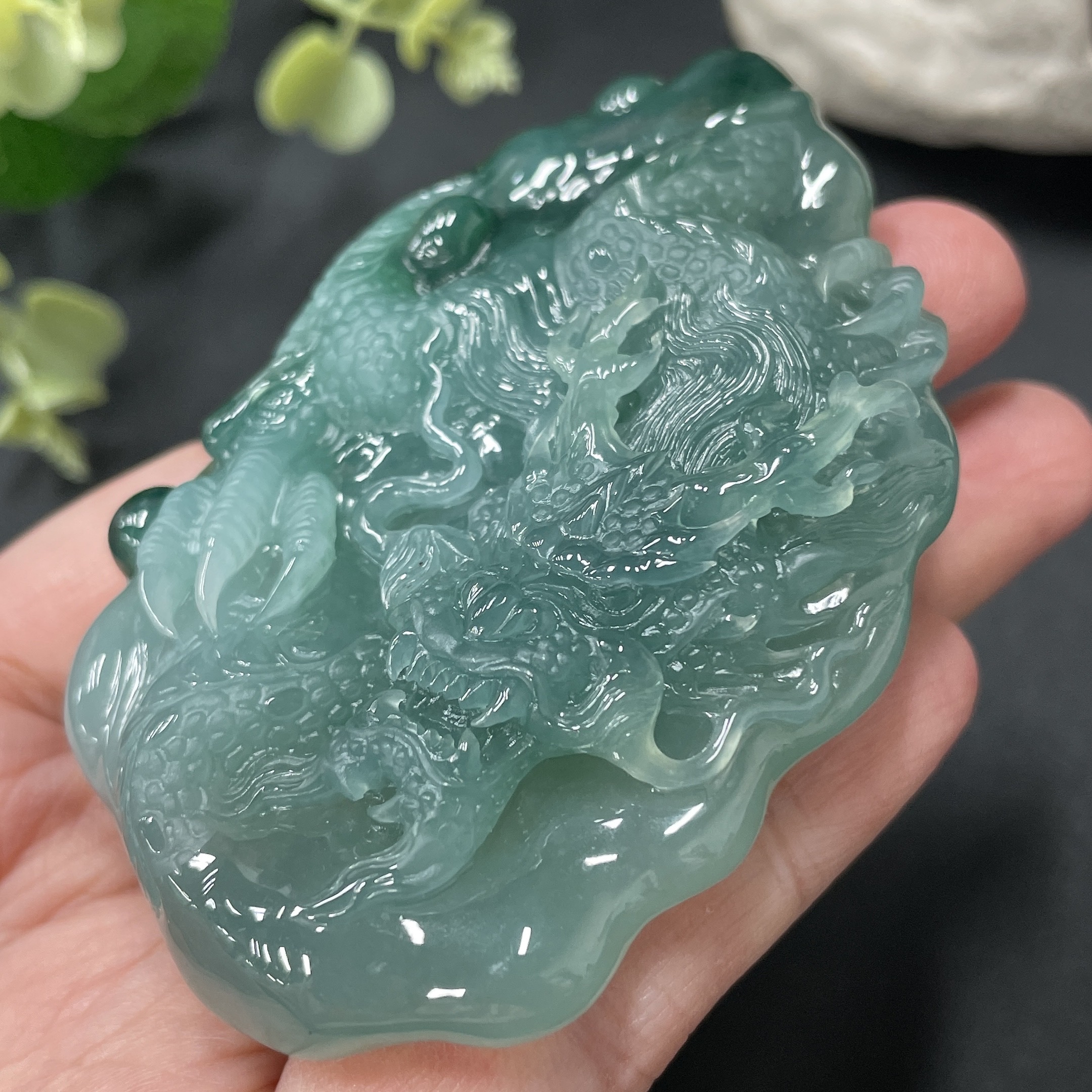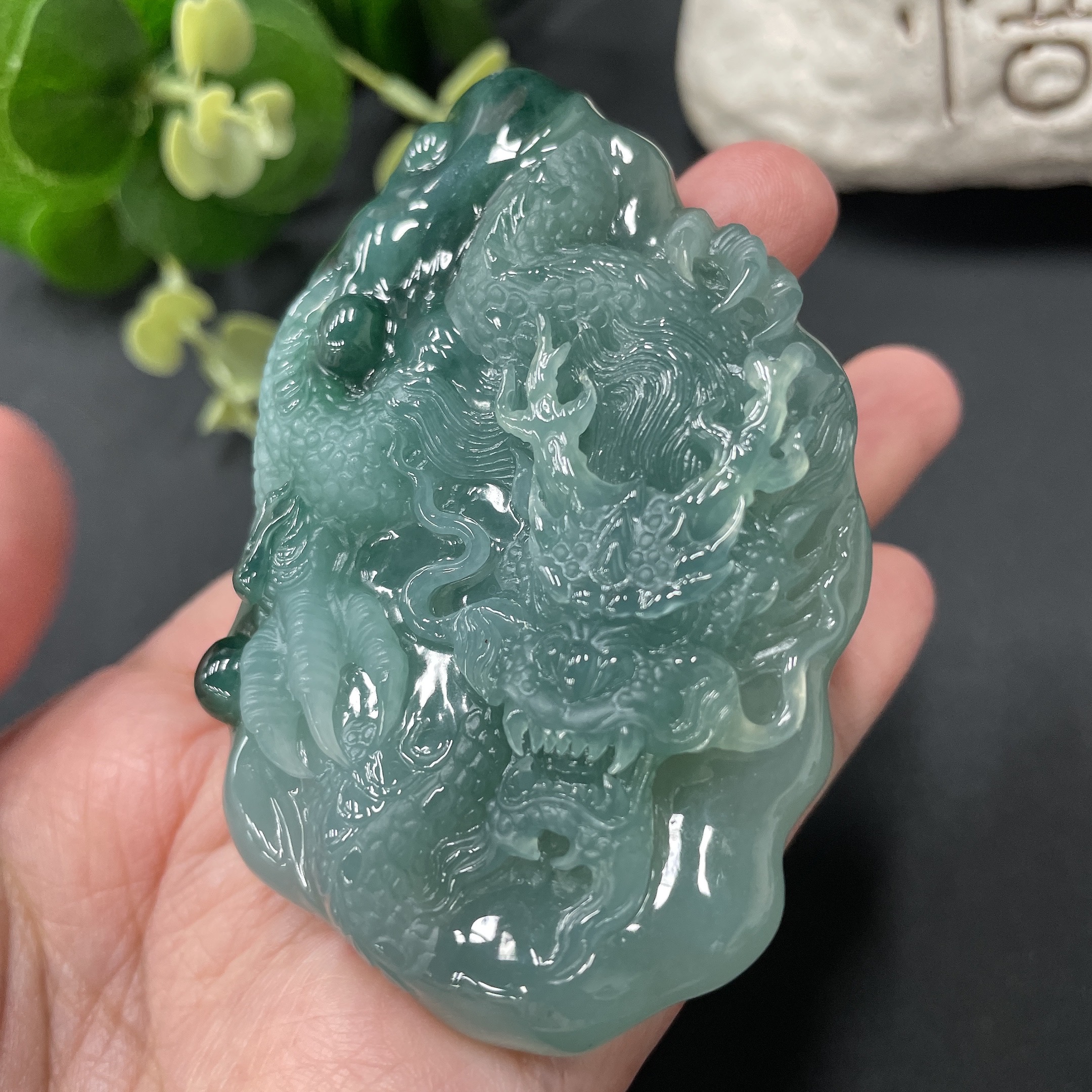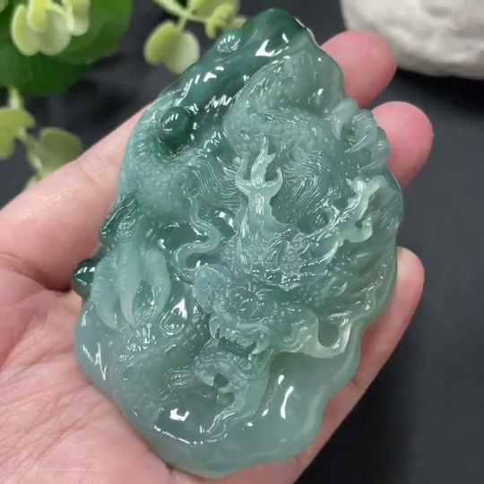 Jadeite Dragon-Guarding Guanyin Pendant