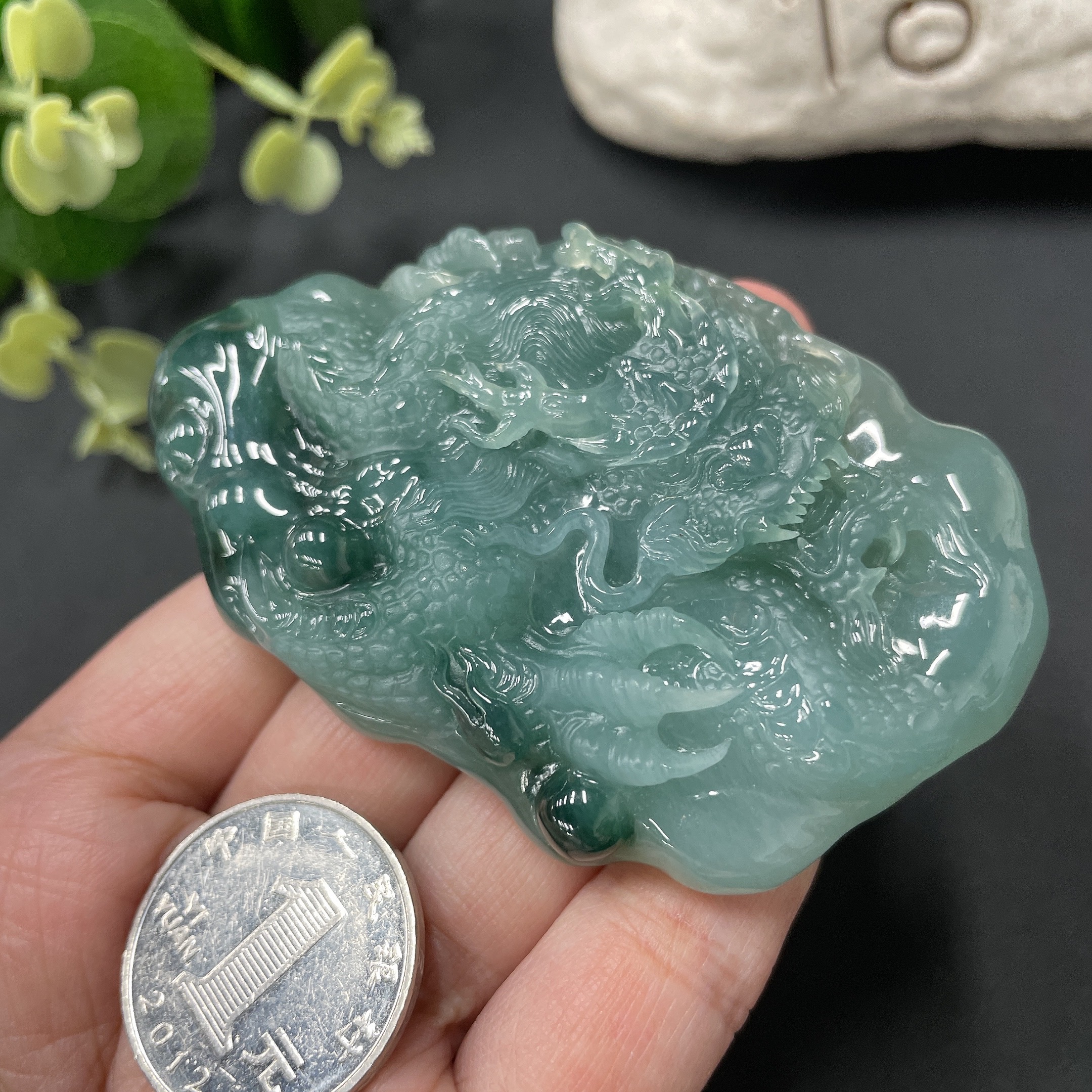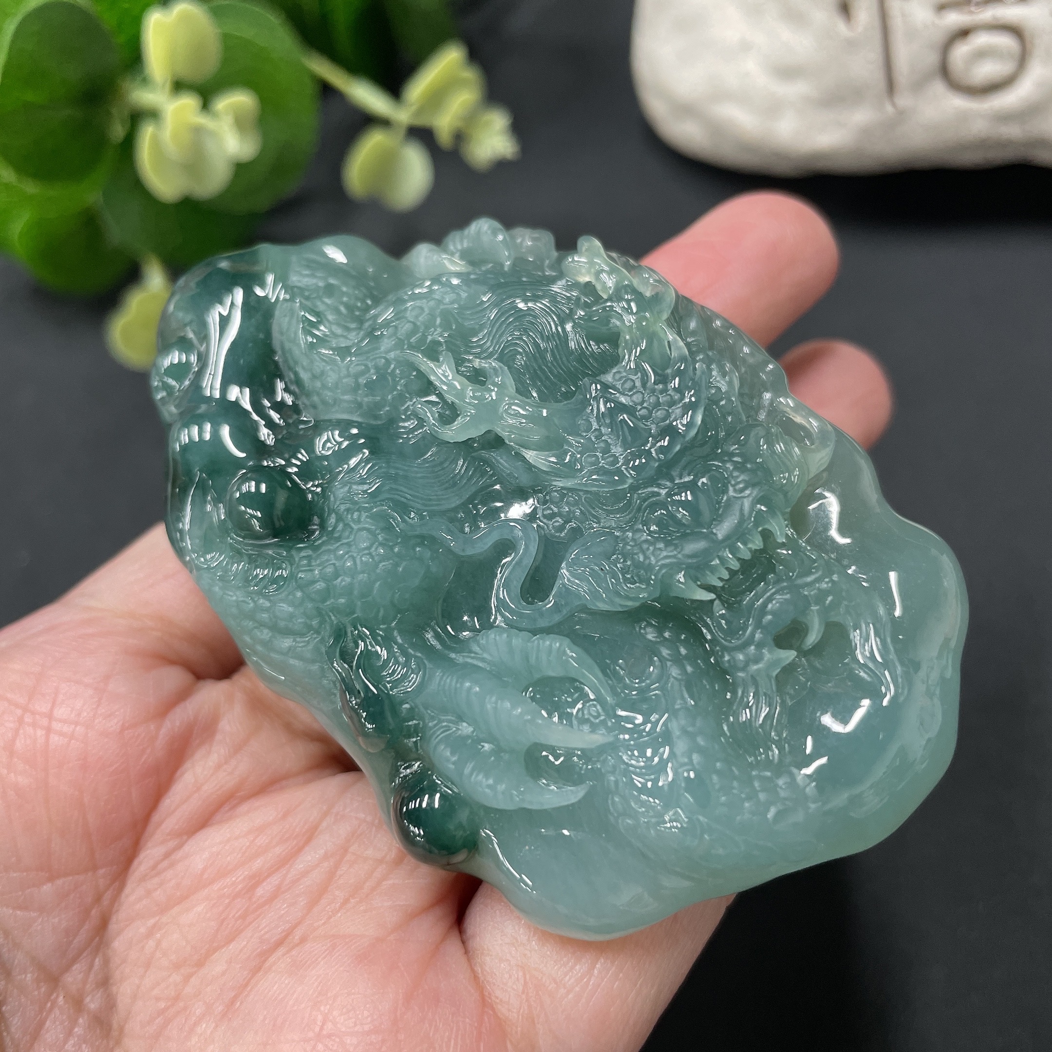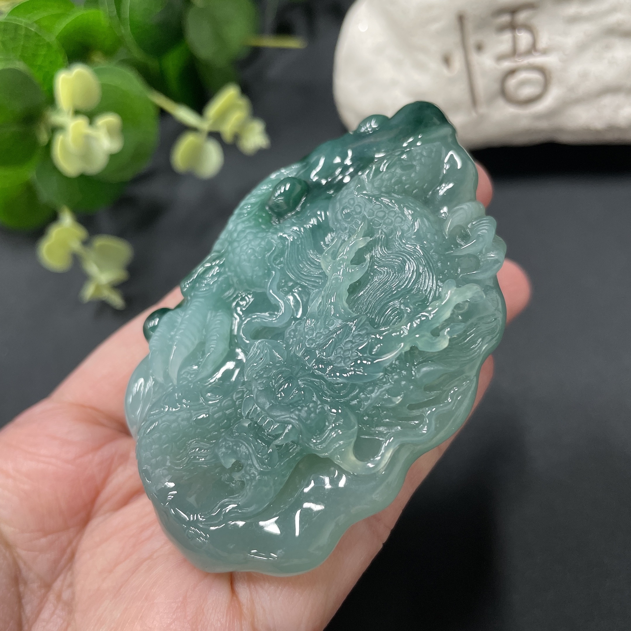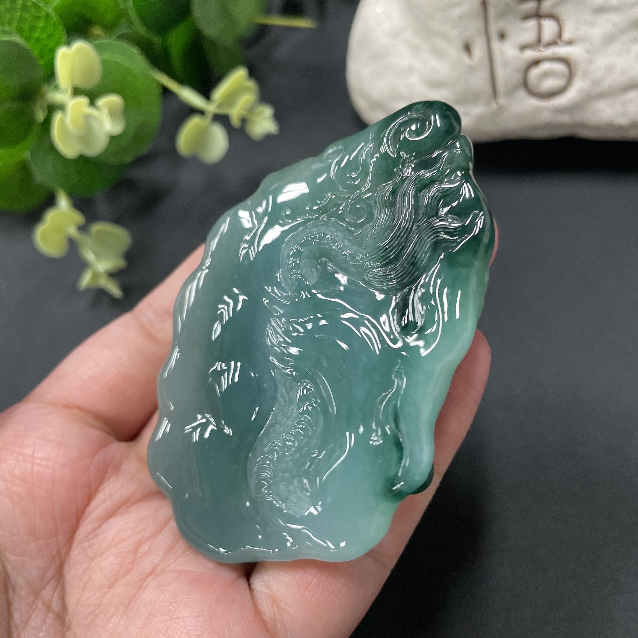 Jadeite Dragon-Guarding Guanyin Pendant