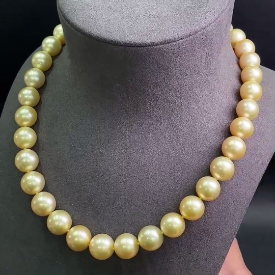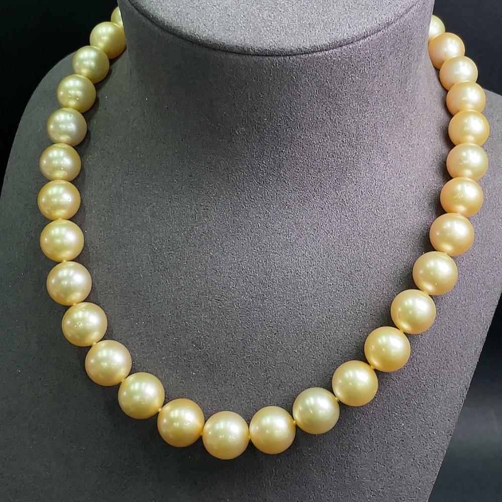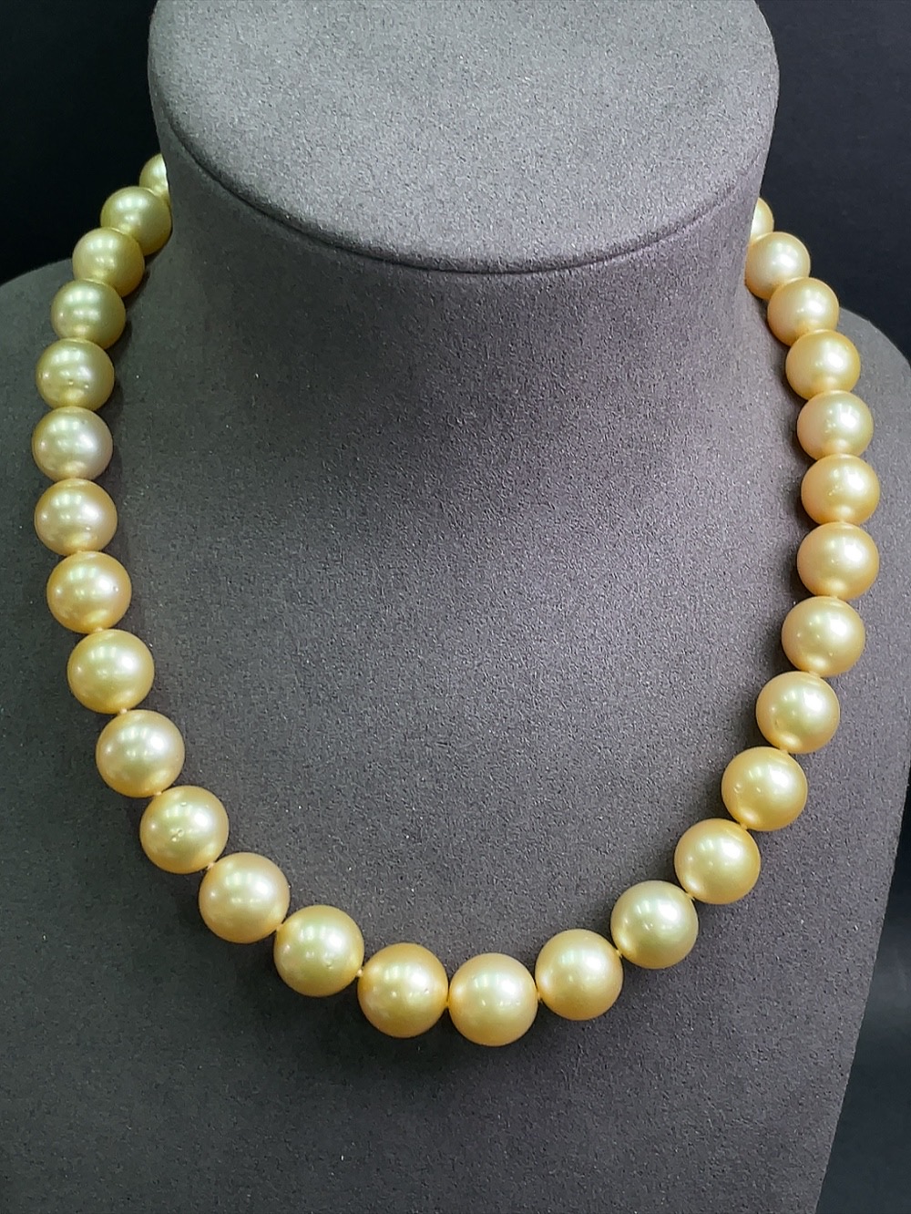 18k Gold Saltwater Pearl Strand Necklace, Approximately 105.81g, 12.4mm Beads