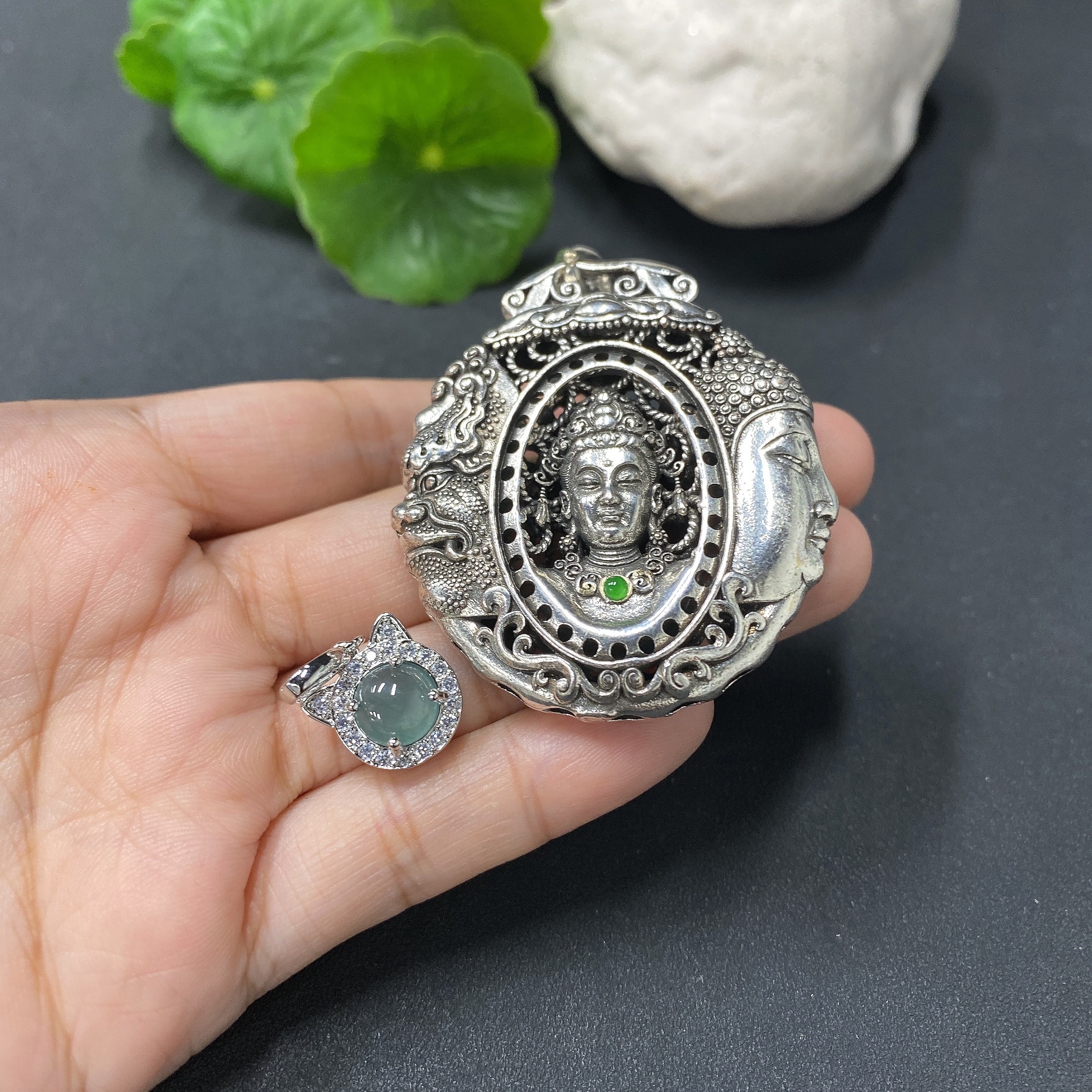Jadeite Cabochon Pendant Inlay (Non-Gold Setting)