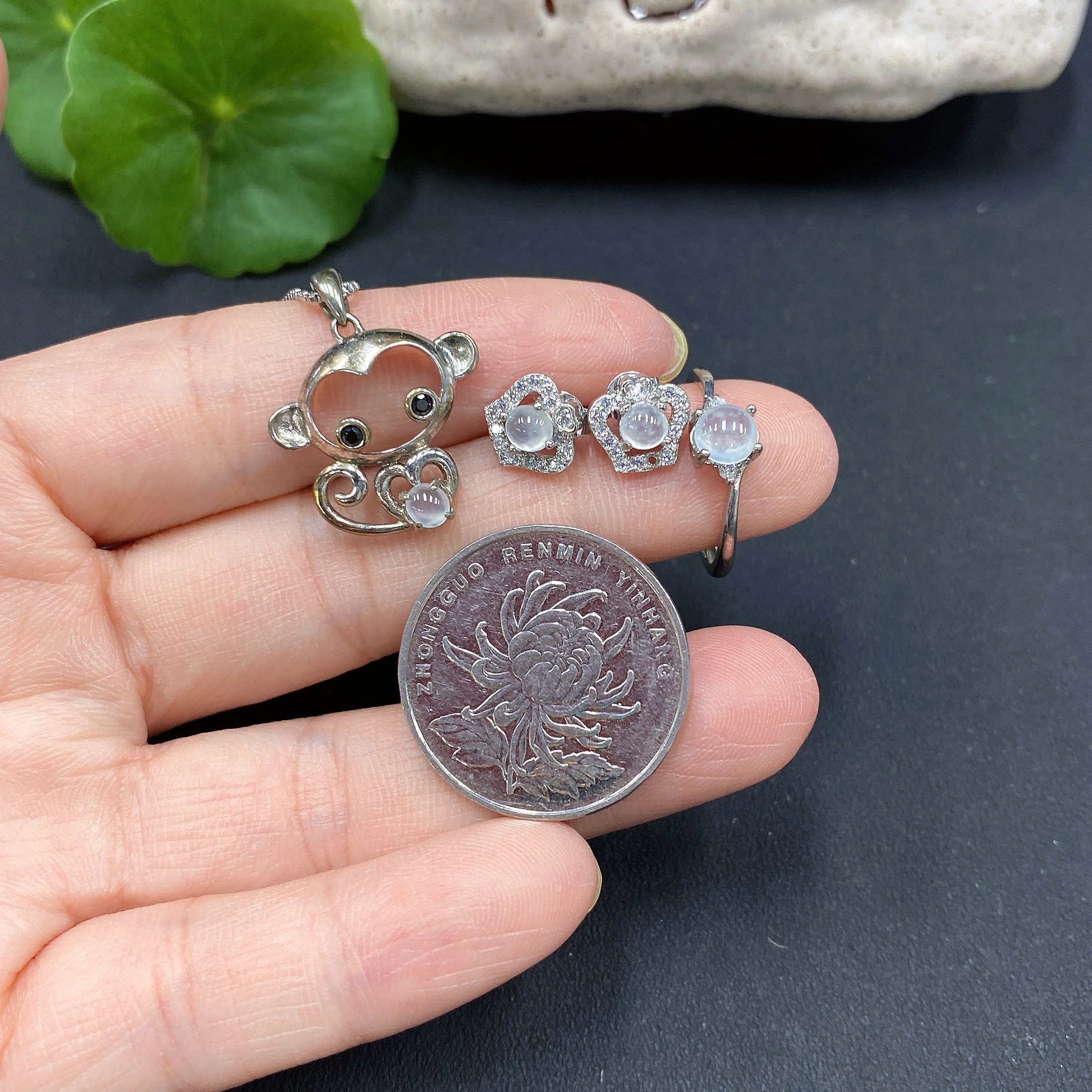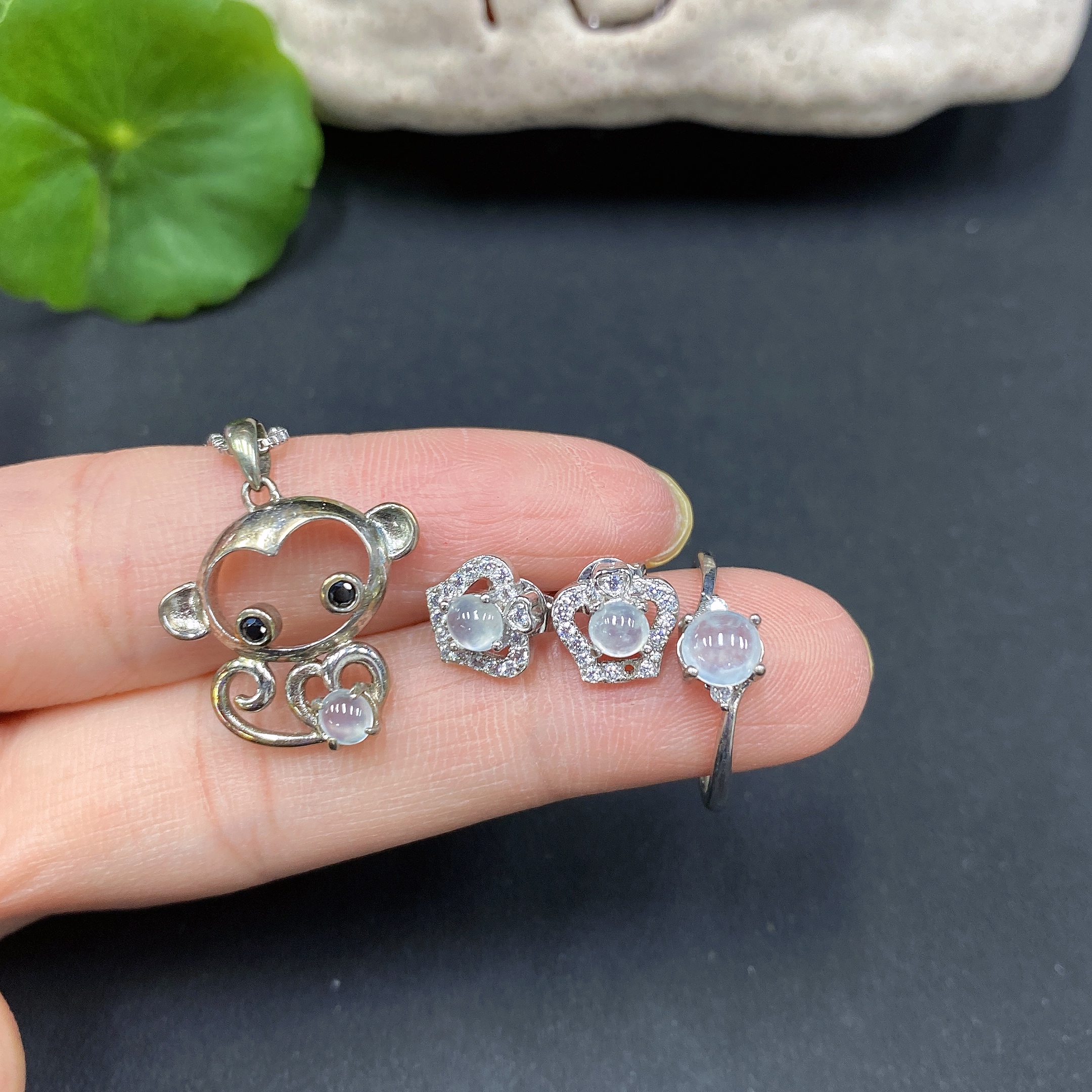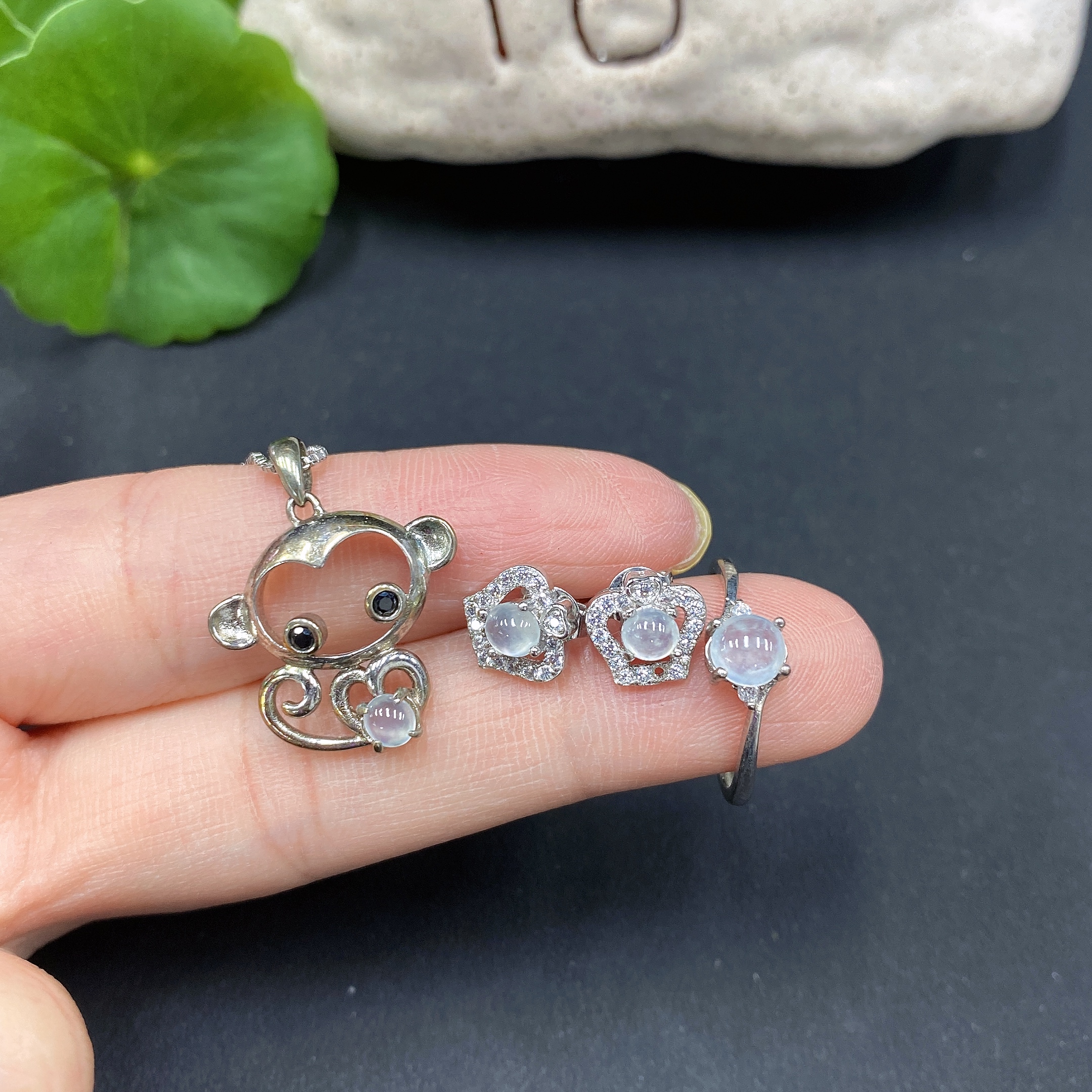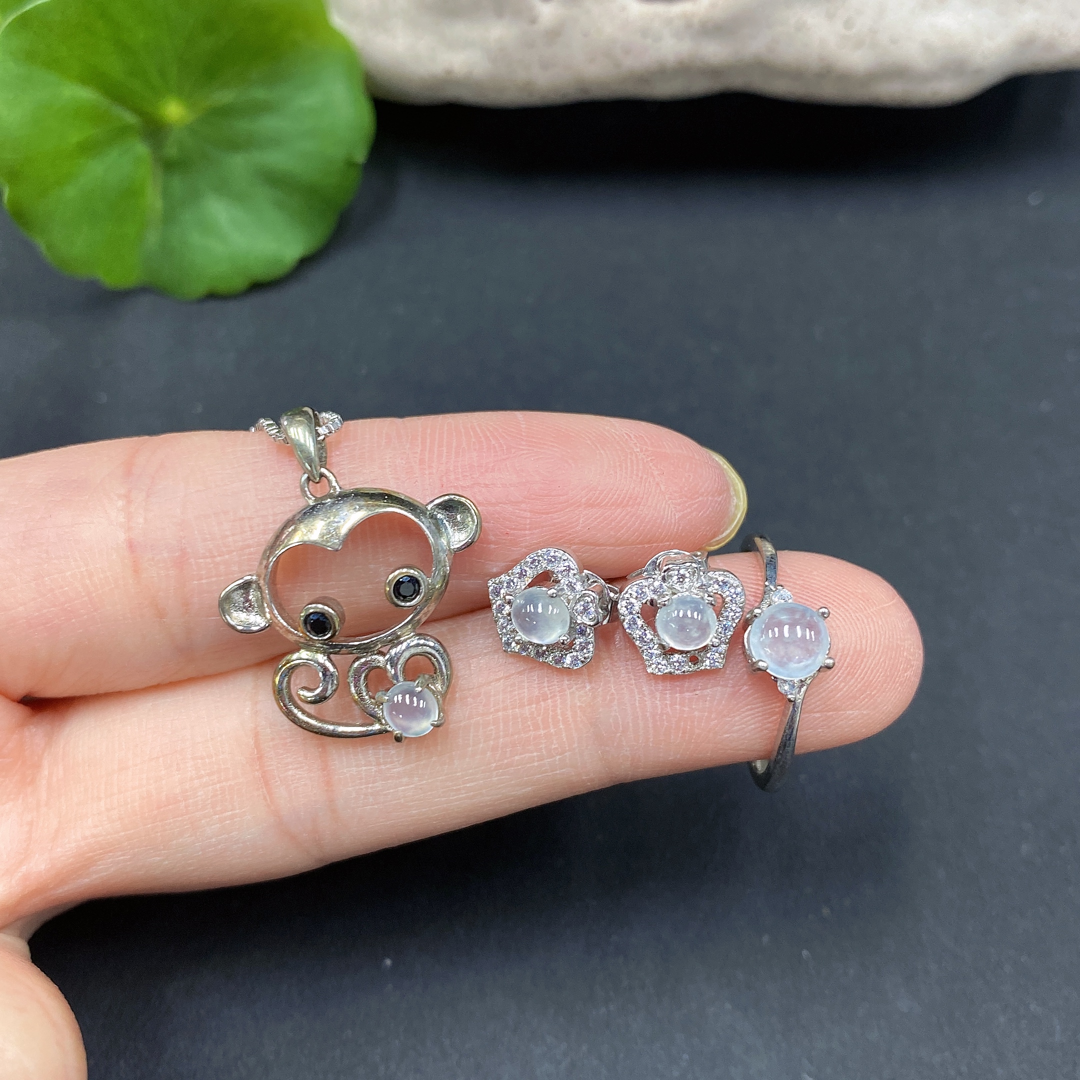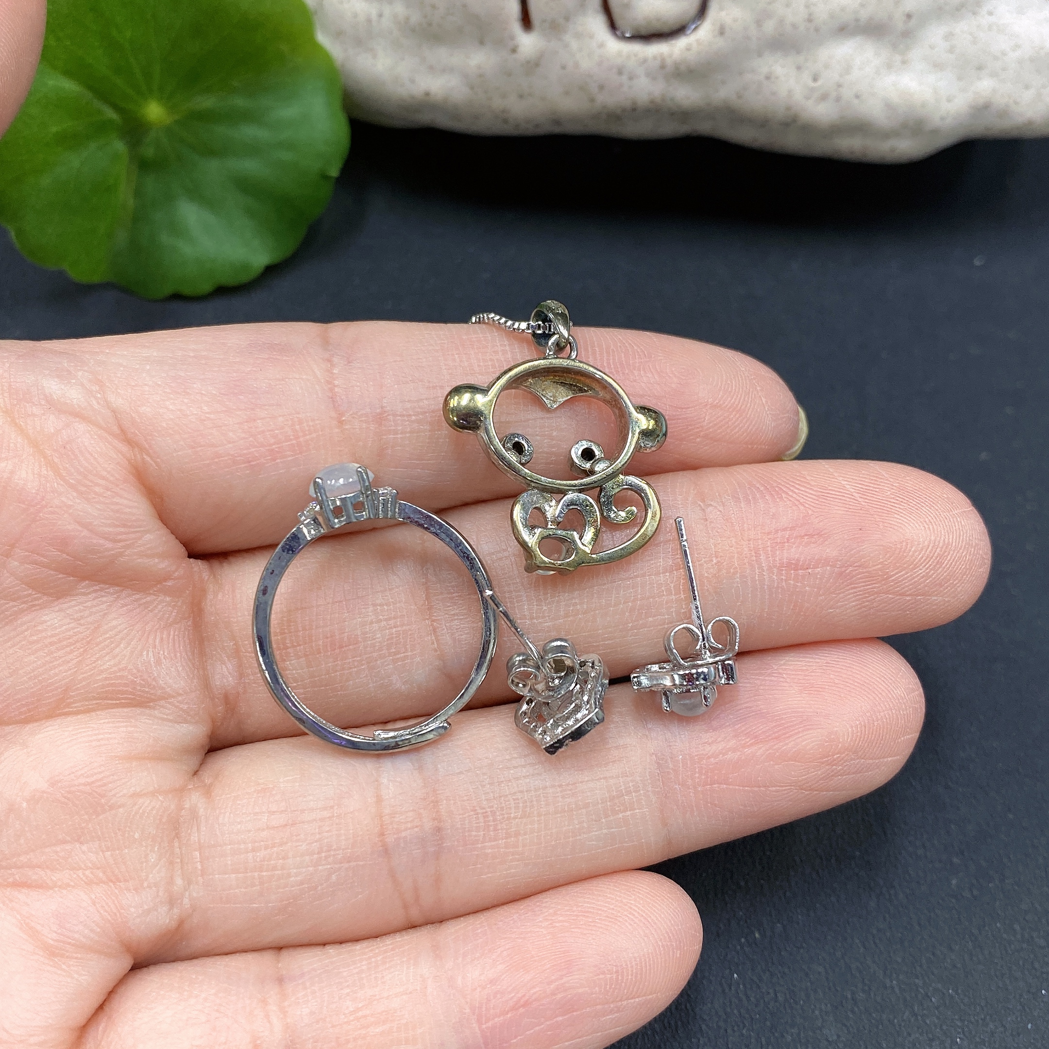 Jadeite Pendant + Ring Non-Gold Setting Adjustable Size