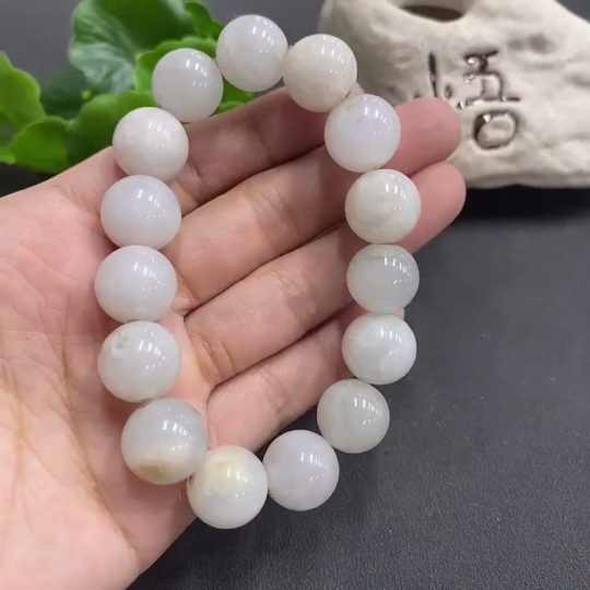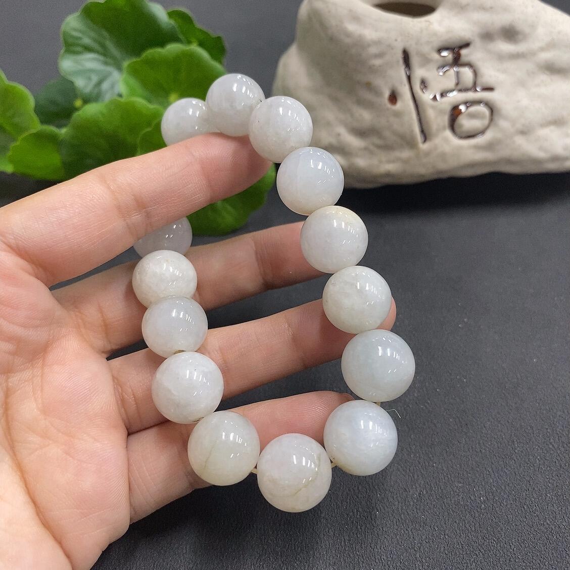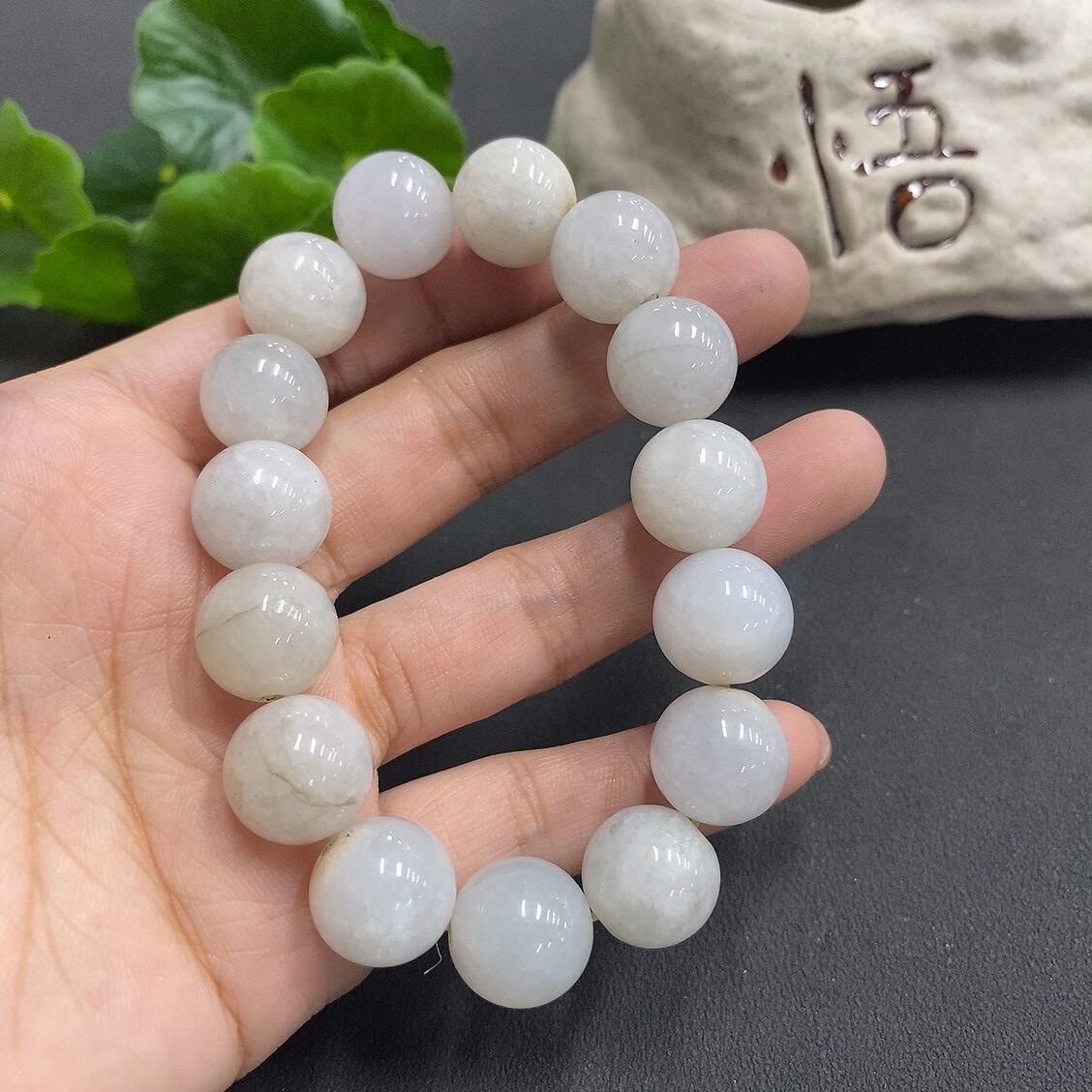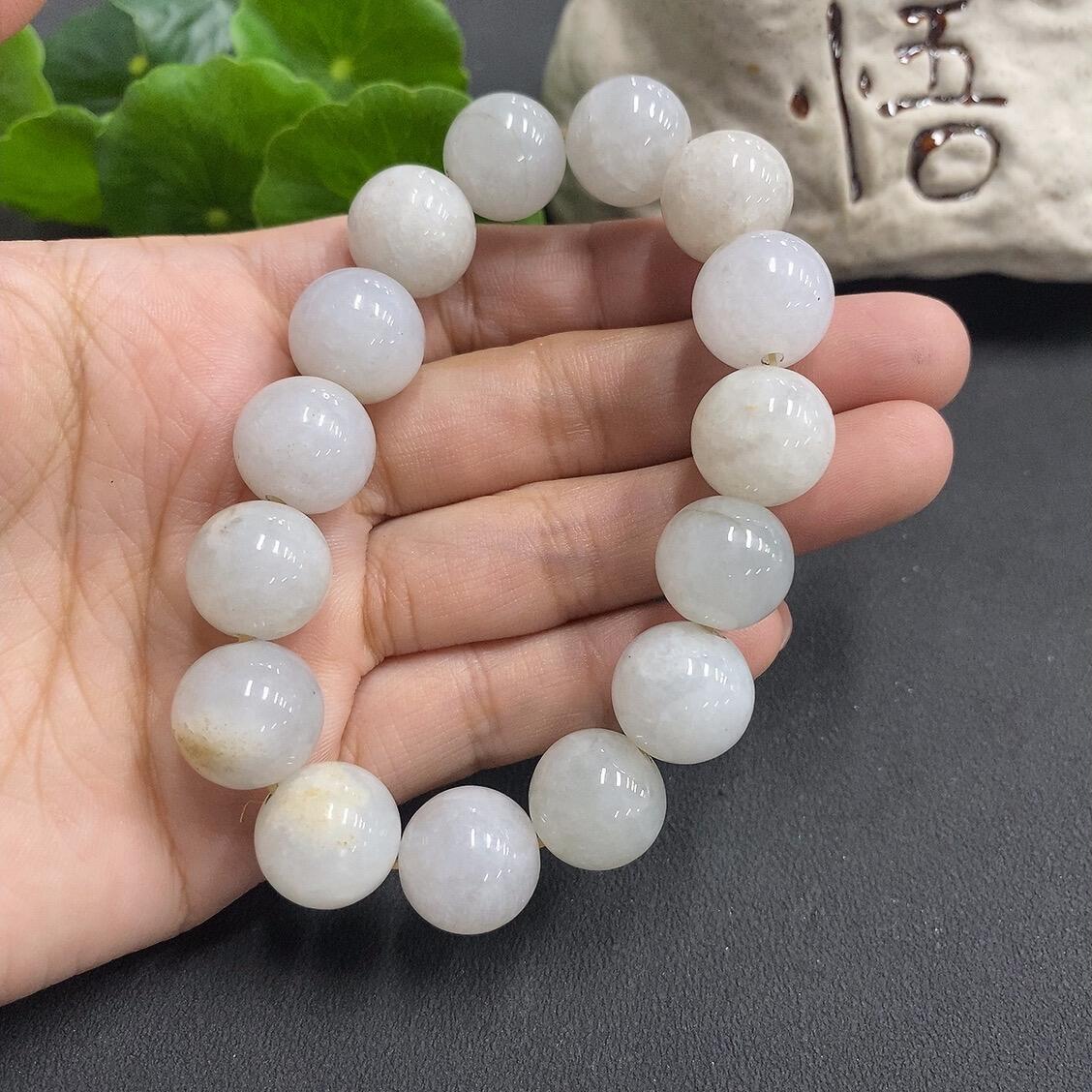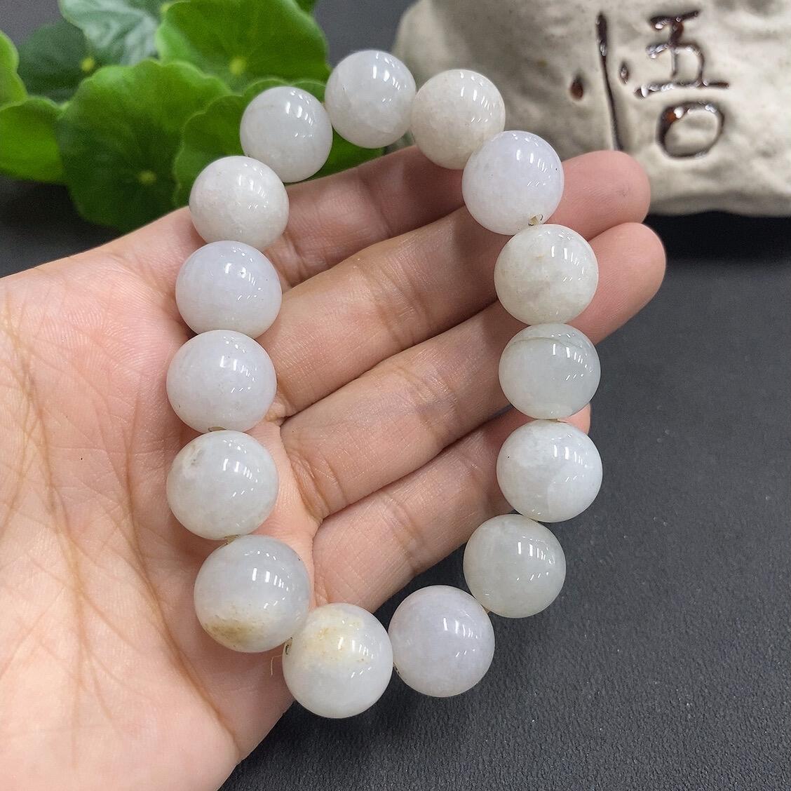 JadeiteBead Necklace with Minor Cracks on Individual Beads, Size 12.8