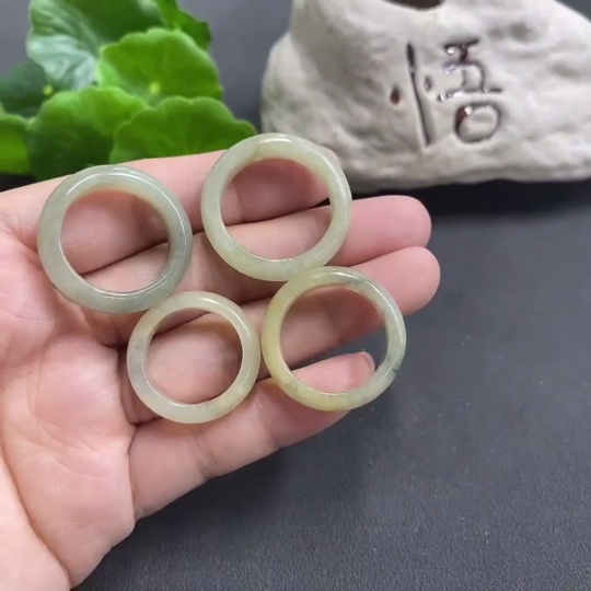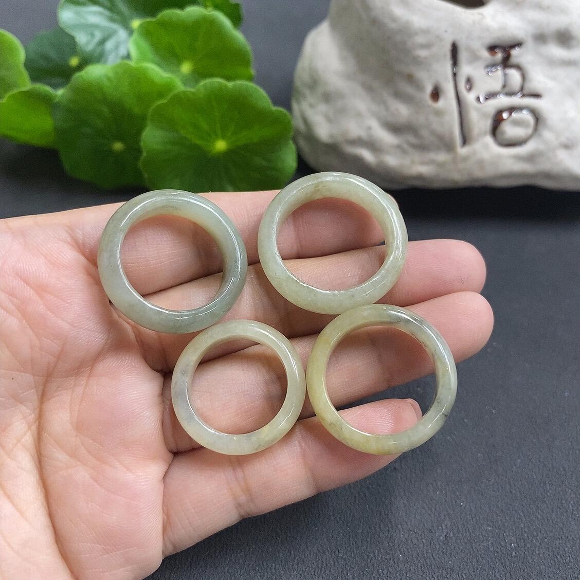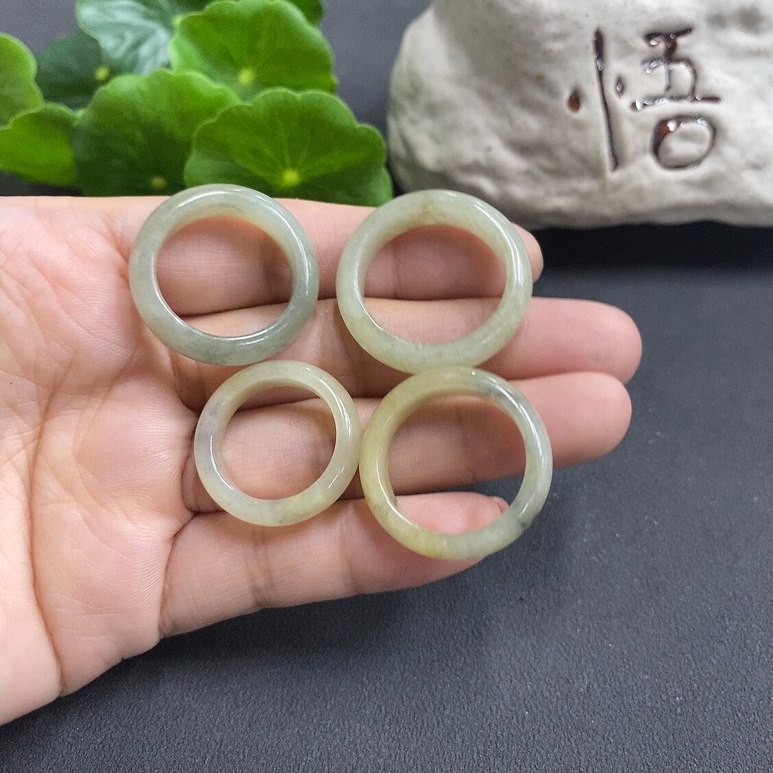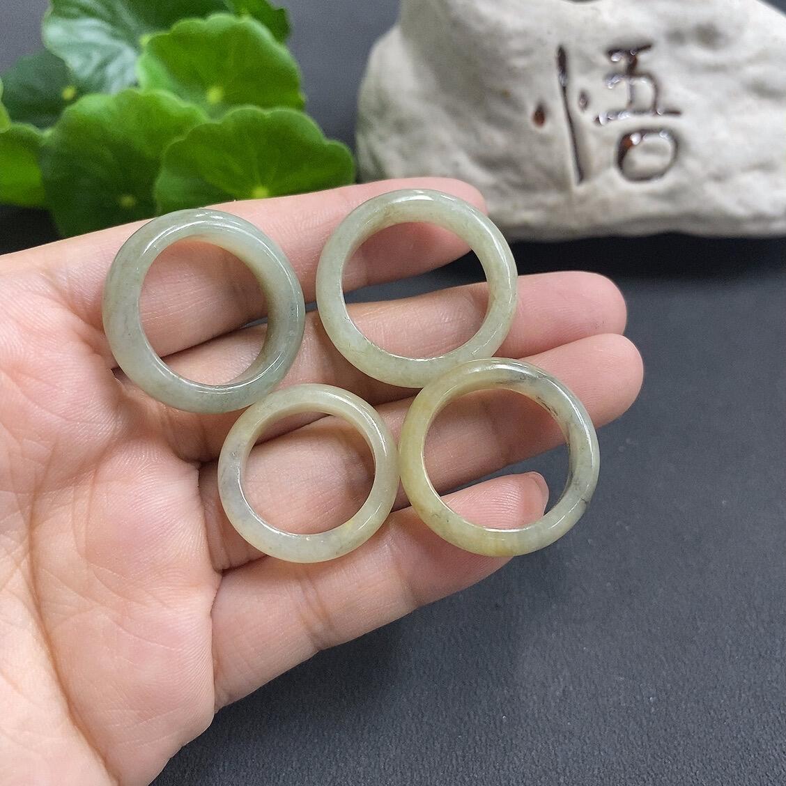 Jadeite Ring Set of 4 with Individual Hairline Cracks, Sizes 21 17 16 11