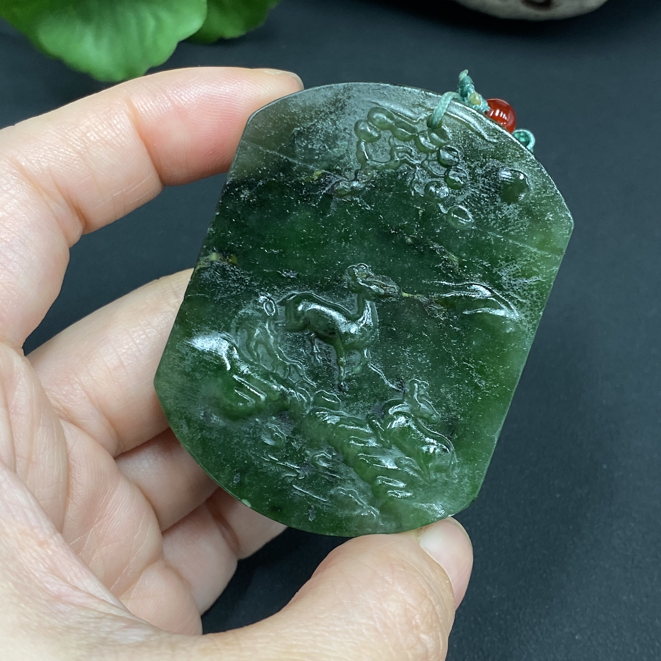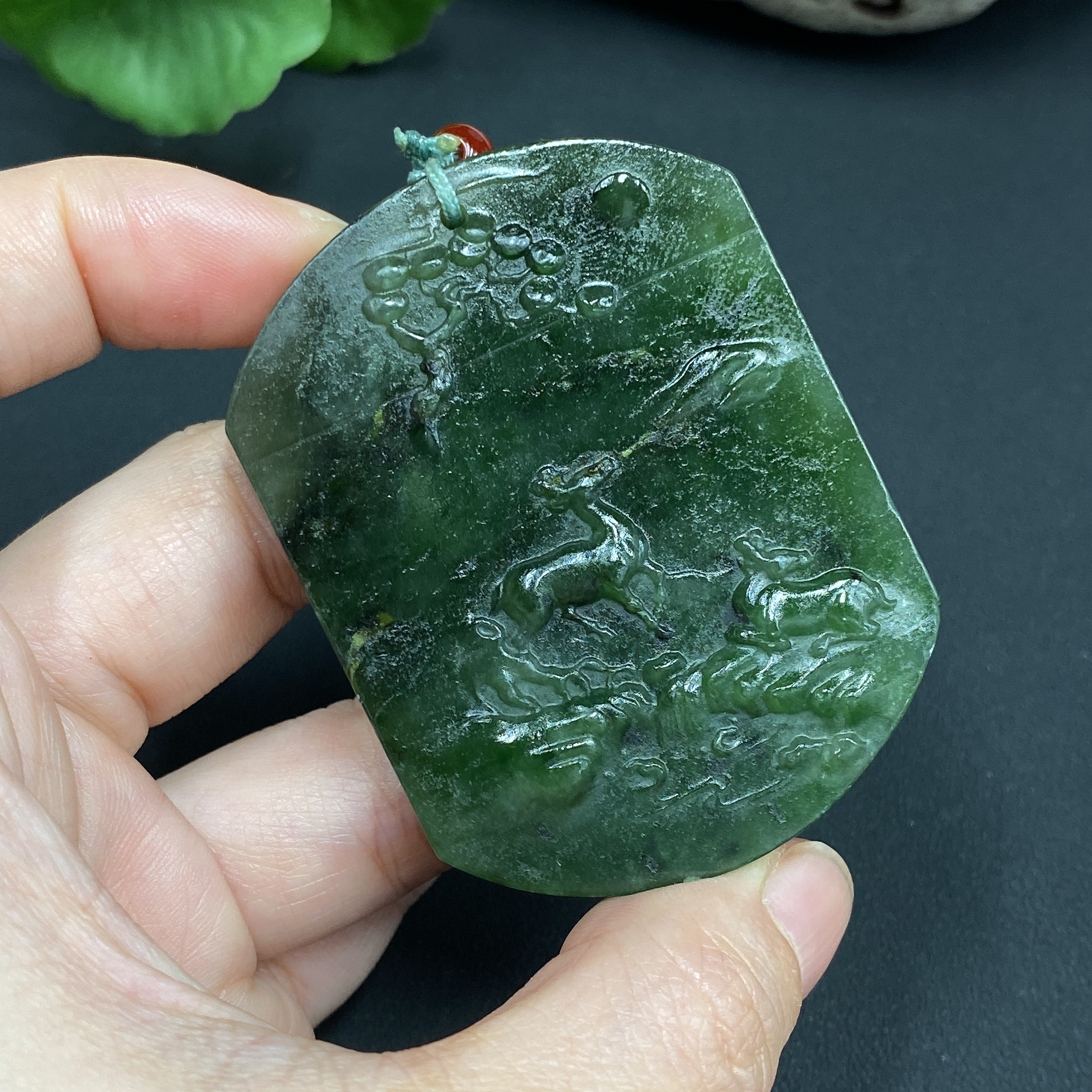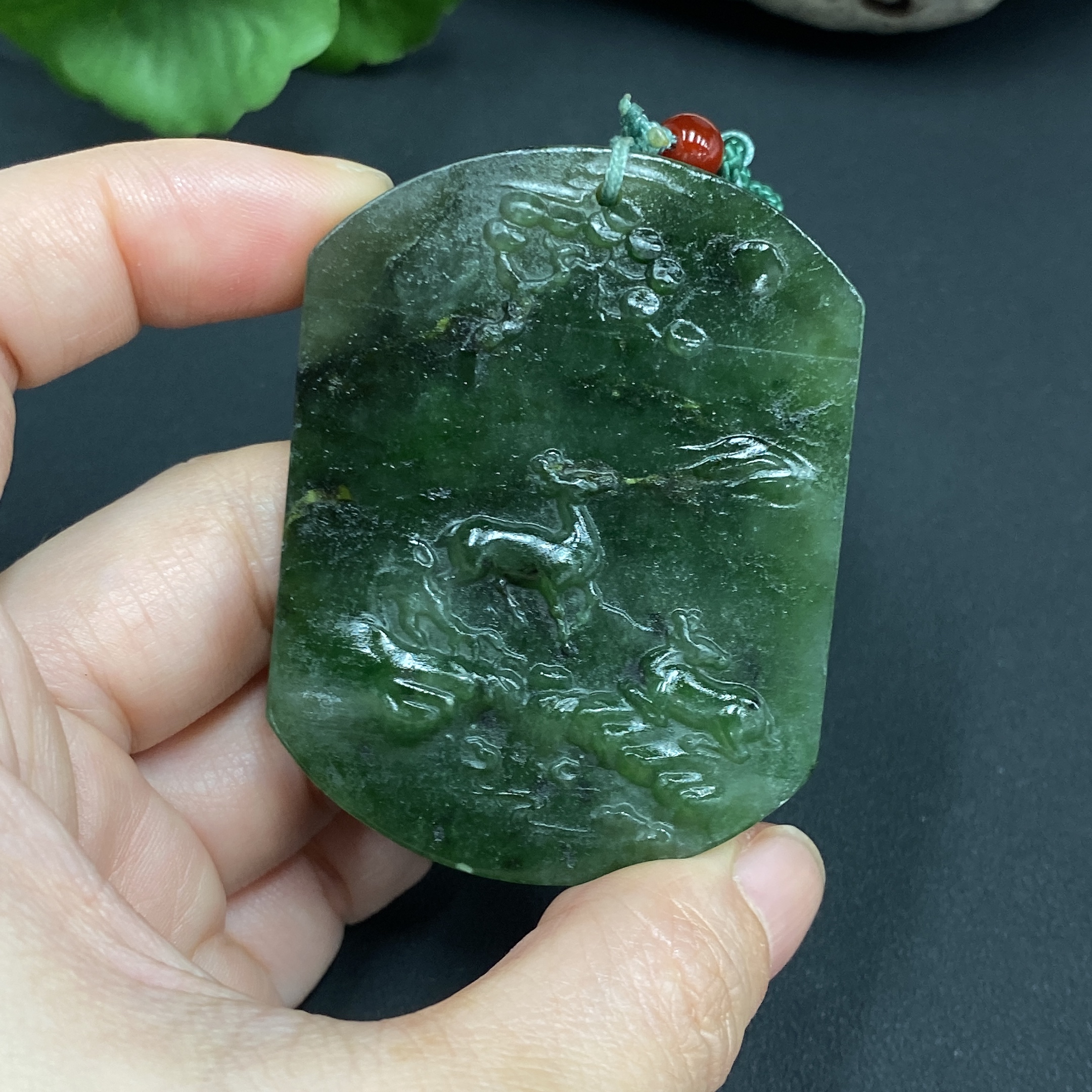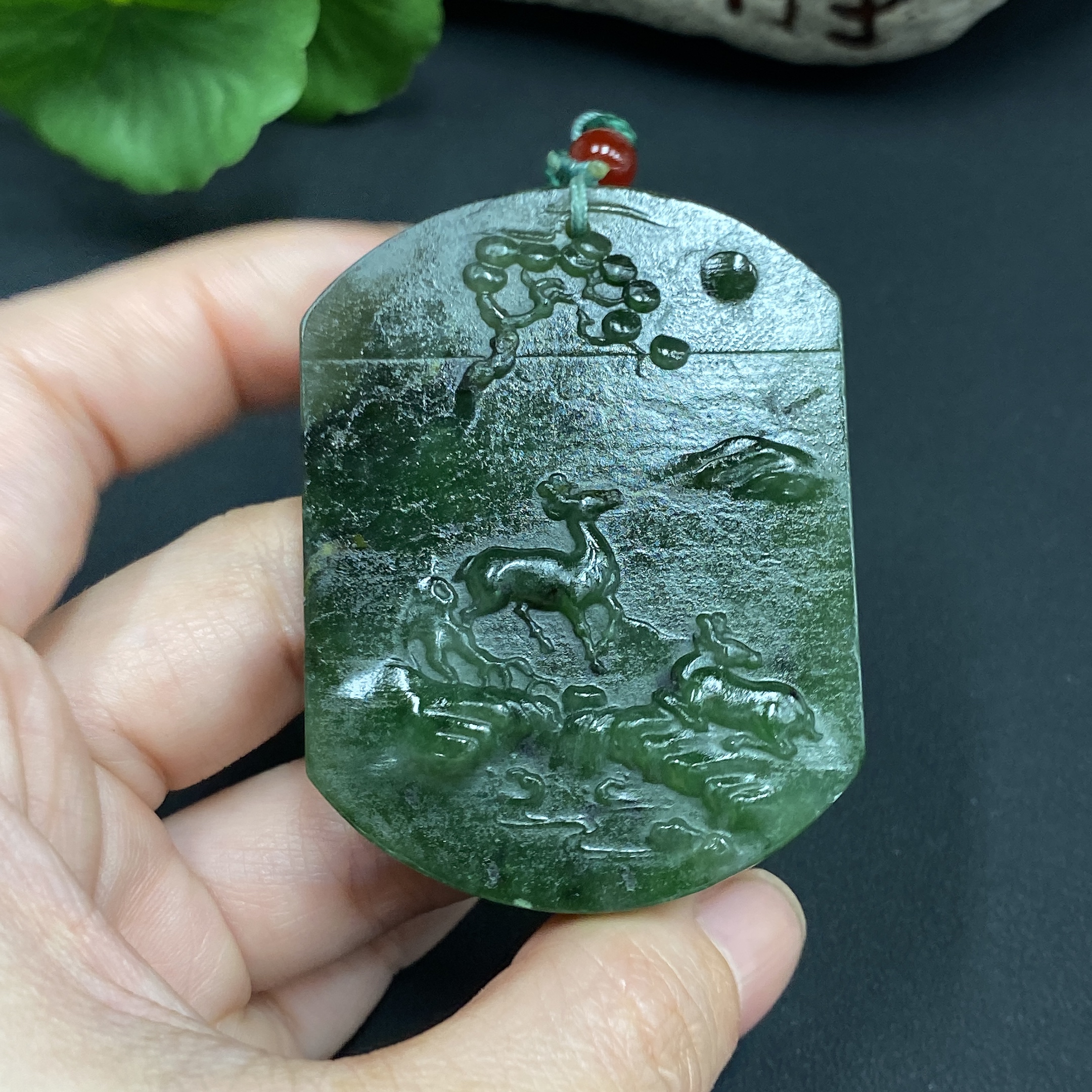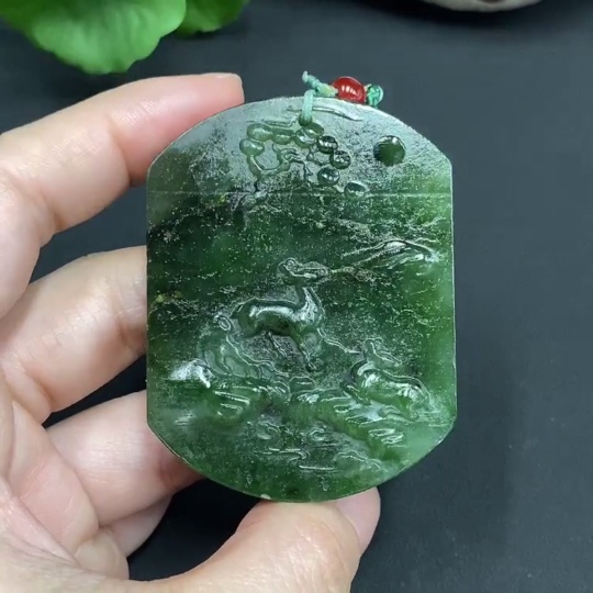 Hetian Jade Pendant - Deer Plaque, Total Weight (with rope) 49.4g