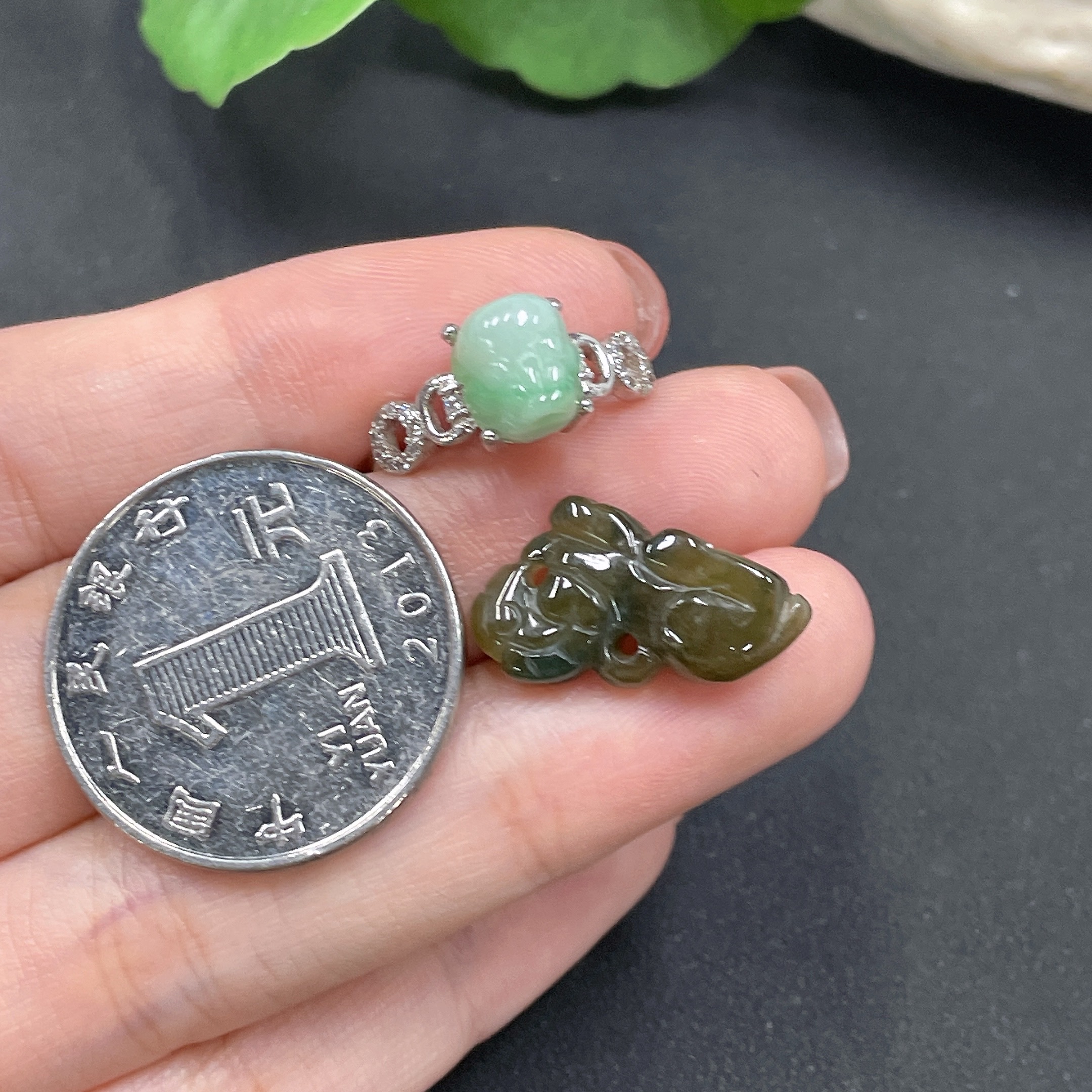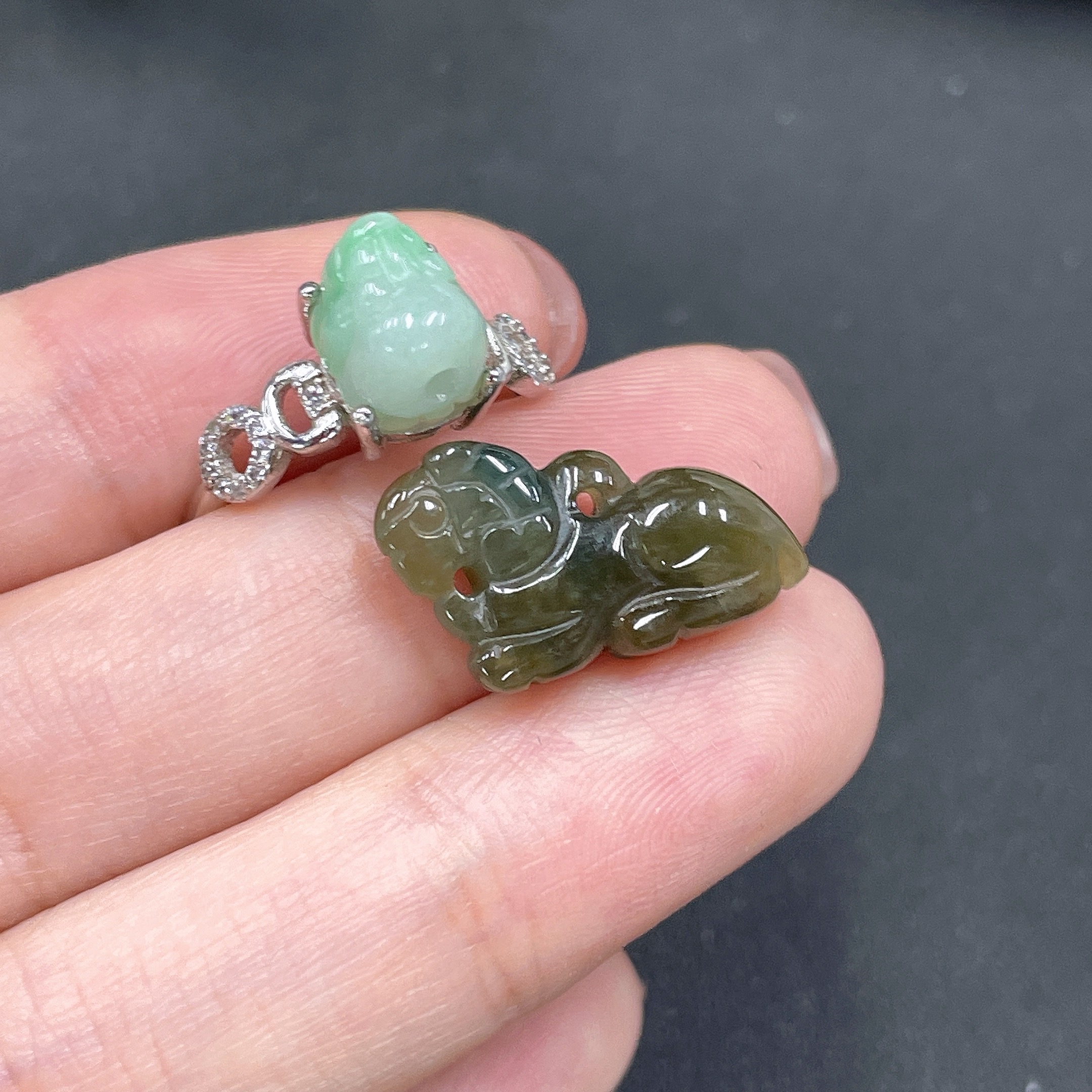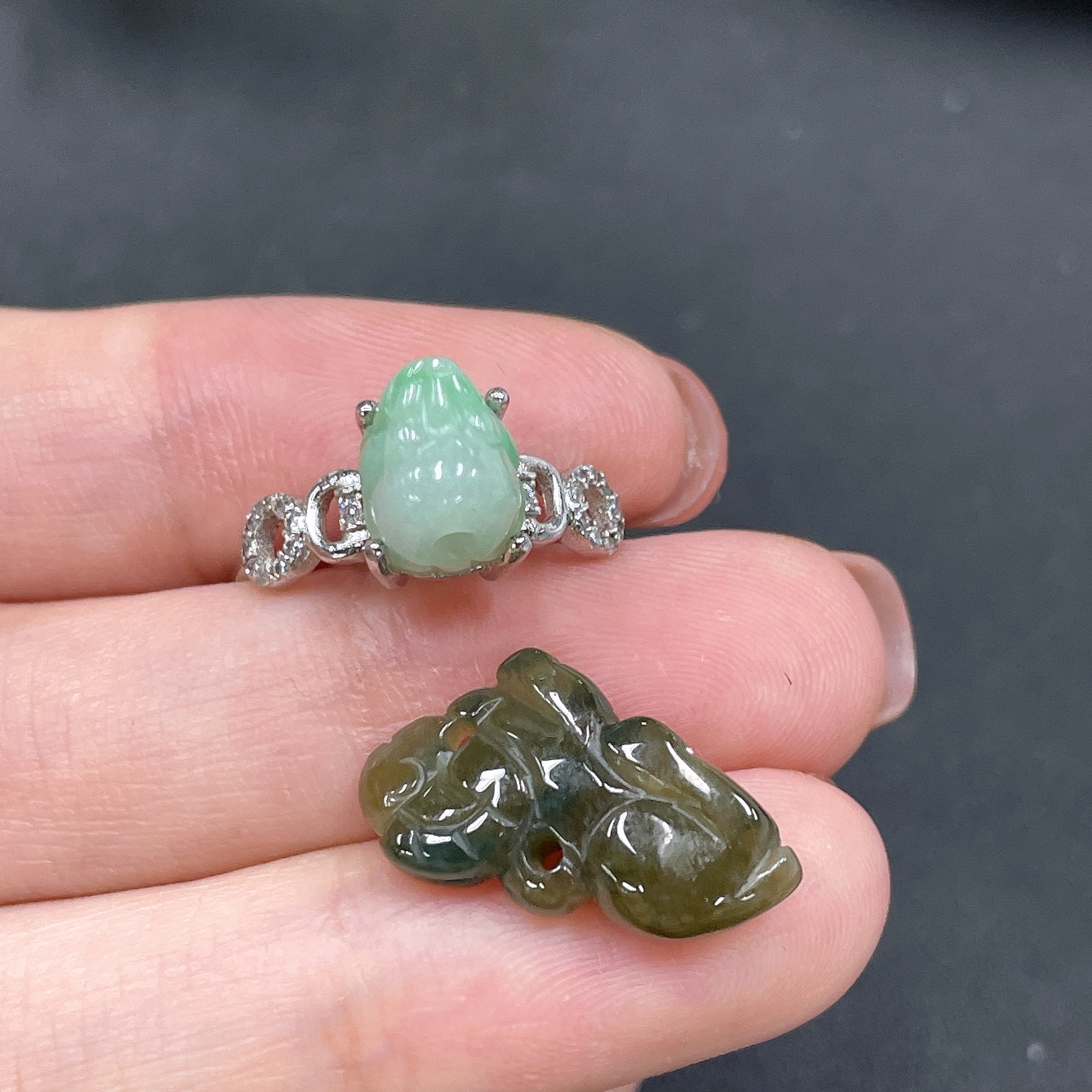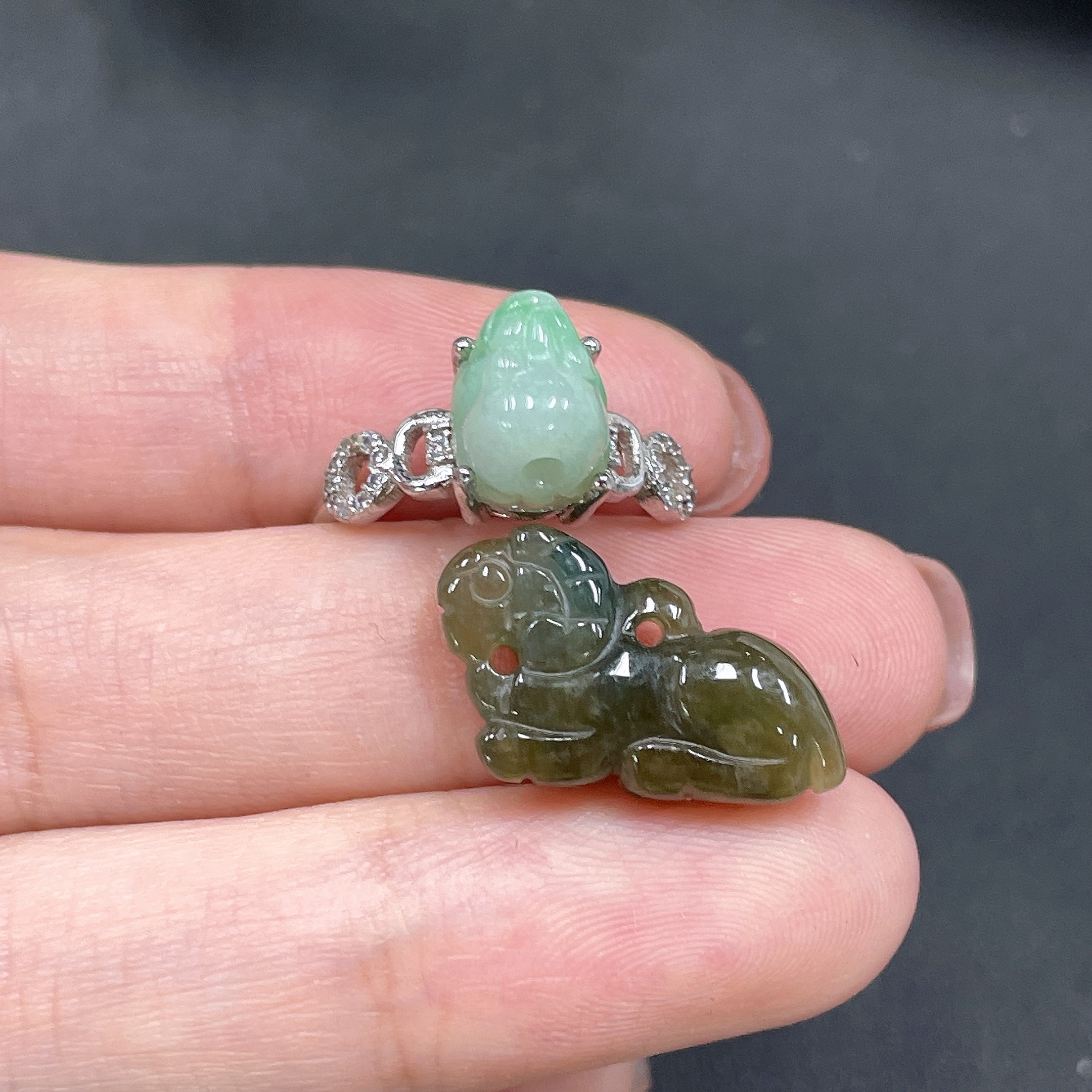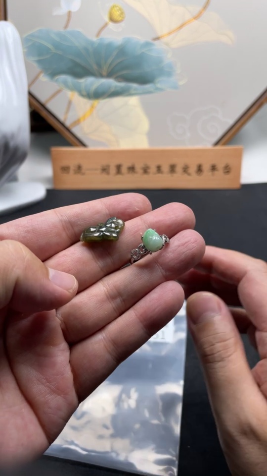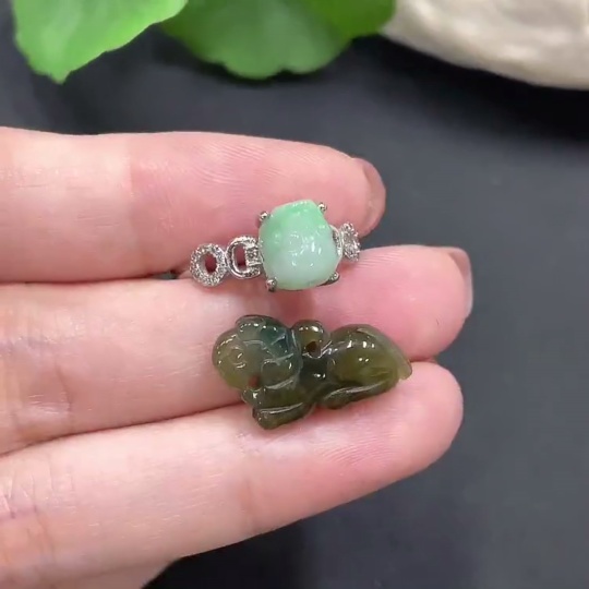 Inlaid Jadeite Ring + Pendant Set (Non-Gold Setting) (Adjustable)