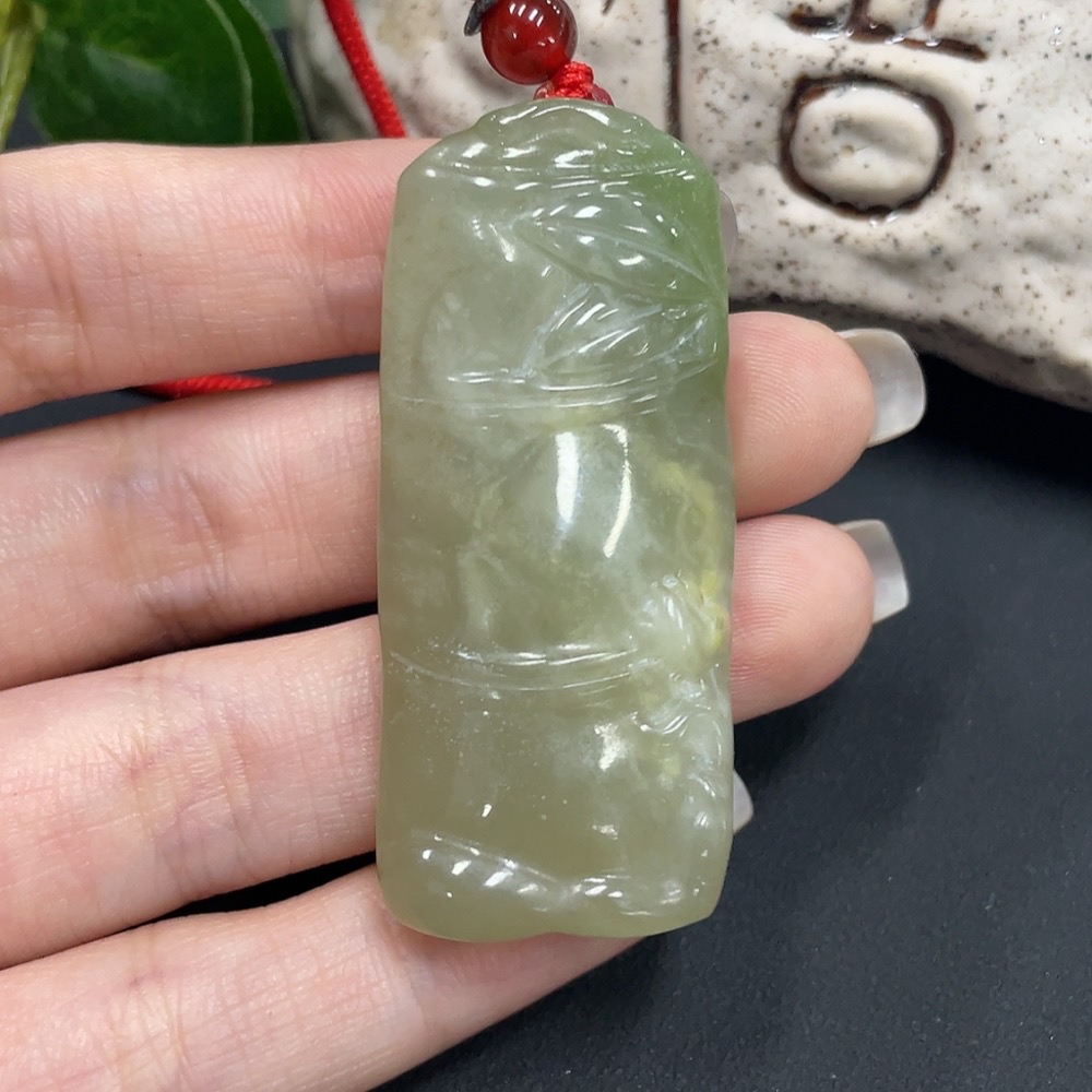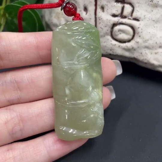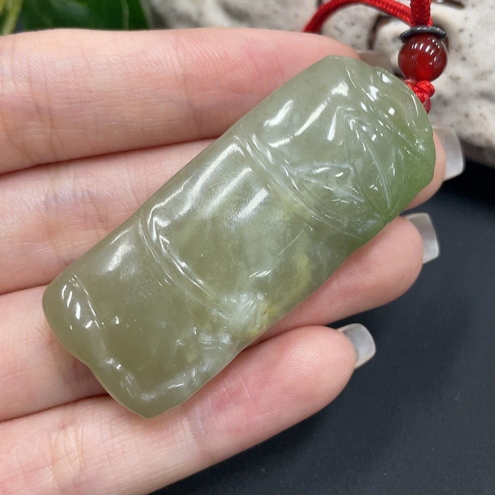 Hetian Jade Pendant Bamboo Joint Total Weight 25.9g (including rope)