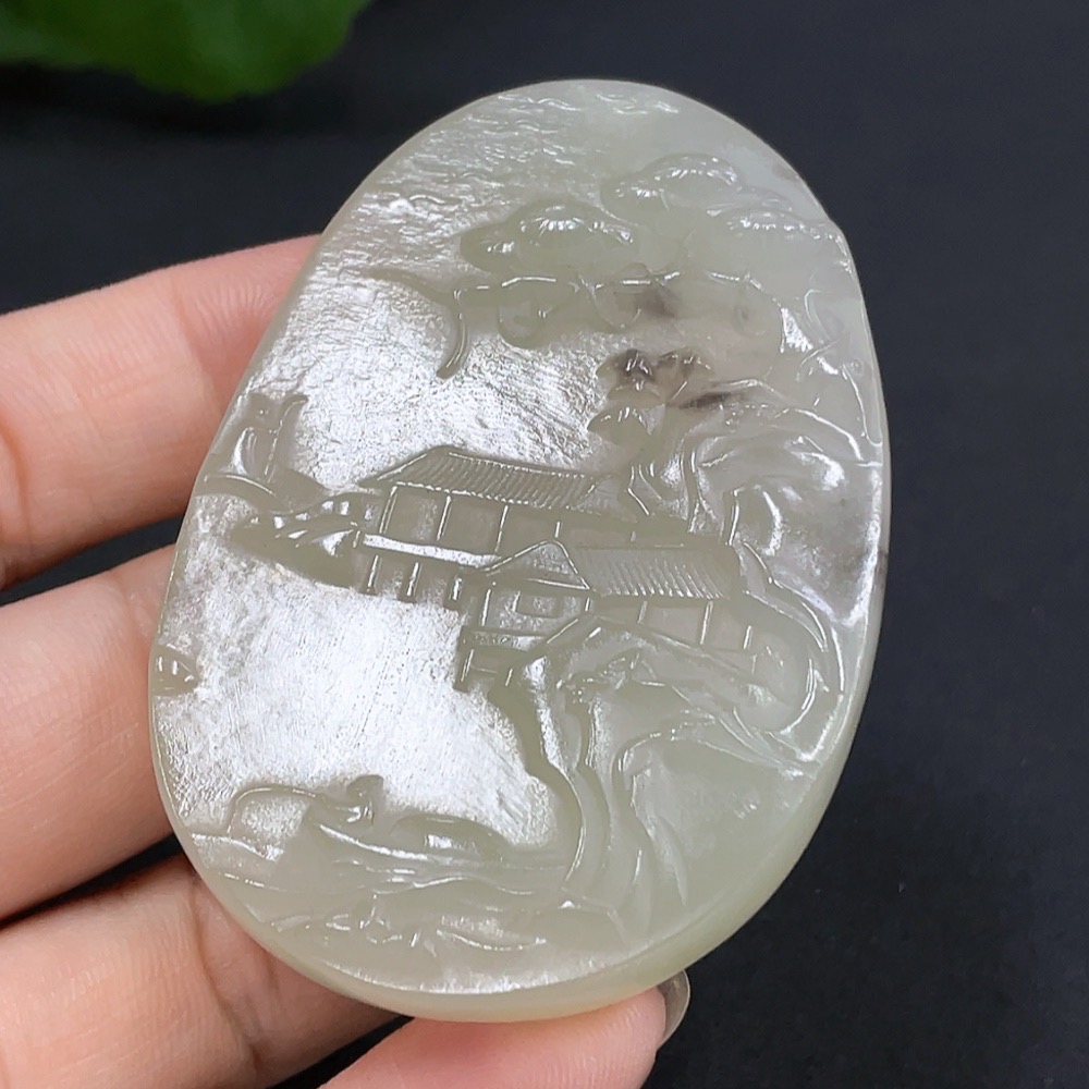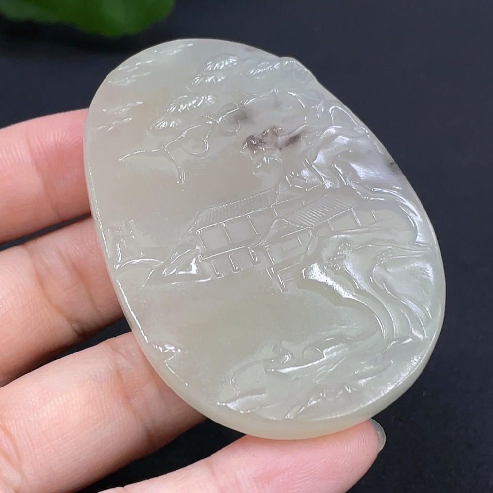 Hetian Jade Pendant - Landscape Plaque, Total Weight 41g