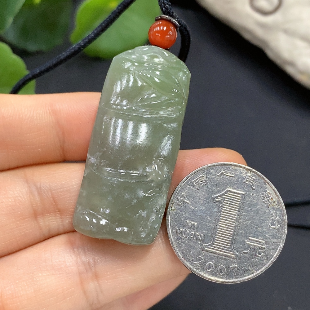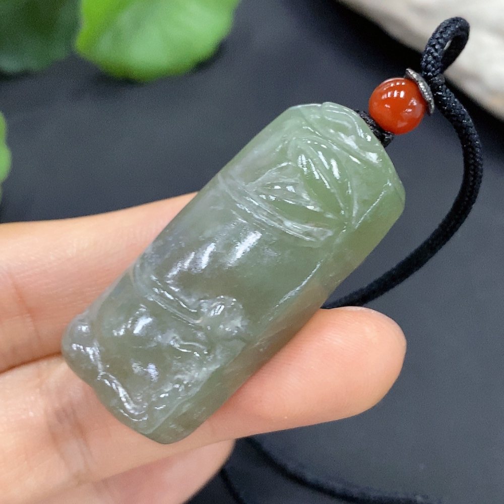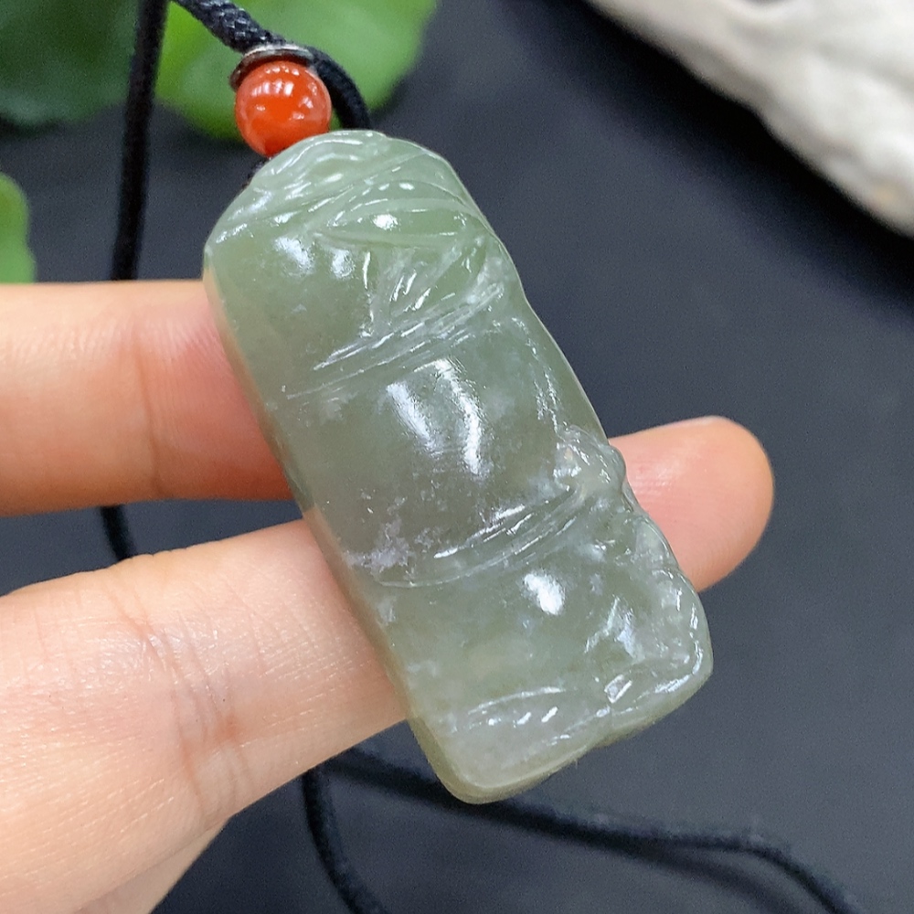 Hetian Jade Bamboo Joint Pendant with Cord, Total Weight 21g