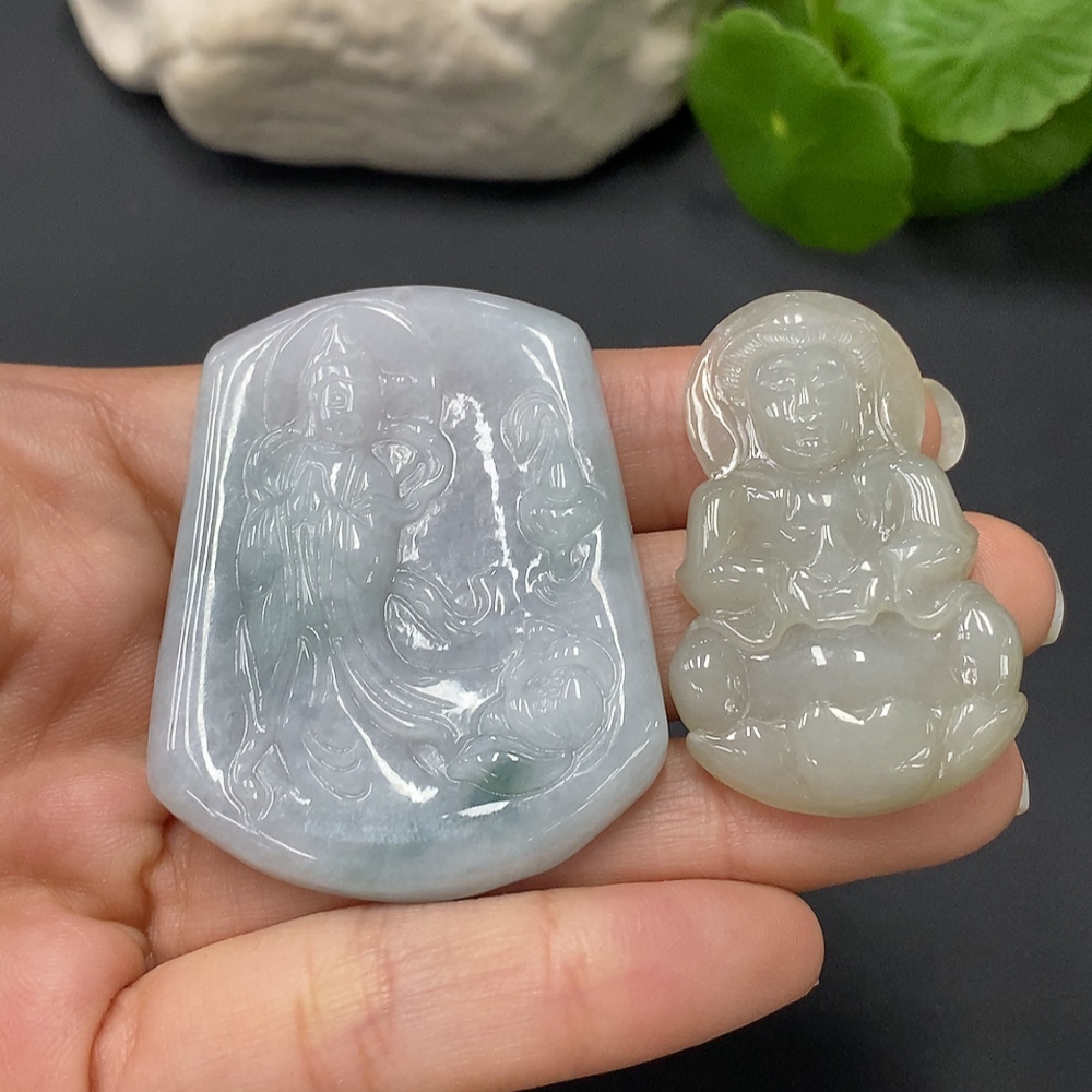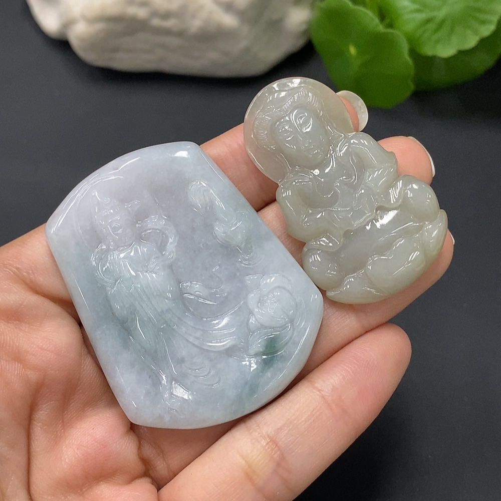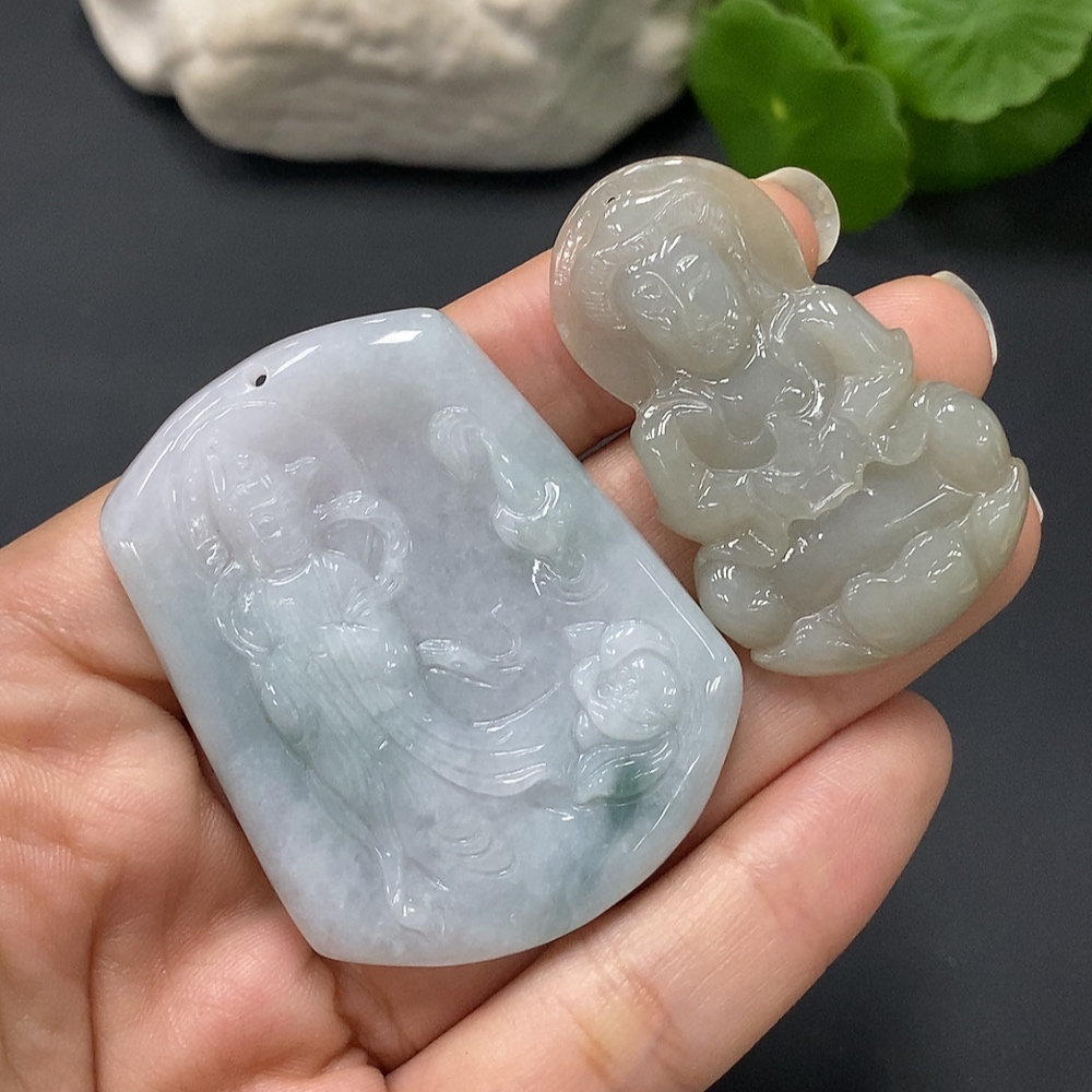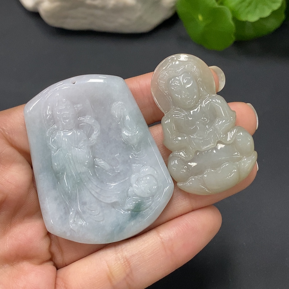 JadeitePendant Guan Yin (Two Pieces in One Lot)