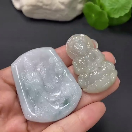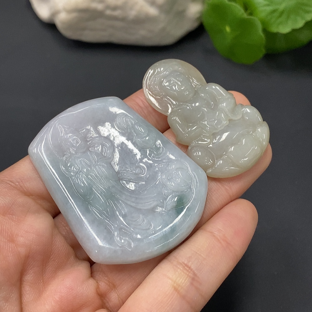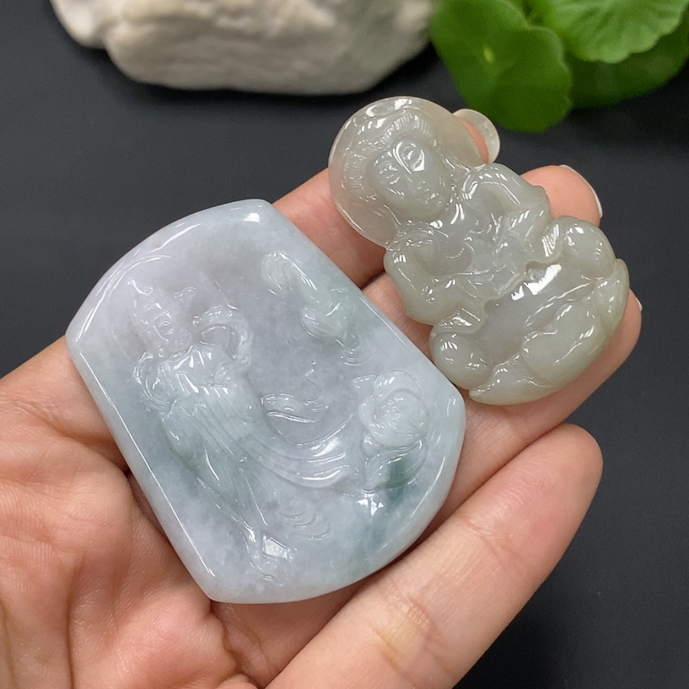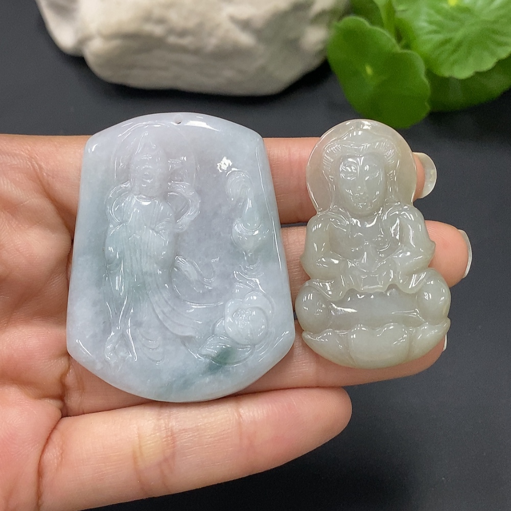 JadeitePendant Guan Yin (Two Pieces in One Lot)