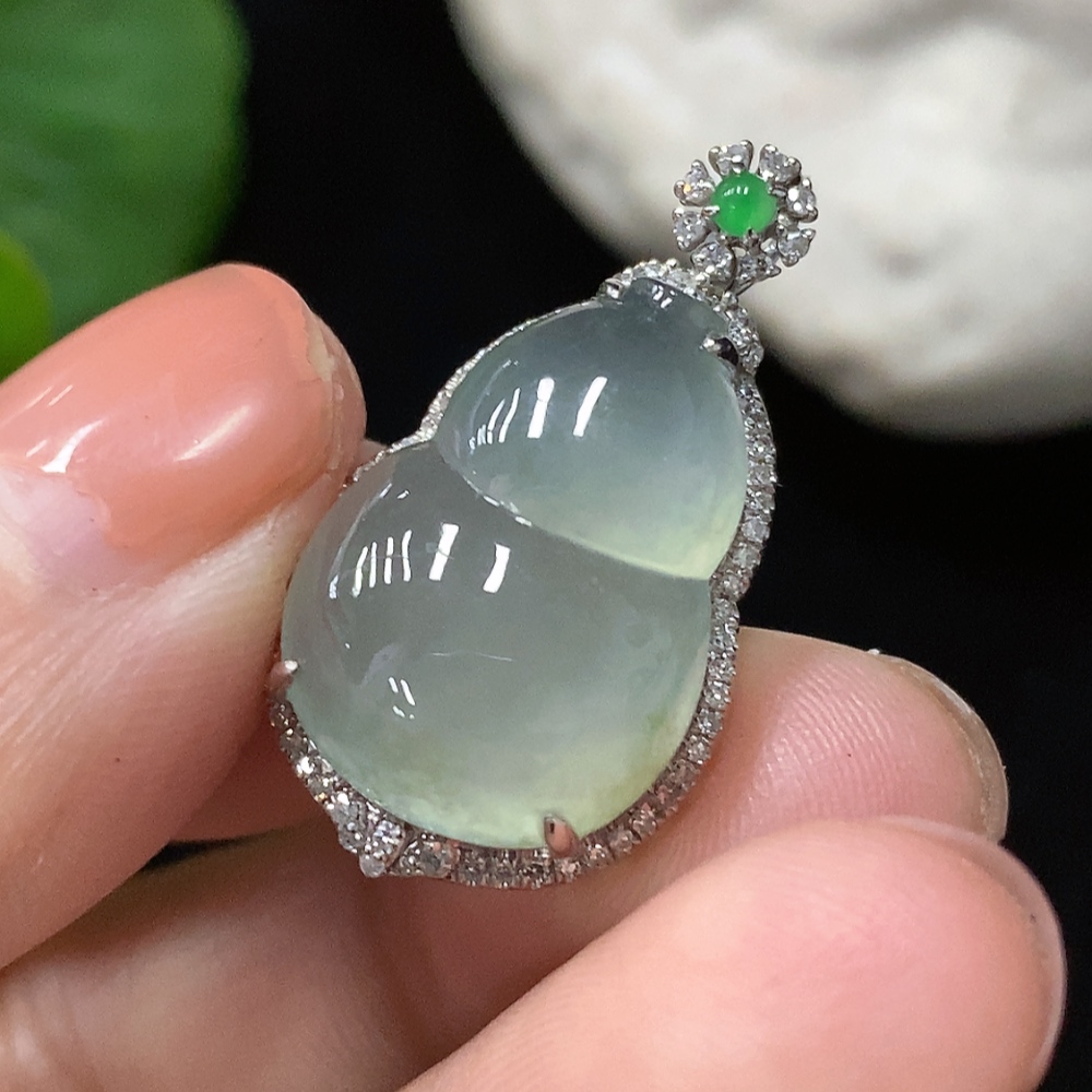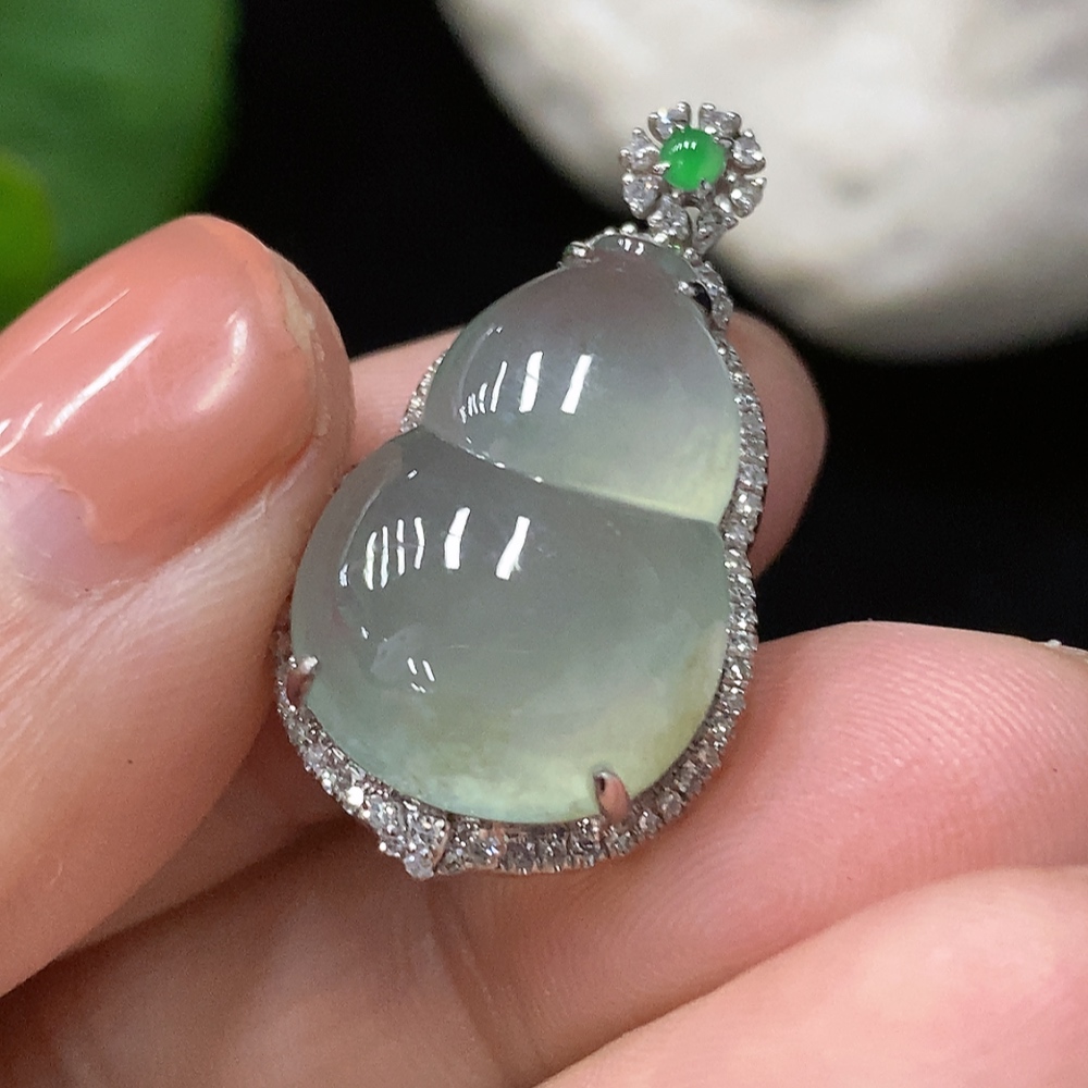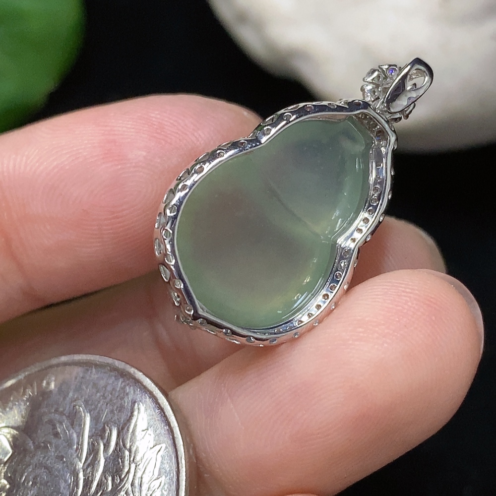 Jadeite Gourd Pendant with 18k Gold Setting Approx. 3.4g