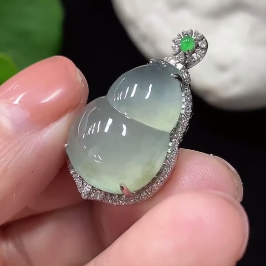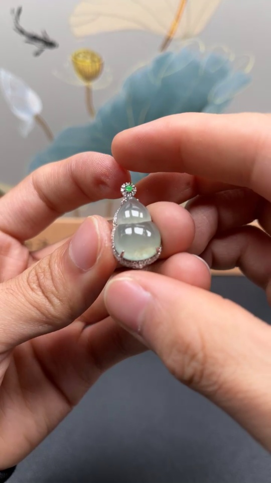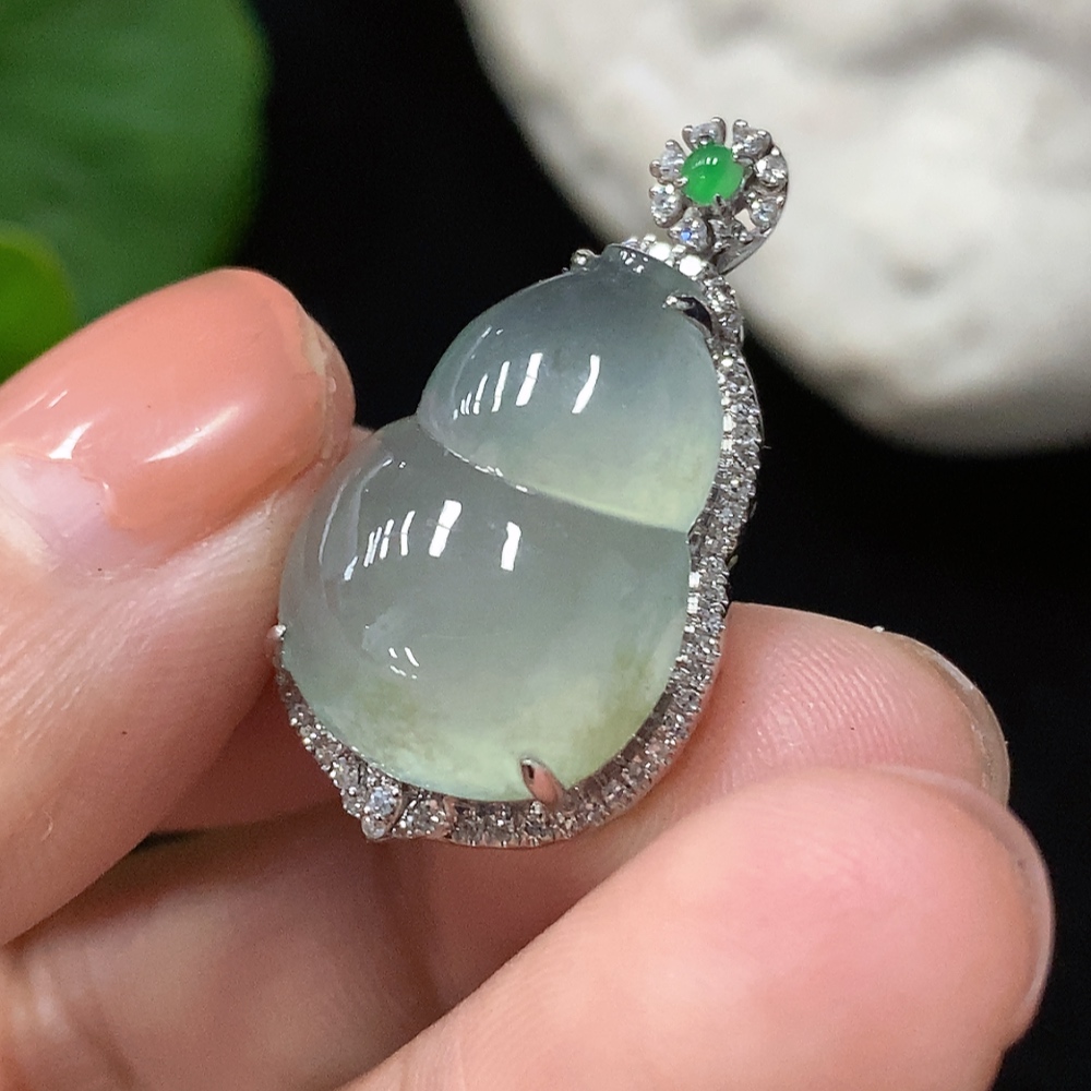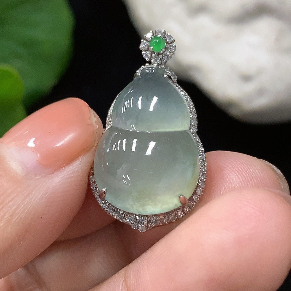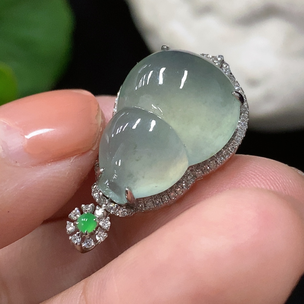Jadeite Gourd Pendant with 18k Gold Setting Approx. 3.4g