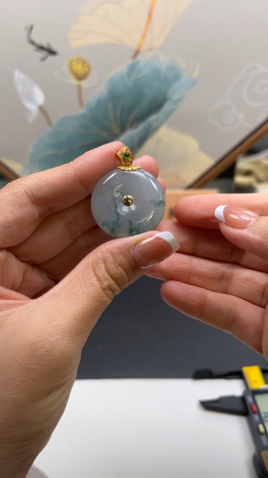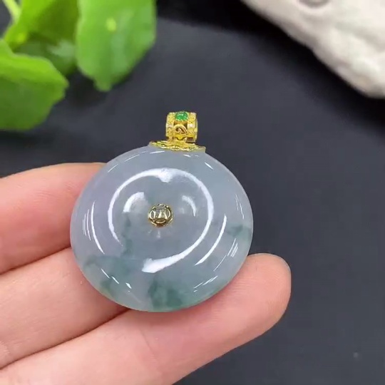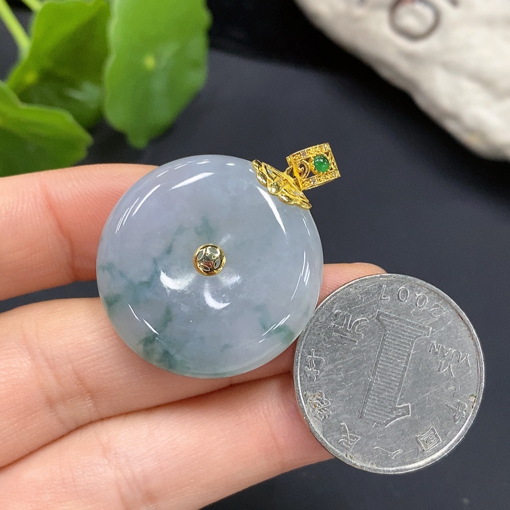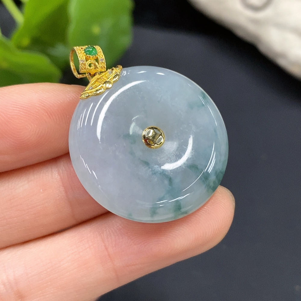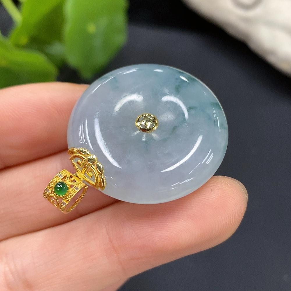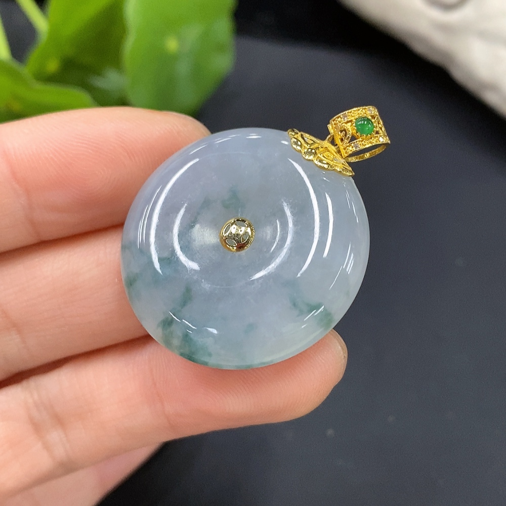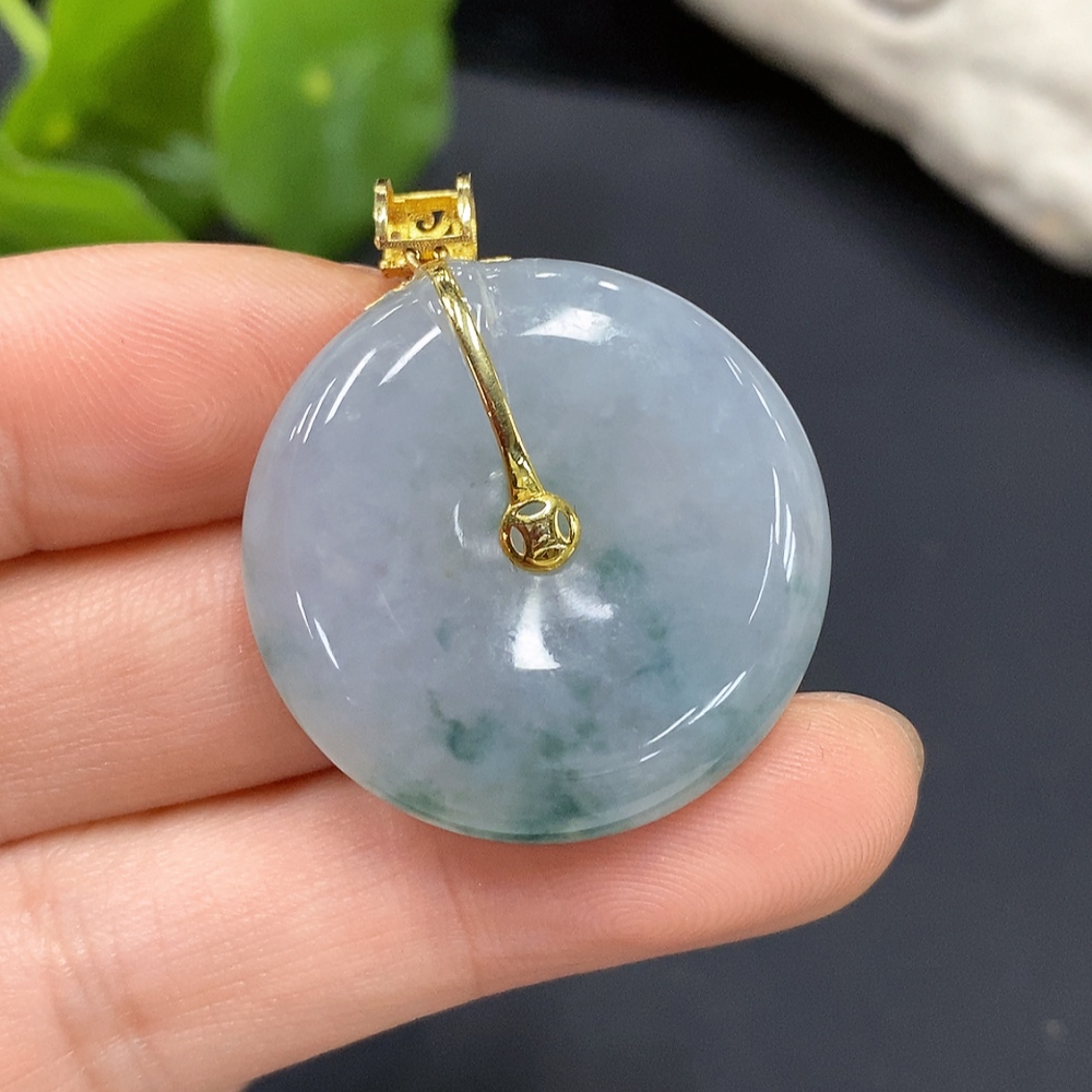 Jadeite Safety Pendant with 18K Gold Bail