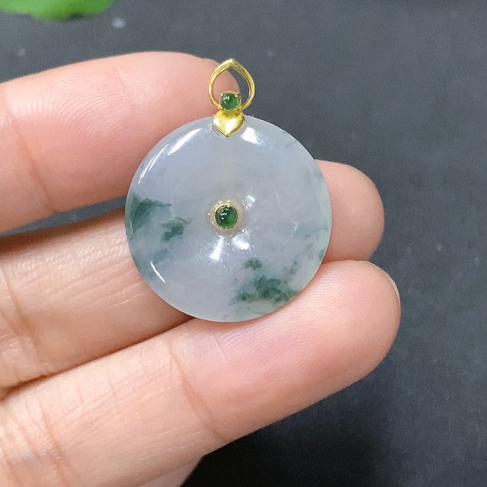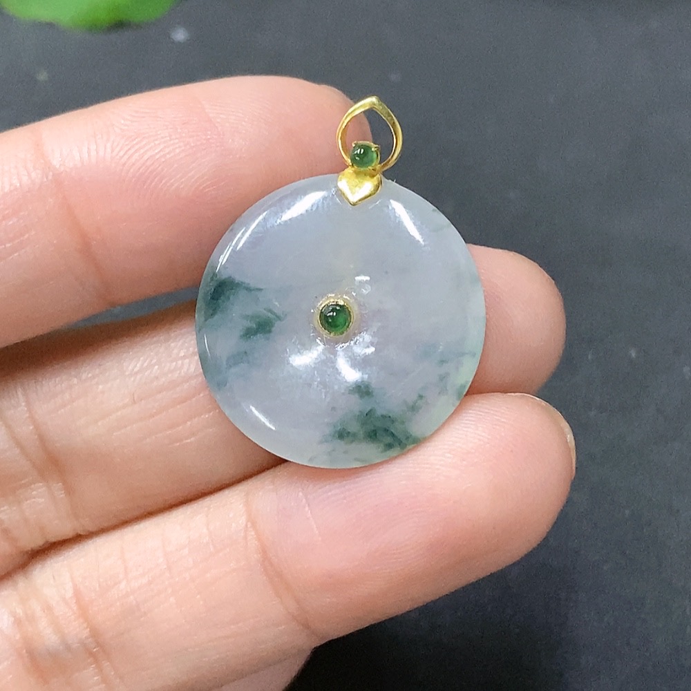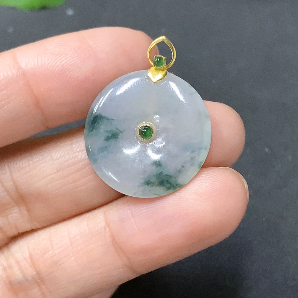 JadeitePendant - Ping An Koi with 18K Gold Bezel Total Weight 3.283g