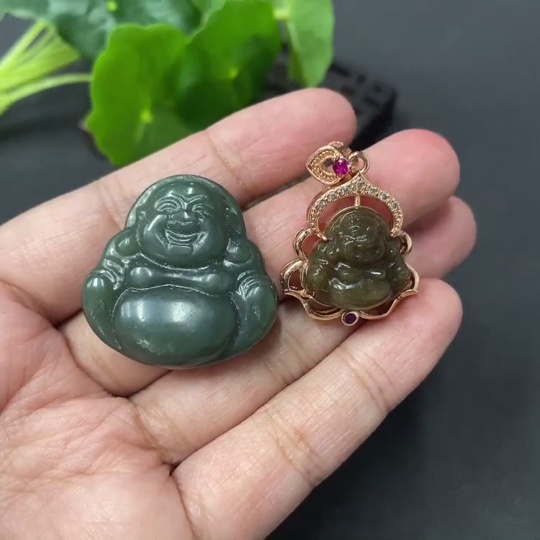 Hetian Jade Pendants (Lot of 2 with Crack Lines, Total Weight 15.8g, Unknown Mounting Material)