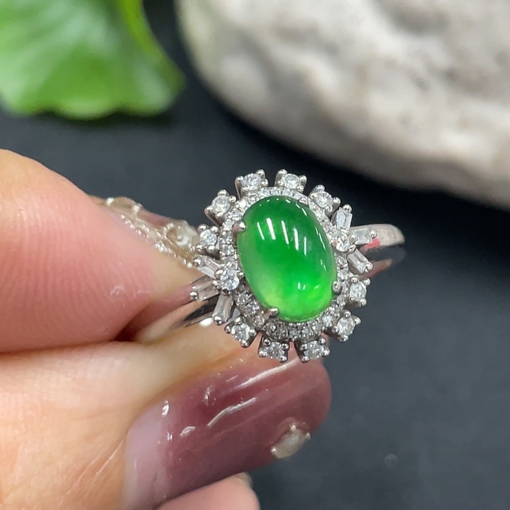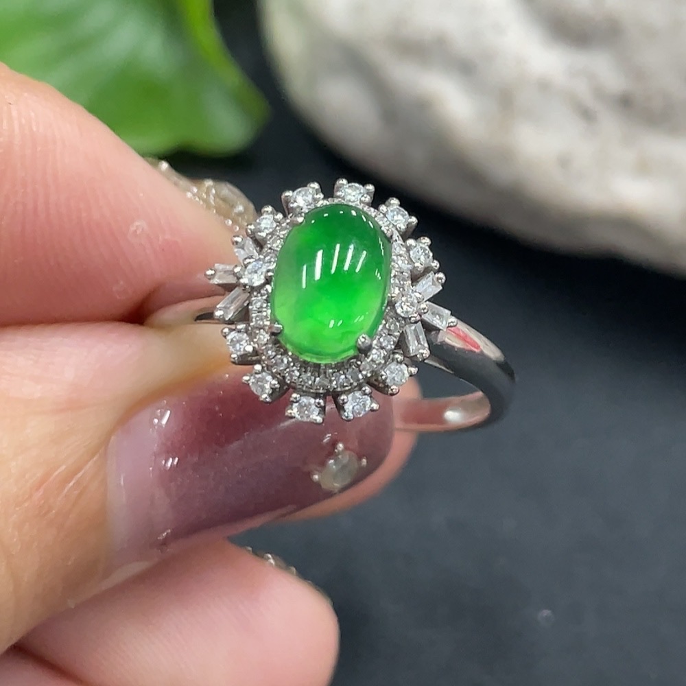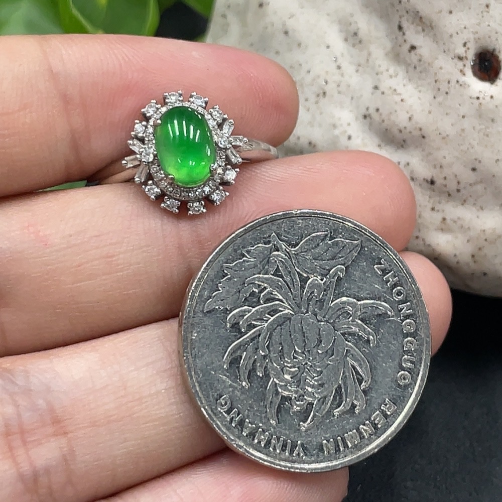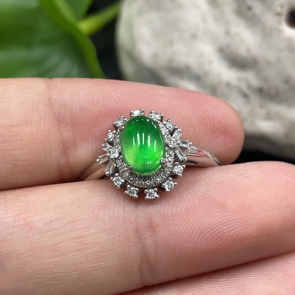 Jadeite Cabochon Ring 18K Gold Setting Size 16 Total Weight Approx. 2.81g